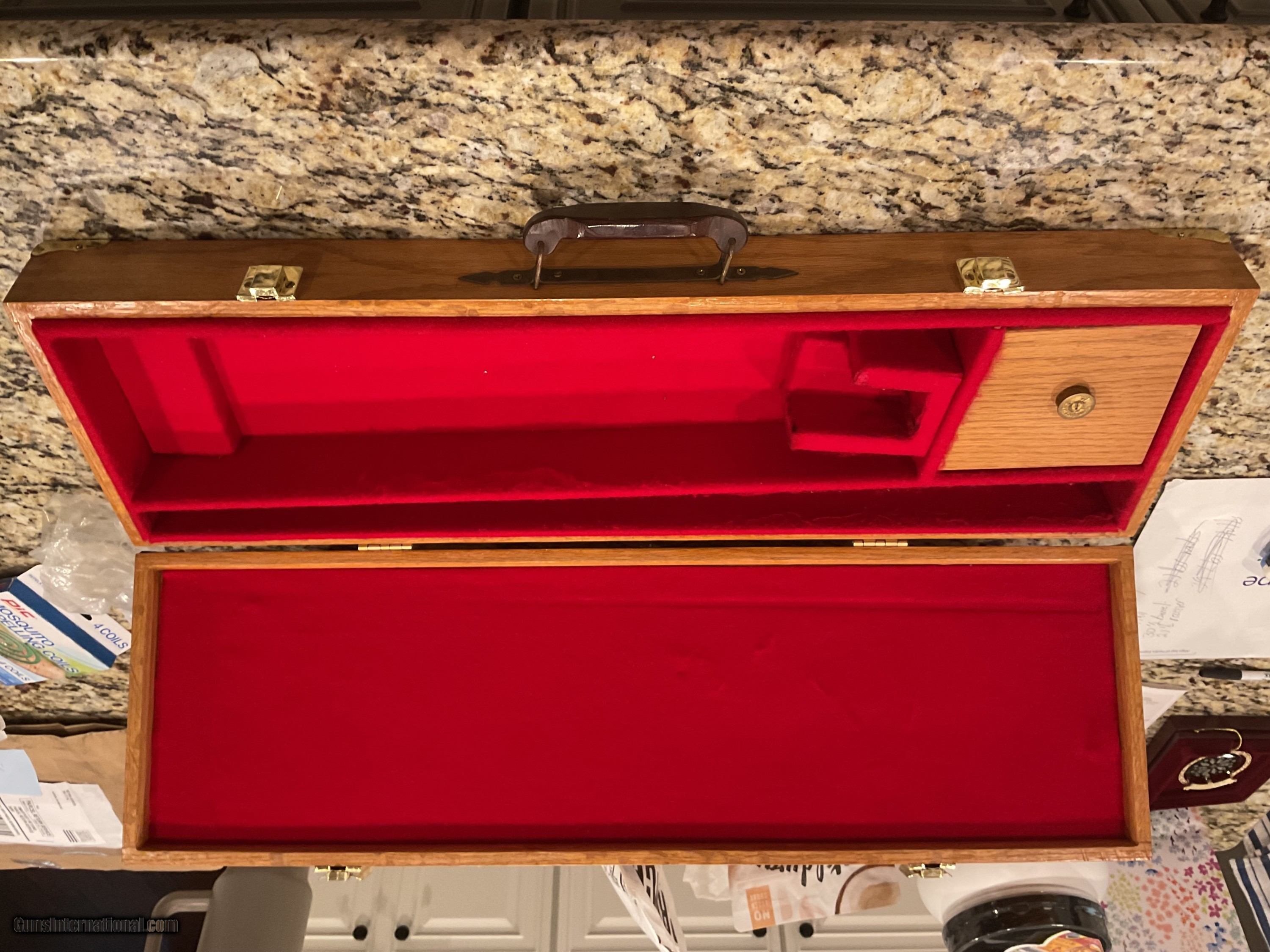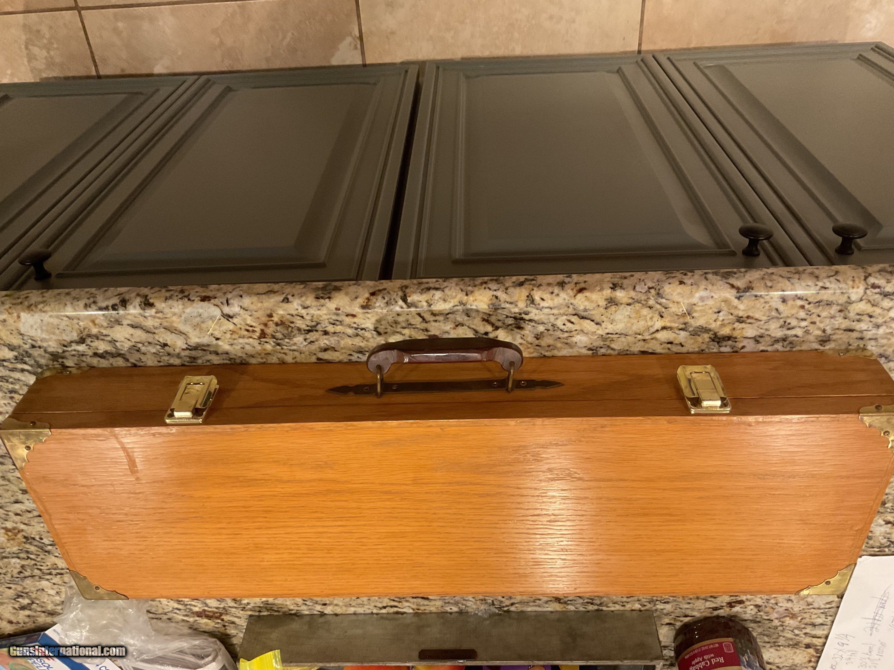 Description: This case was made for a 28ga side by side.The craftsman ship is excellent.It is 28 long,8.5 wide and 3 1/4 tallpartment sizes barrel 26.5 and receiver 21.5 SOLD Shotgun Gauge: 28 Gauge |
