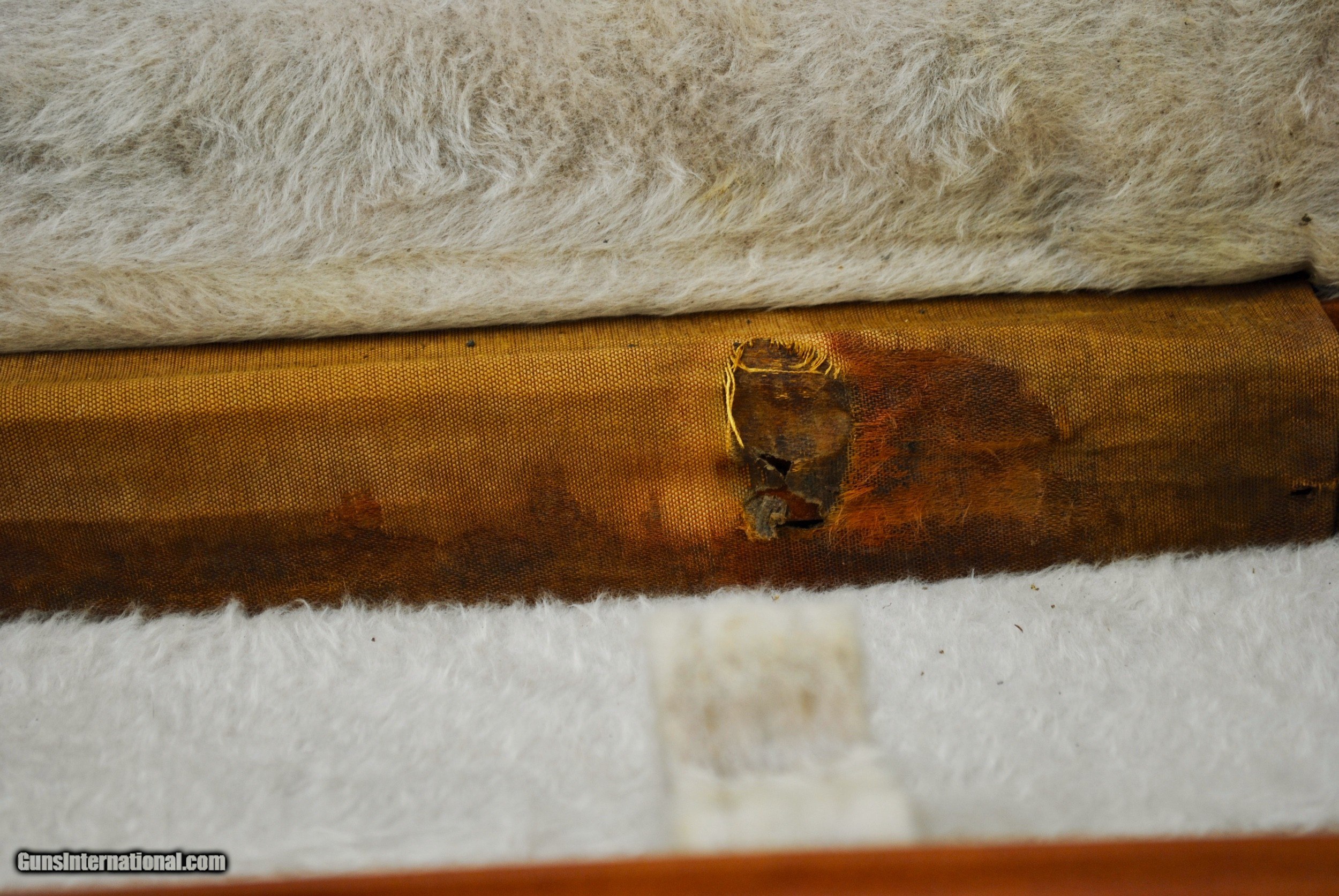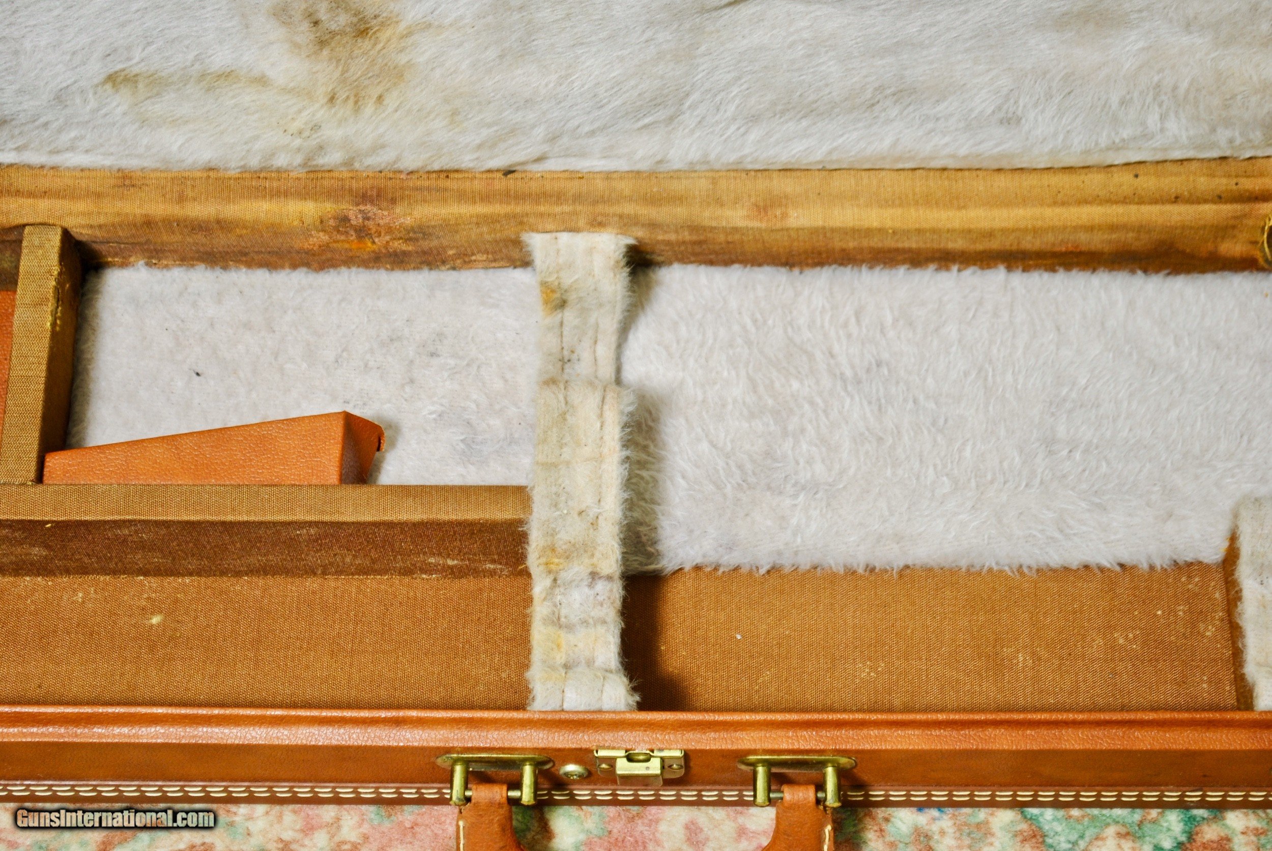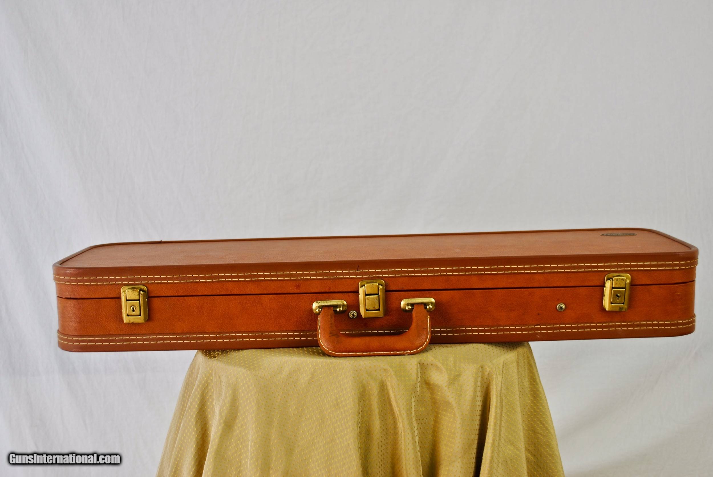 Description: Browning Airways case for Superposed Shotgun. Appears to be for a small bore. Will hold 30" barrels. Outside case dimensions are 32" x 8 3/4" x 4". Outside of case is in good conditon. Inside of case has some stains and a tear as shown in photos. Includes two keys. Shipping is $25. SOLD |