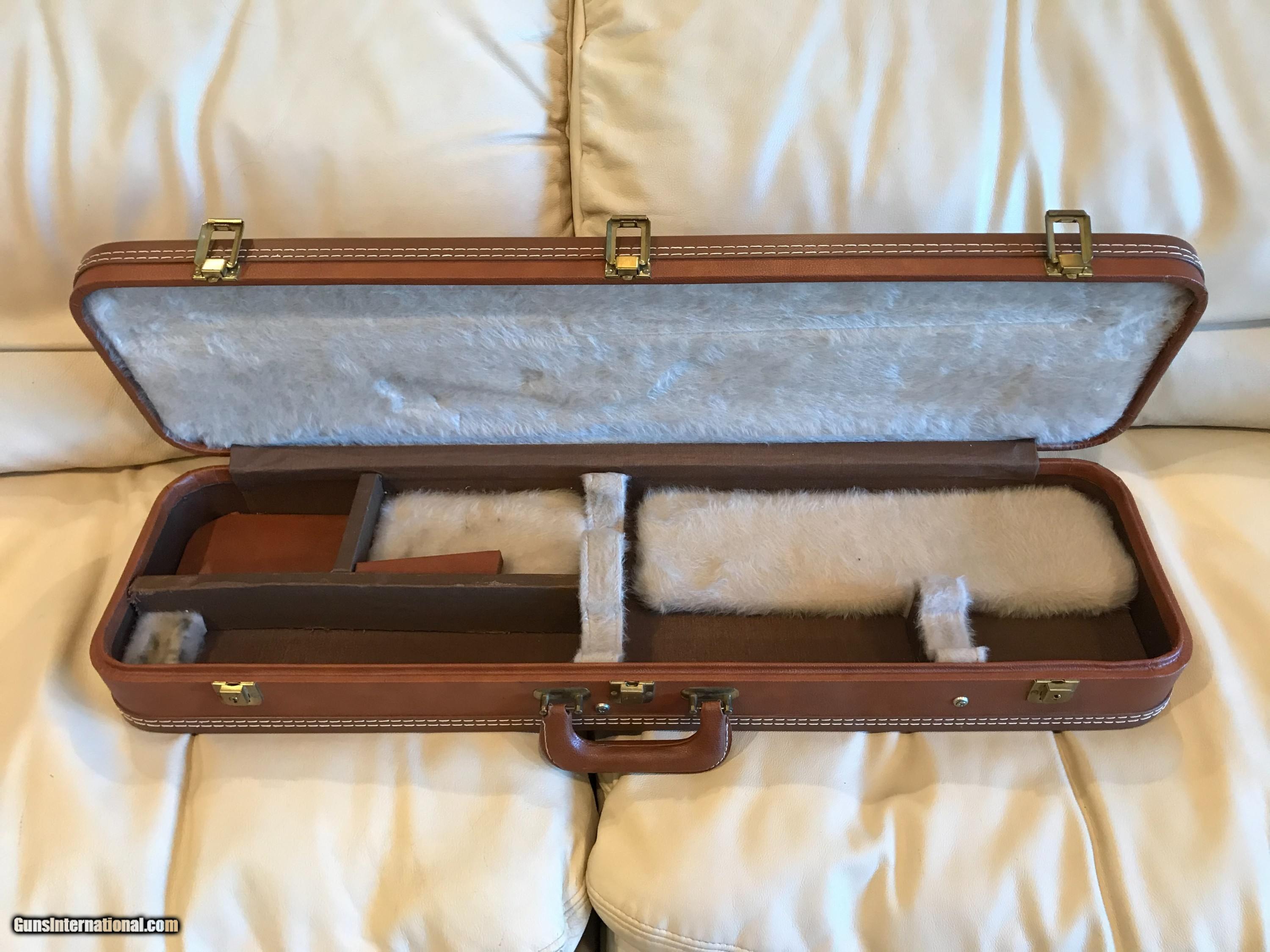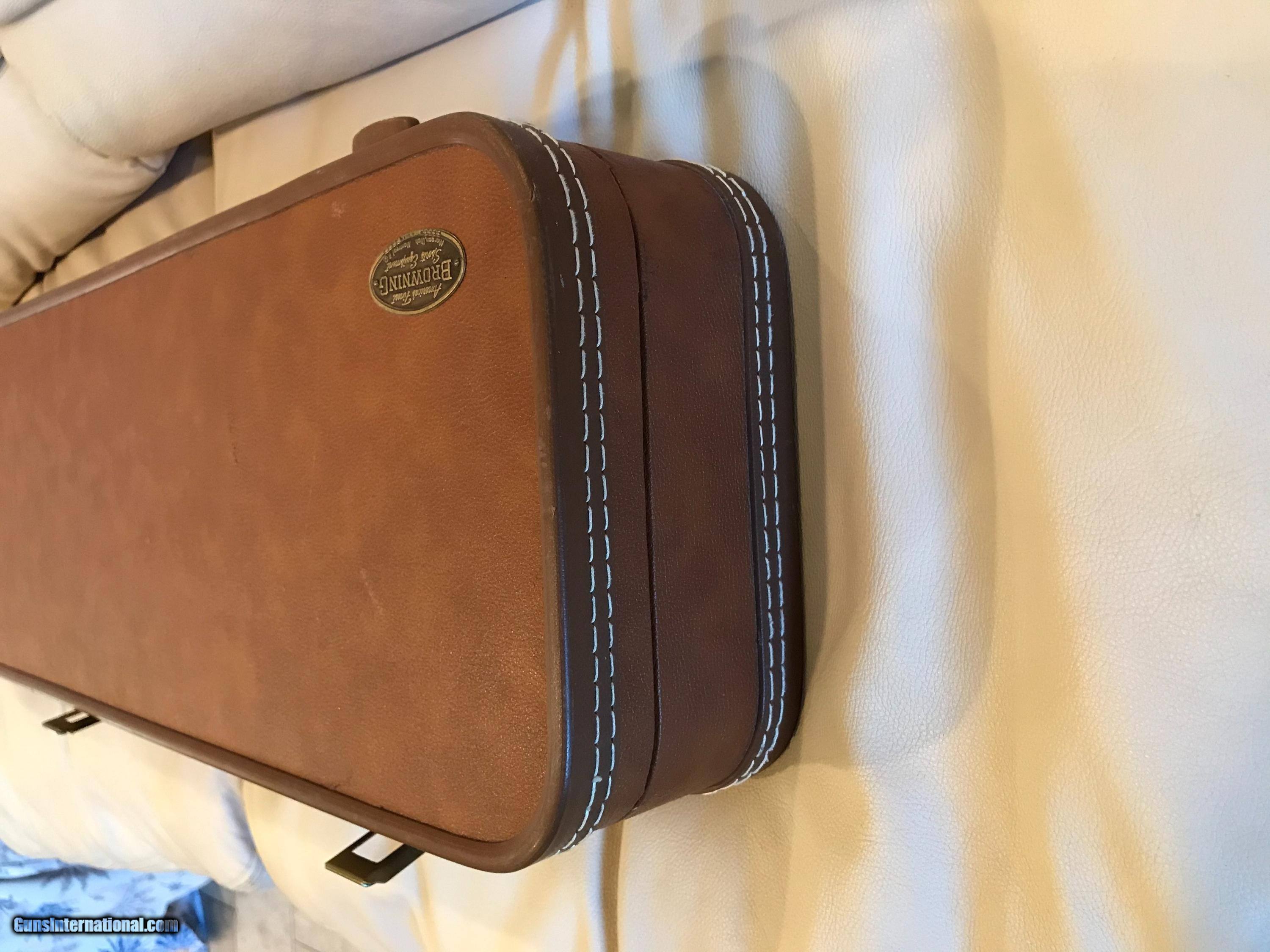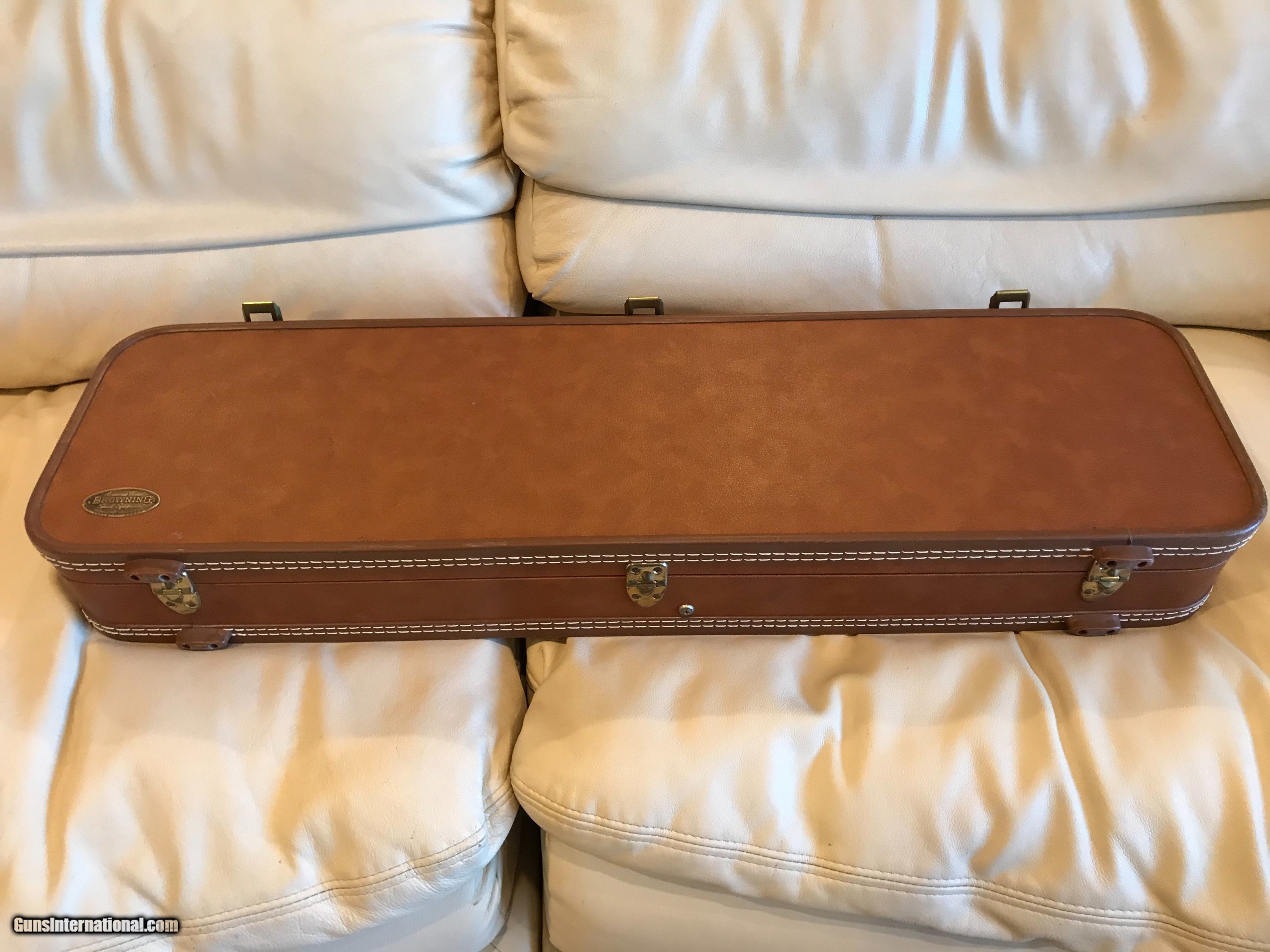 Description: Offering a very nice Browning Hartman case for a 30" SxS or BSS Browning. Will also fit other SxS's. Overall excellent condition inside / out. Some light staining to the interior from gun oil should be able to clean-up if required. Exterior in excellent codition with only one minor area of light scratches on back side (as shown in photo). This also may clean-up with some leather conditioner.