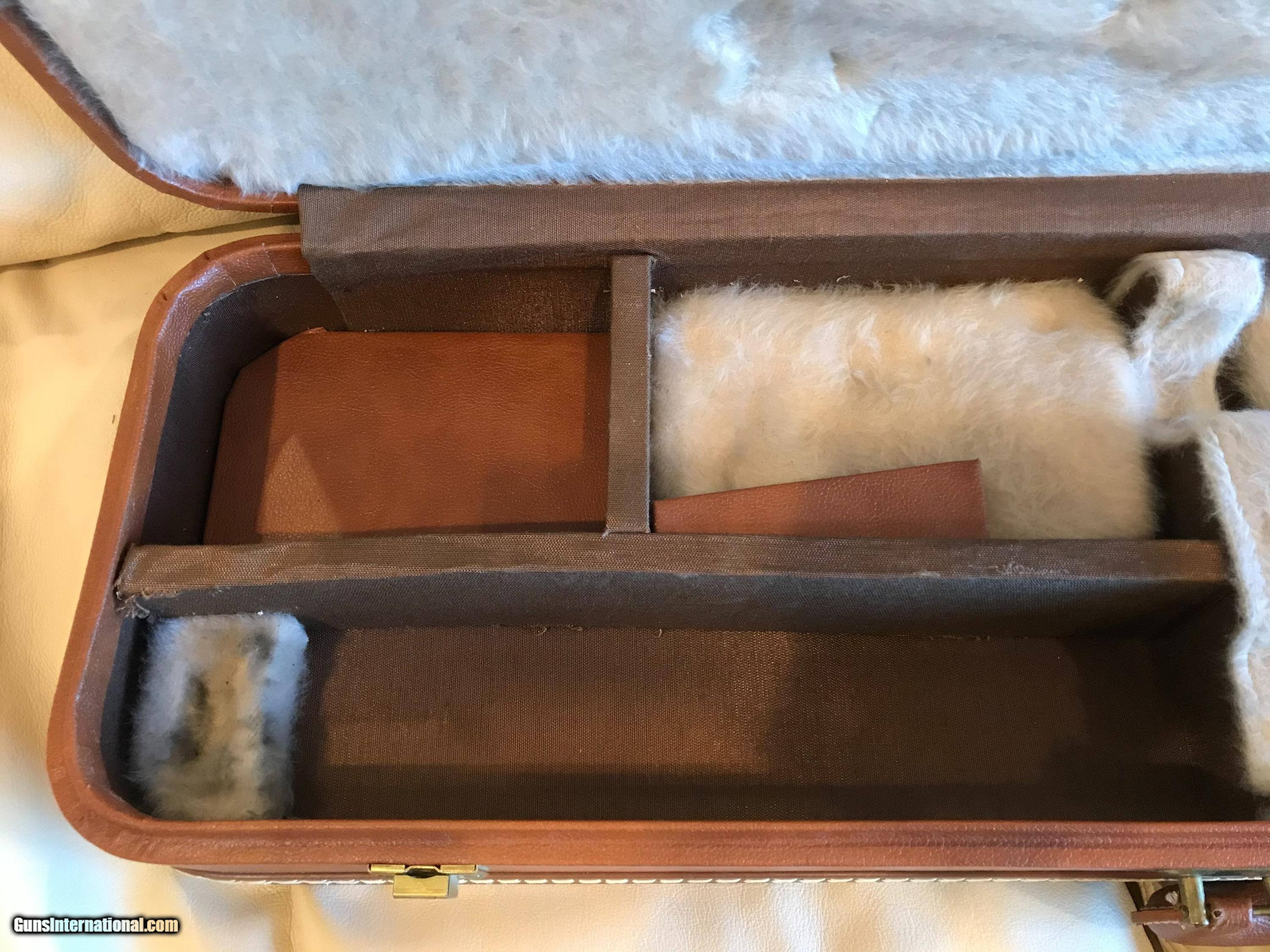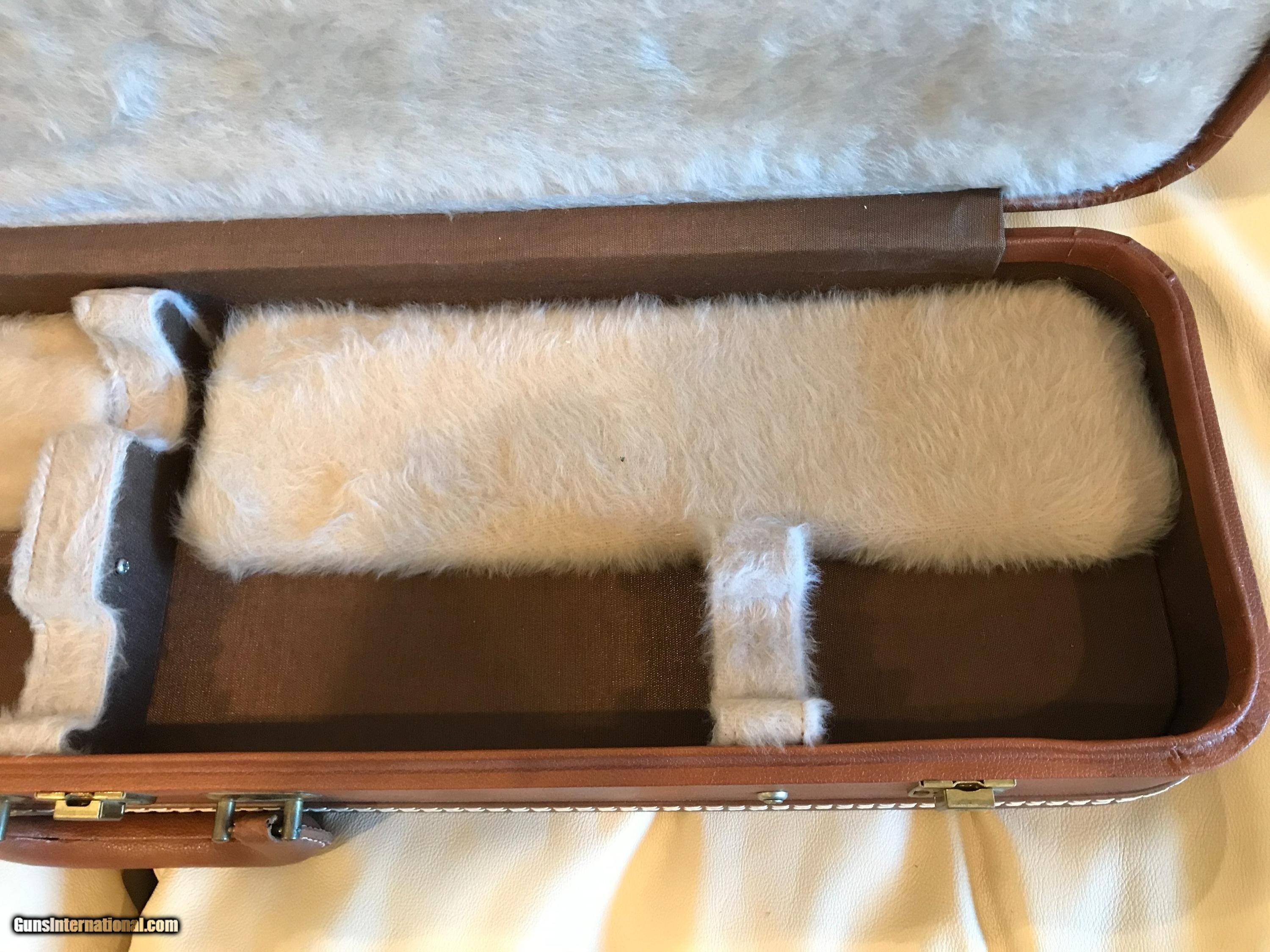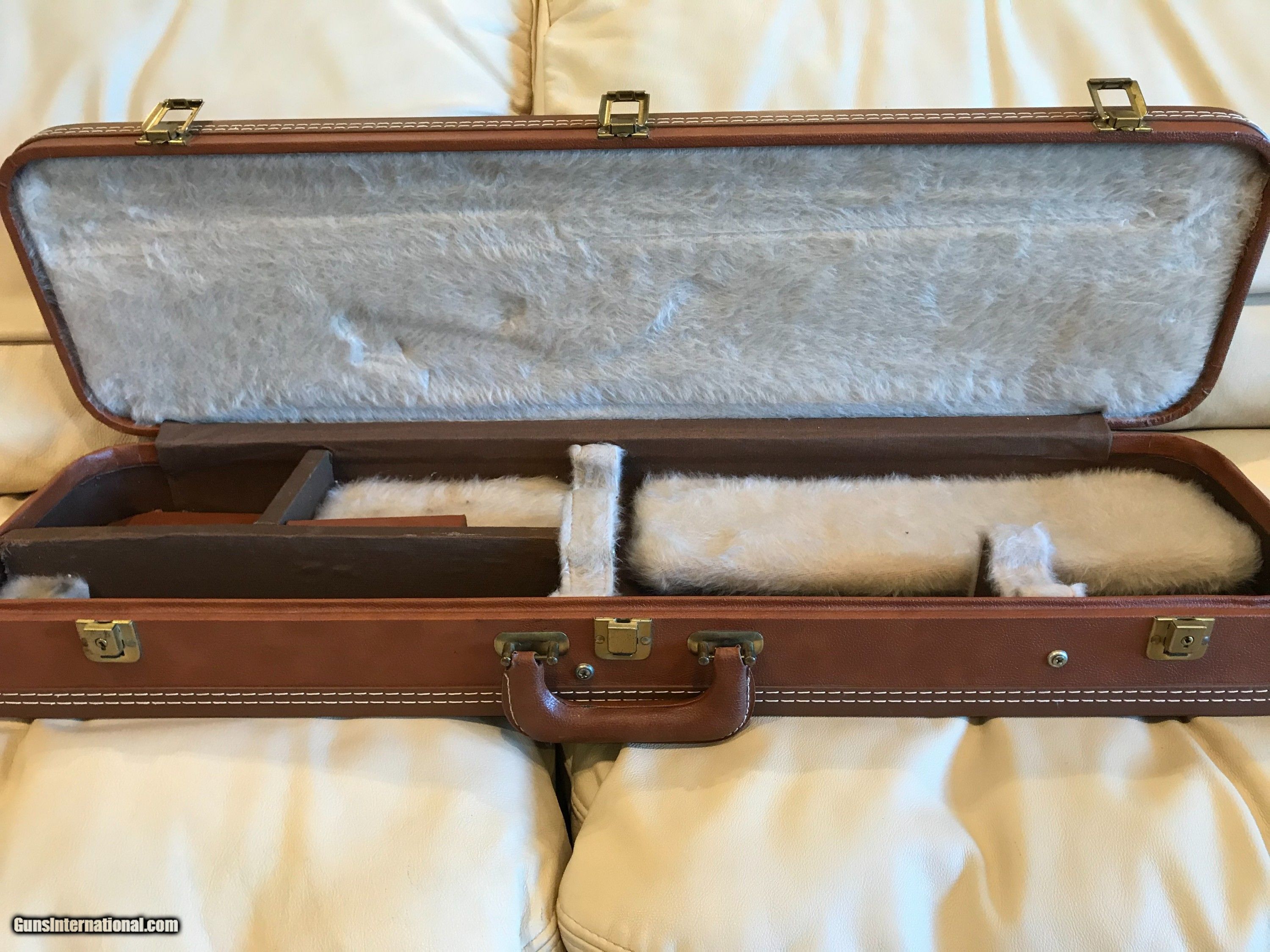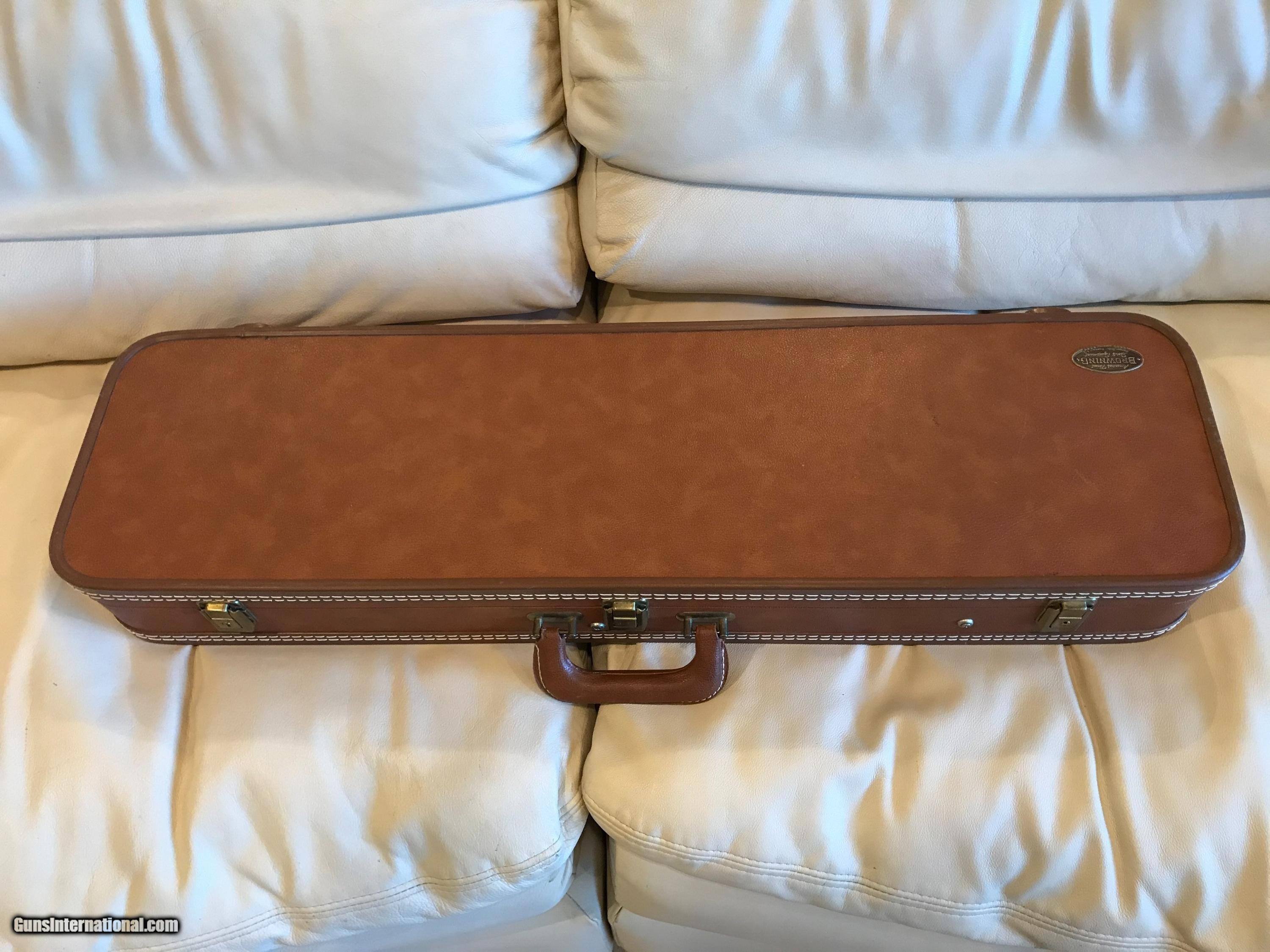 Description: Offering a very nice Browning Hartman case for a 30" SxS or BSS Browning. Will also fit other SxS's. Overall excellent condition inside / out. Some light staining to the interior from gun oil should be able to clean-up if required. Exterior in excellent codition with only one minor area of light scratches on back side (as shown in photo). This also may clean-up with some leather conditioner.
