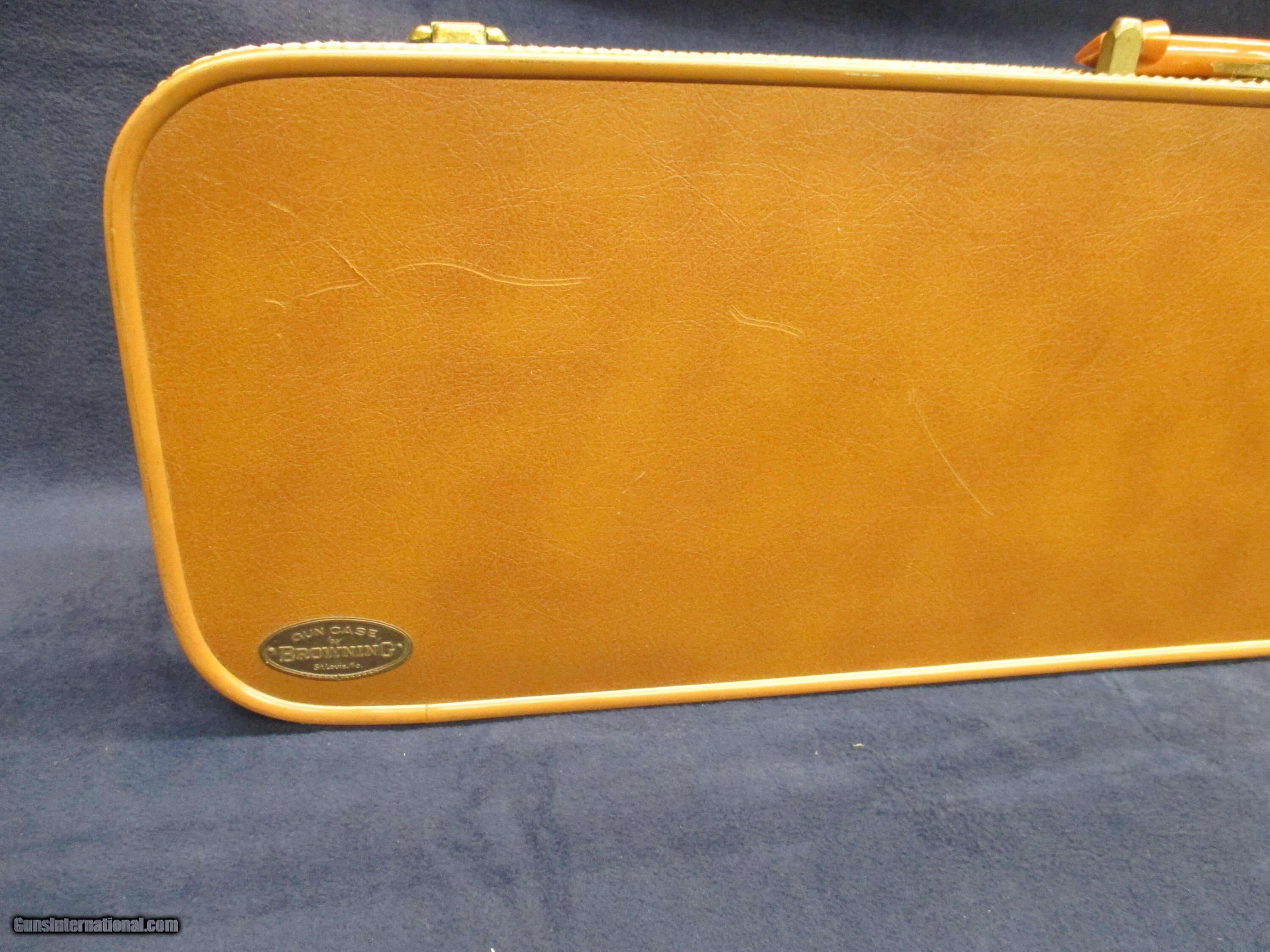 Browning case made by Hartmann for the Superposed with up to 30" barrels. This case is in very good condition with minor scuff marks. Missing the white insert on handle. For more information call (716) 592-9045
