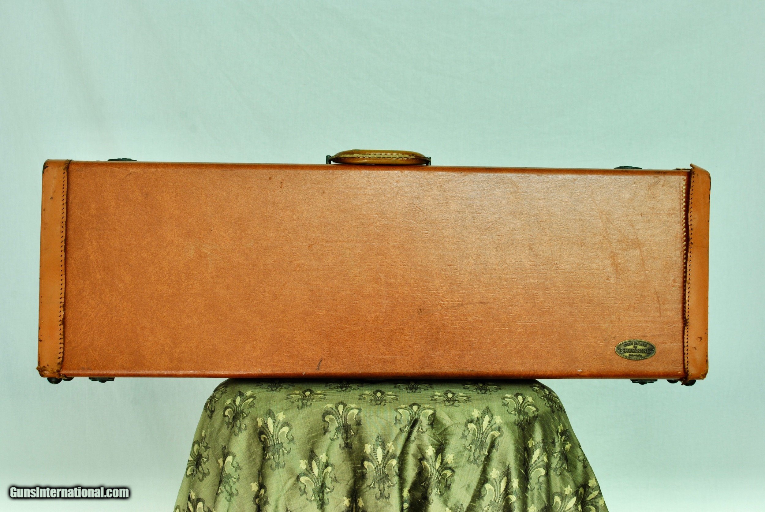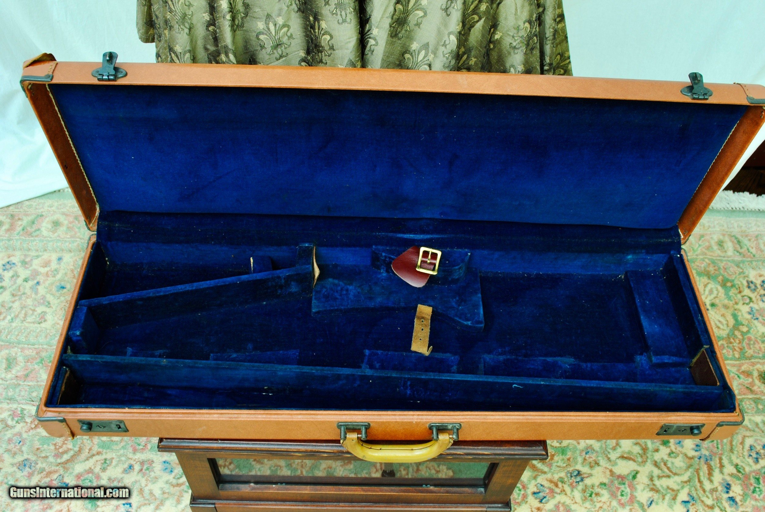 Description: SALE PENDING. Browning Tolex Case for 30" barrel shotgun (OU). Exterior dimensions are 31 3/4" x 10". Exterior edge banding is tatered. Long barrel divider slightly loose on one side. Interior material is good shape with stock wrist strap secure. Shipping is $50. SOLD |