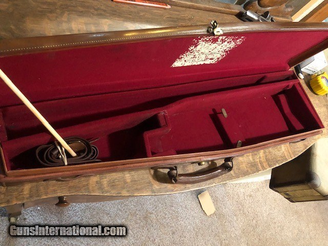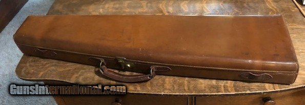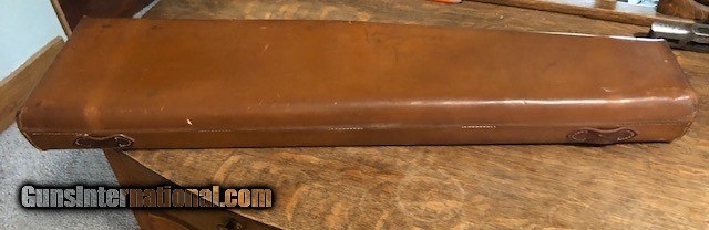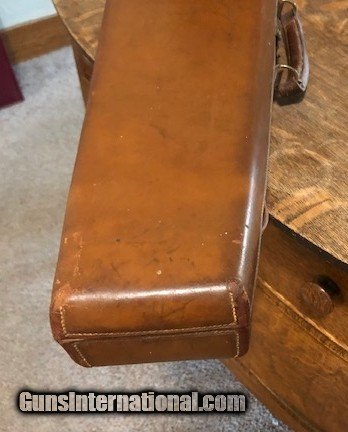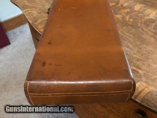Description: SOLD! Boss "Coffin" style leather shotgun case in excellent condition inside and out. The barrel slot will hold 29 3/8" max barrel length. The Boss label is in poor condition. Please see pictures for accurate description and condition. SOLD |