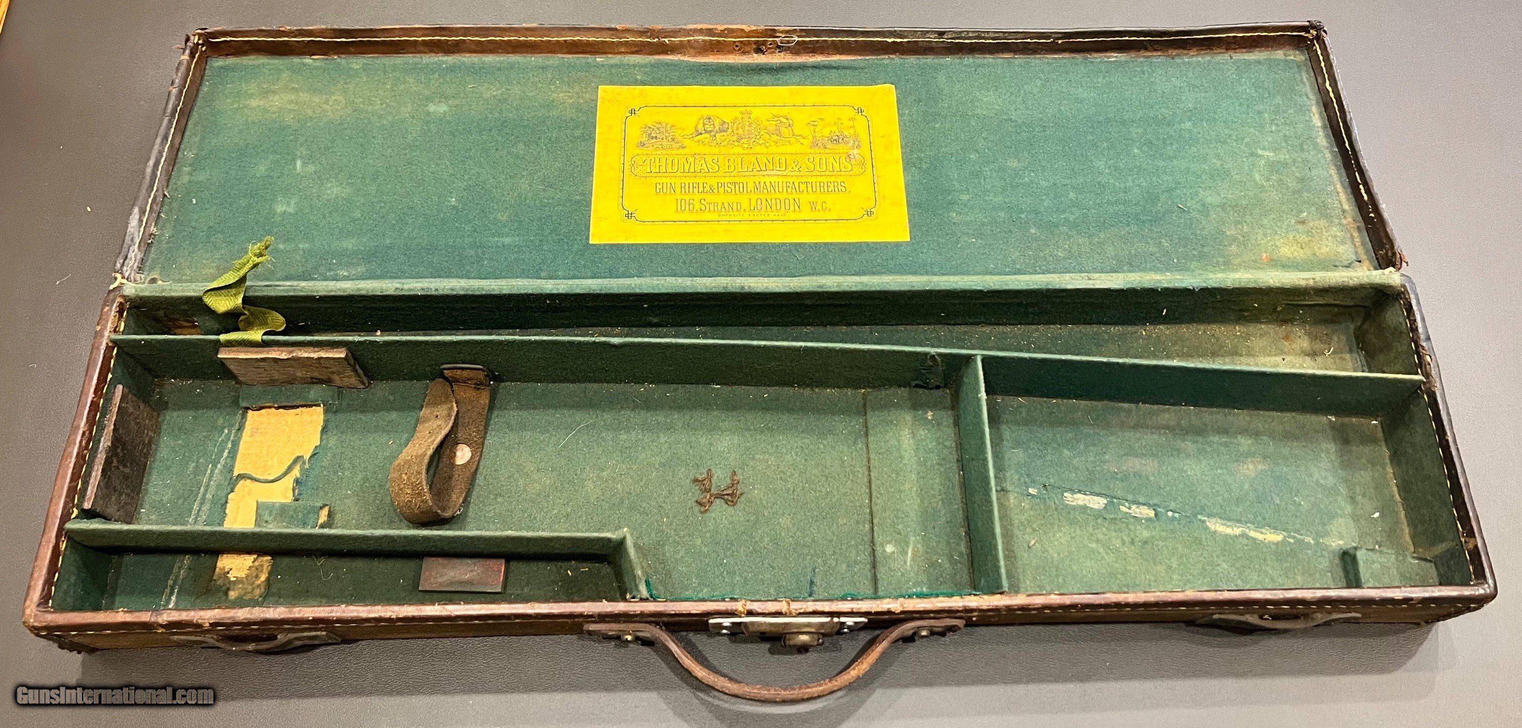 Description: Canvas & Leather Thomas Bland shotgun case Fitted for 30" barrels The top part of the latch is missing but the case can be secured closed with the straps. Use as is or re line the interior. SOLD Shotgun Gauge: 12 Gauge |