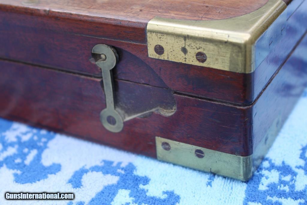 Description: SOLD! Very nice English mahogany case. Measurments are approx 32.75" x 10" x 3". The interior barrel slot will hold barrels up to 31". Original finish with no repairs or issues. No key. Please see pictures for accurate description and condition. SOLD |