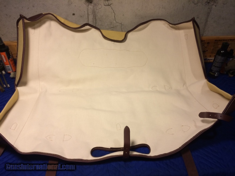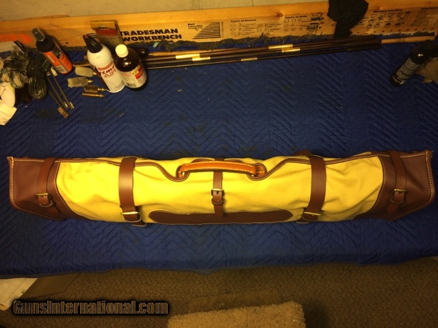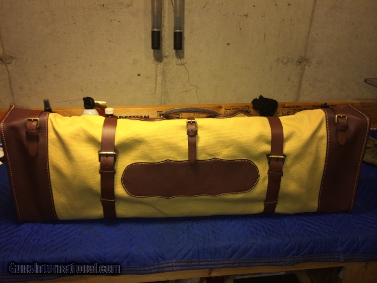 Description: This is a new and unused canvas and leather gun case cover, made by CSMC for their oak and leather case. High quality leather and canvas, no zippers, very attractive and well made. The cover will fit a case up to 34 x 11 x 4.5. CSMC sells this cover for $350. No international shipping. SOLD |