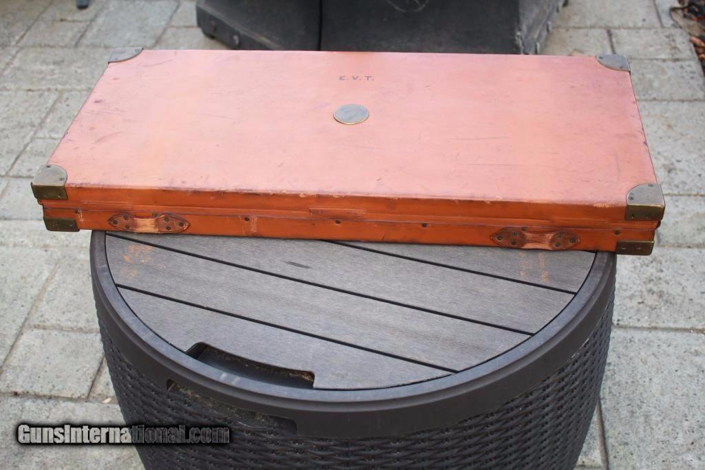 Description: SOLD! Outstanding Purdey Oak and Leather two gun case. Excellent condition inside and out. Set up for a pair of 20ga guns with 26" barrels. The original lock works perfect and the original key is included. This is just an outstanding original best English case showing little wear and no issues. Please see pictures for accurate description and condition. SOLD |