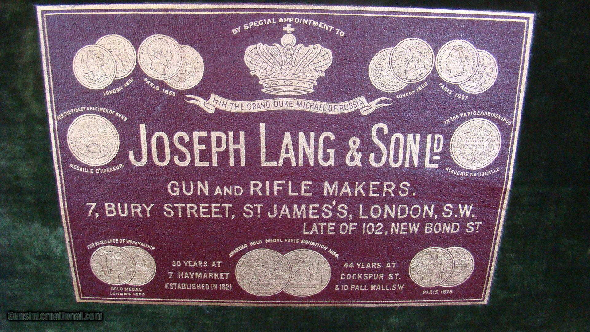Description: Deluxe oak and leather, luxurious green velvet interior. Original label bears the 7 Bury Street address. Interior dimensions 7-3/4" x 28" Presently set up for 26", 12 ga. Full complement of accessories, canvas outer cover. Outstanding condition. SOLD |