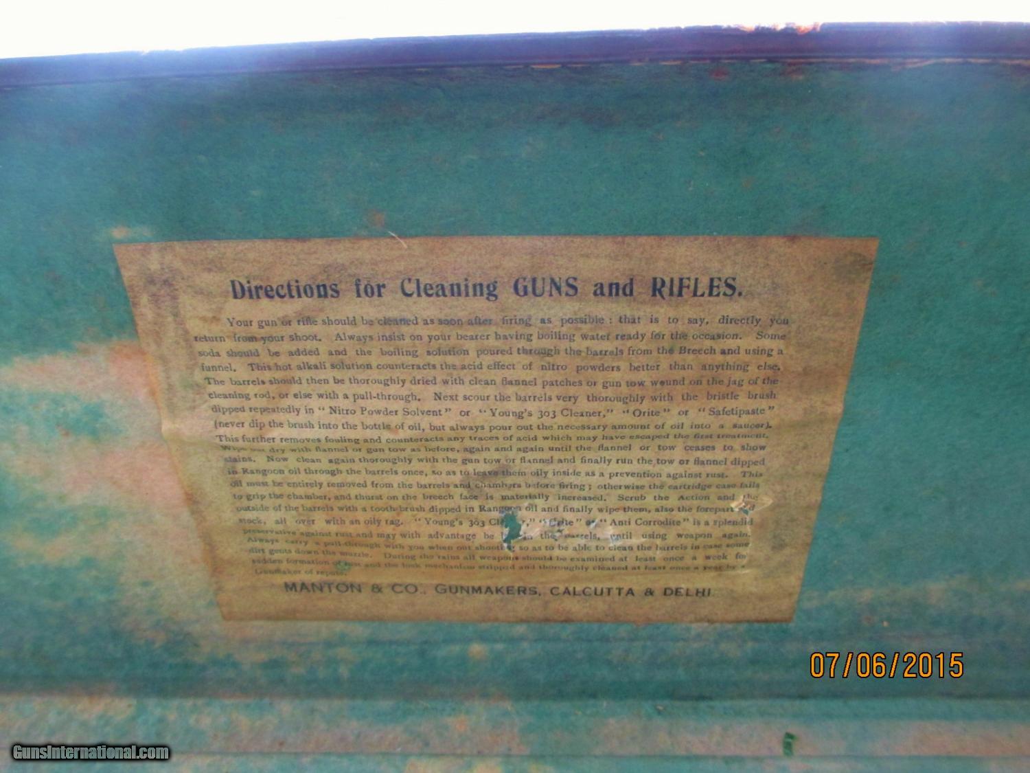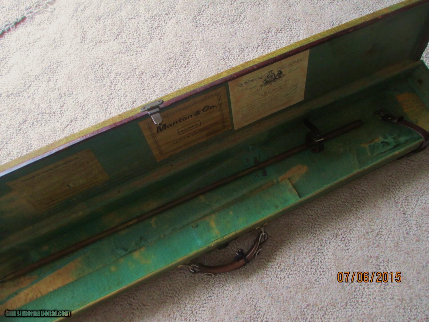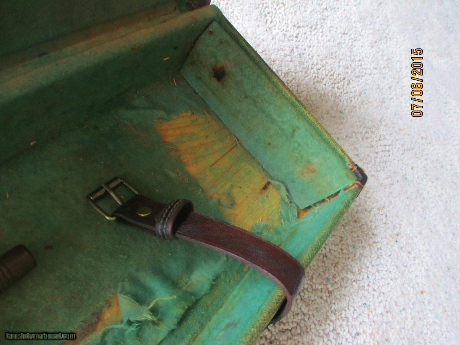 Description: I am offering a very scarce MANTON shotgun Trunk Case having original outer fabric as well as the inside...albeit a tad worse for wear due to AGE..! The labels are still within the top inside of case. The grip handle is obviously refurbed ..BUT it still has the original keys/locks which work nicely yet. The case is sound overall but again due to use/age it needs some minor refurbing.....OR...just leave it alone to display its original"patina"...This case will hold a full length shotgun 49in.inside measurement. This is sold As-Is ..S&H=$35.0 ConUSA///More elsewhere.Foreign buyer must make own shipping arrangements. ALL payment in US Dollars. FYI, I have refused an offer of $160.00 SOLD |
