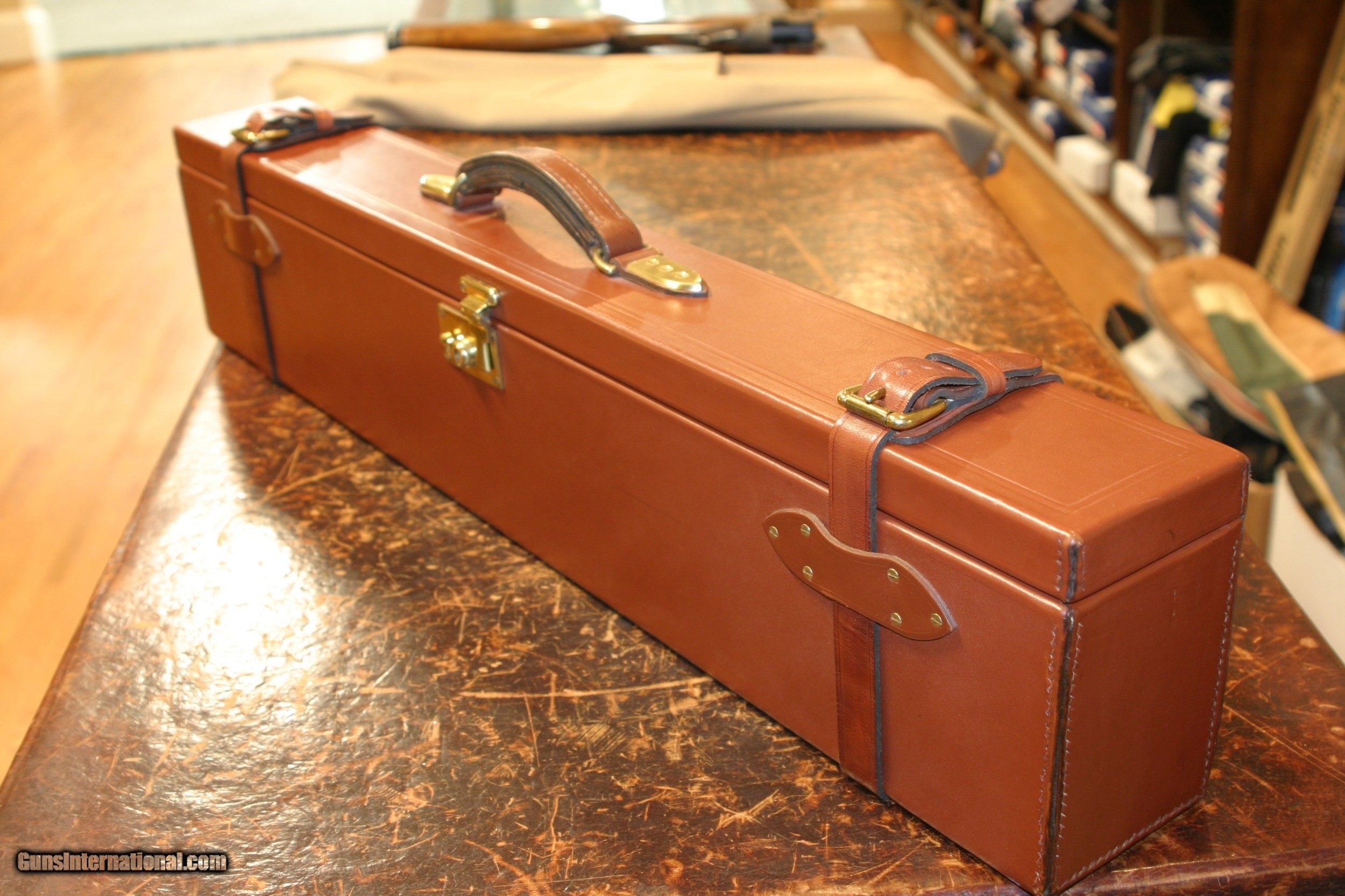 Description: EXPERTLY RESTORED INSIDE AND OUT, STARTING ITS LIFE IN LONDON,AS A "DOUGLAS AND SONS" MOTOR CASE, REBUILT TO HOLD MOST ANY OVER/UNDER SHOTGUN WITH UP TO 30" BARRELS. NEW OUTSIDE LEATHER COVERING BY HUEY CASES AND INSIDE IS PREMIRE GRADE BALLARD CLOTH, WITH HANDMADE OUTSIDE DUST COVER. SOLD |