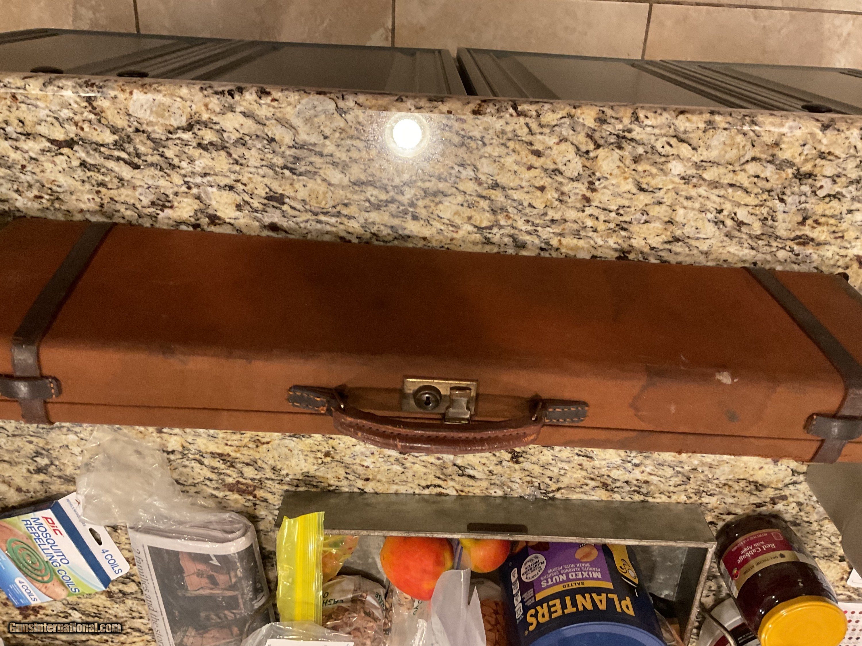 Description: This is a nice old case in good shape.It's 30 1/4 long,7 3/4 wide and 3 1/4 tall.it fits 28 1/2 barrel and 20 1/2 receiver. SOLD Shotgun Gauge: 20 Gauge |