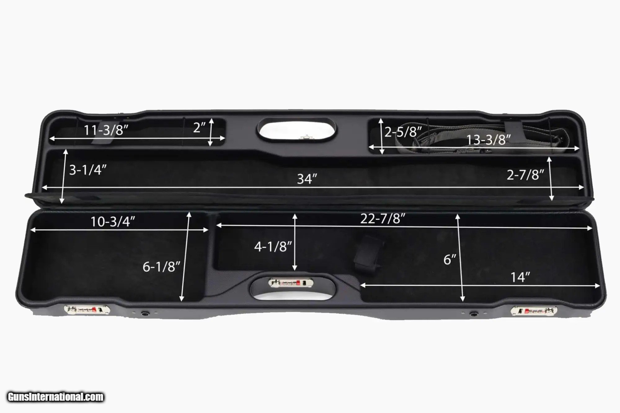 Description: Negrini OU/SxS Superlative Compact Sporter Shotgun Case 16407PPL/2480 Negrinis smallest sporting shotgun cases ever produced. The 16407PPL series case designed to fit sporting shotguns with barrels up to 32. Tipping the scales at 6.8 lbs, this luxury shotgun hard case is ultra-compact and ultra-light. Fitting any OU/SXS shotgun with barrels up to 32, the Uplander is approved for air travel and features a hand-detachable sling system for hands-free use. The Compact Sporter case features a hand-upholstered luxury interior and is engineered with separate compartments for your stock, receiver, and all accessories on one side. Storage for the barrel with the forearm on at the top of the sporting shotgun case. Manufactured with Negrinis rigid double-wall composite technology, the compact shotgun case opens 180° for easy access and has 3 TSA accepted steel combination locks for security. The NEW Compact Sporter and ultralight gun cases are perfect for air travel, car, club, and home. Features Color: Caoba Leather/Brown Leather Interior Trim: PPL Fits Over/Under and SXS shotguns Forearm on barrel Patented Quick Detach Padded Sling Weight: 6.80 lbs About Negrini Gun CasesNegrini gun cases are designed with an ultra-strong double-wall ABS construction. Which consists of a thick thermoformed ABS outer case welded to a rigid thermoformed inner case. Negrini gun cases are fully cushioned and lined with plush velvet or microfiber. Negrini gun cases patented double-wall construction assures maximum shock absorption without breaking. Each gun cases are fitted with hardened steel combination locks and hinges. The locks are recessed to prevent gun case damage on conveyor belts. Negrini gun case interiors are designed with separate compartments for stock and receiver, barrel and forend as well as accessories. All Negrini gun case materials used are certified to not outgas or corrode firearms. Many colors are available. Limited lifetime warranty. International air travel certified Hardened steel combination Locks for security 100% Made in Italy Lightweight air travel without all the extra baggage fees Limited Lifetime Warranty Manufacturer: Negrini Model: 16407PPL/2480 Condition: New Barrel Type: Over and Under Rib: Flat Rib, Mid-Rib, Adjustable High Rib Weight: 7.55 lbs Price: $825.00 Contact Seller |
