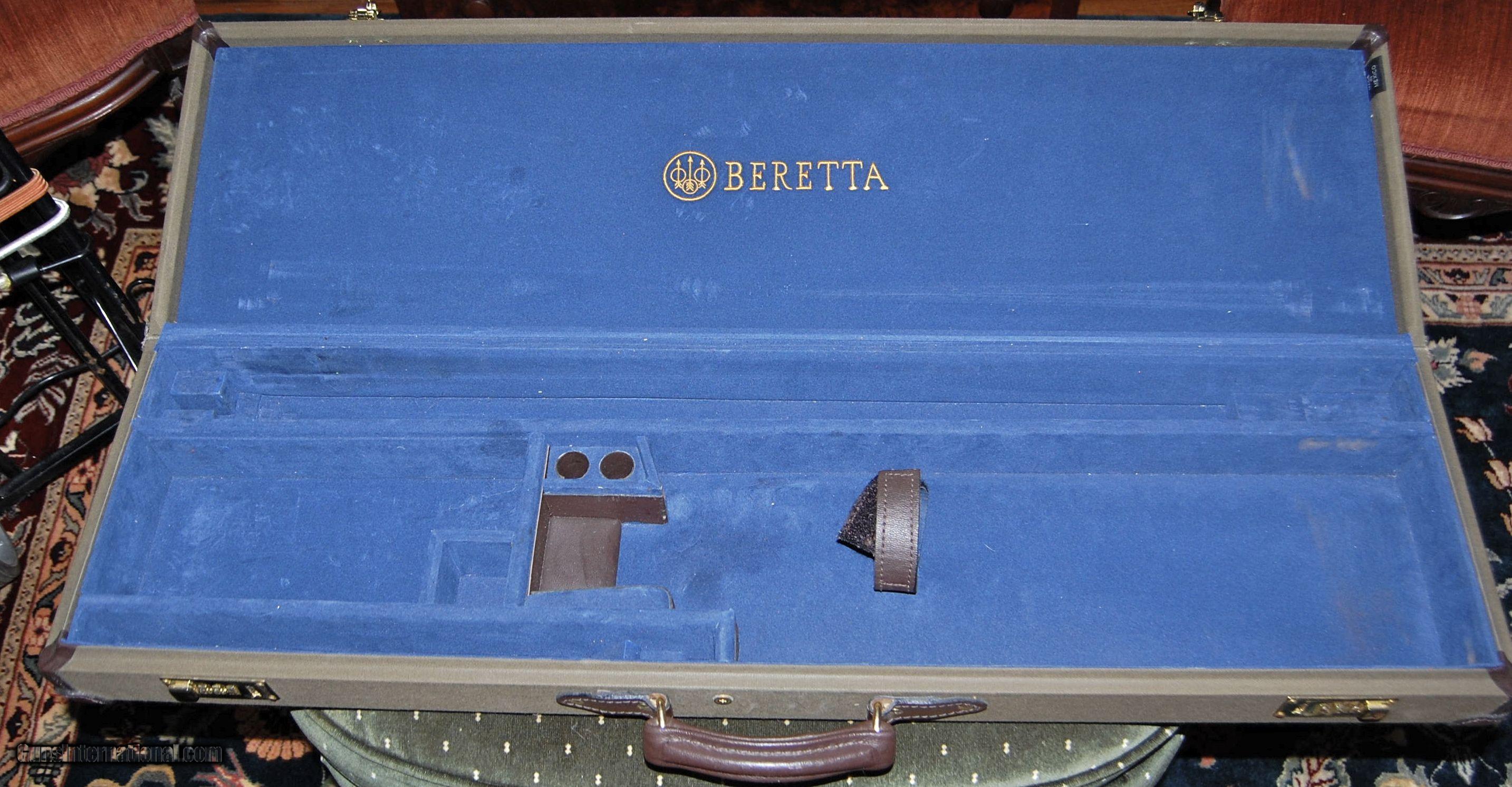 Description: Beretta canvas case for an over under or sidexside shotgun.This case will take up to a 30"barrel.Excellent condition with leather corners and handle. SOLD |