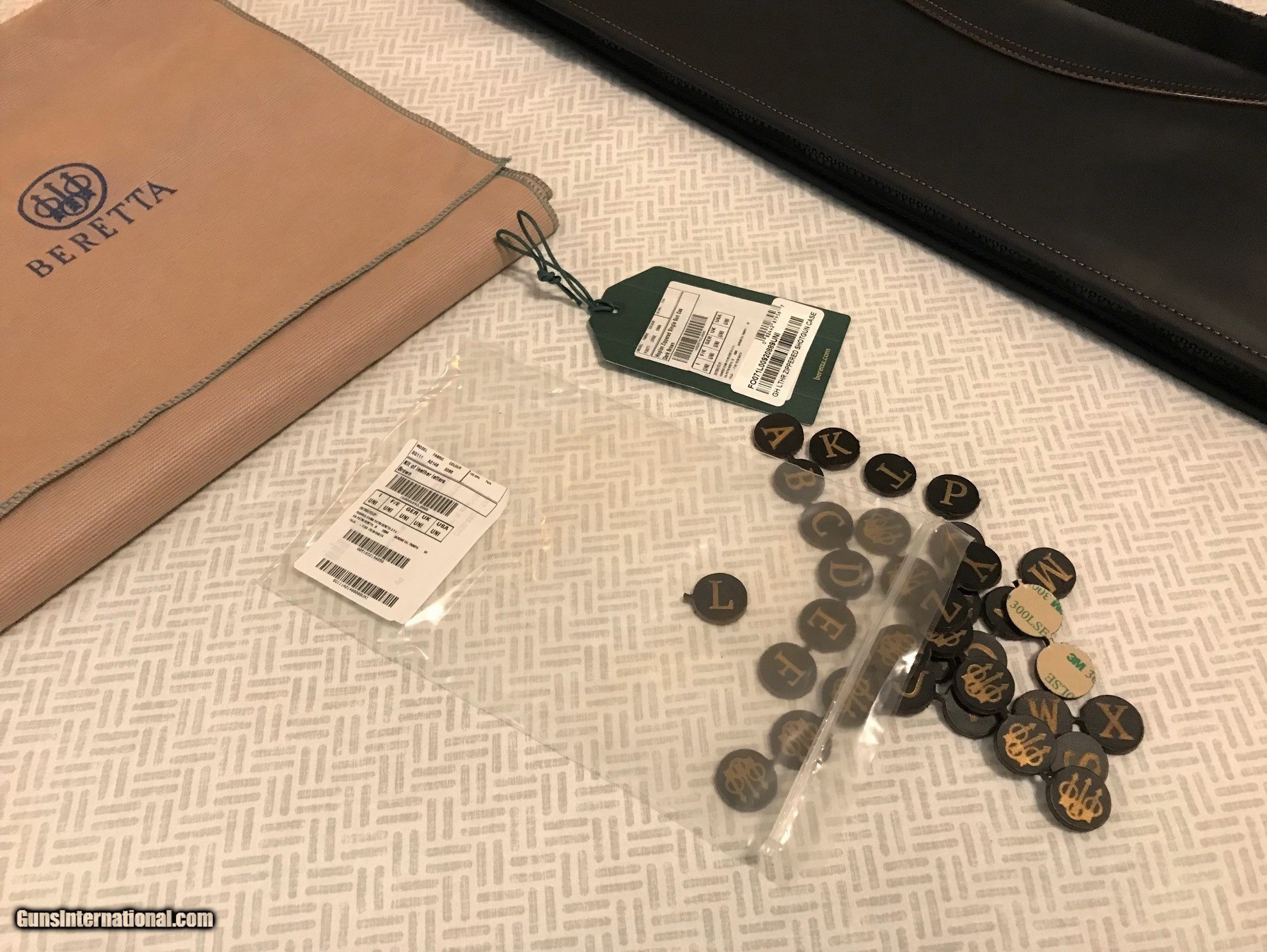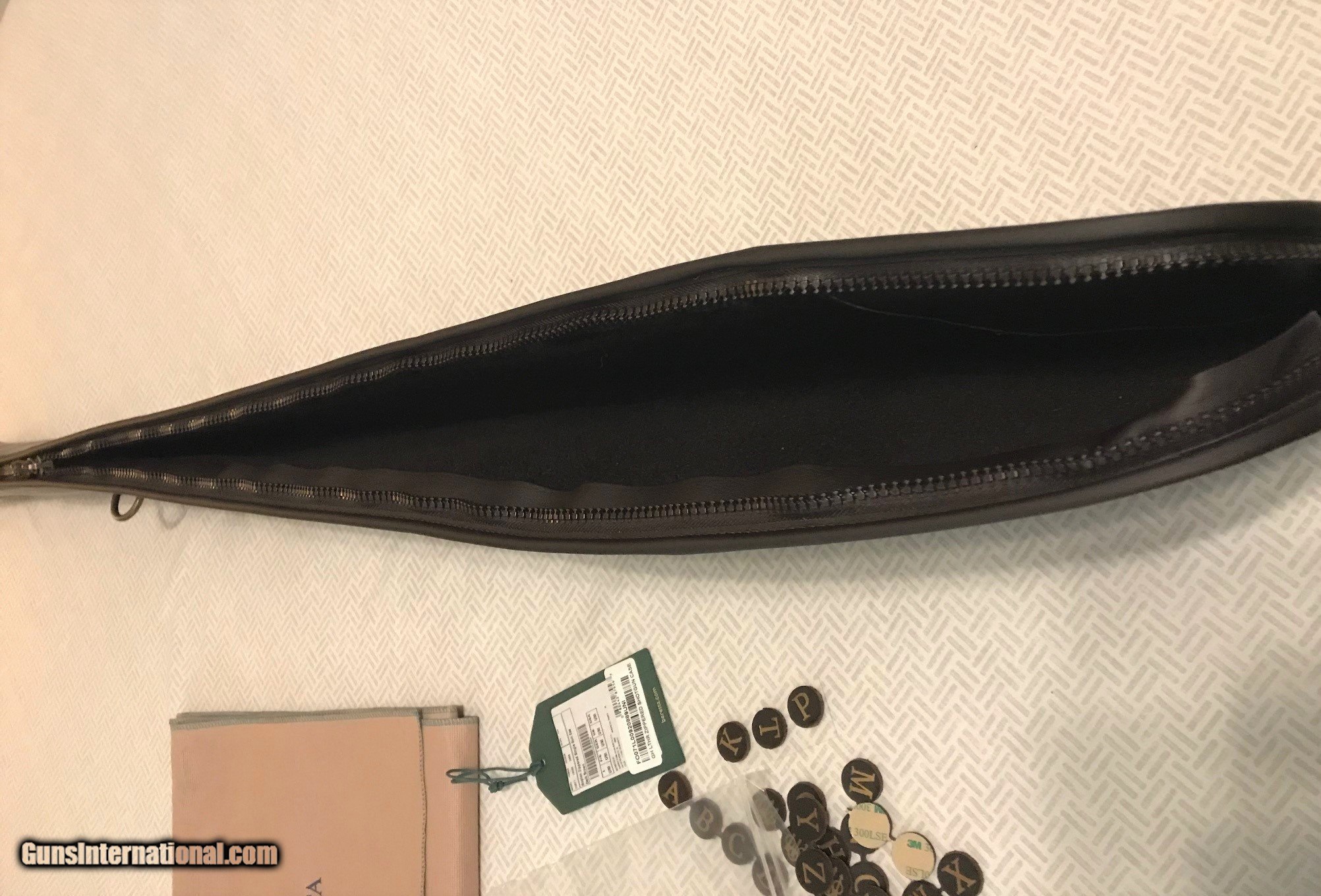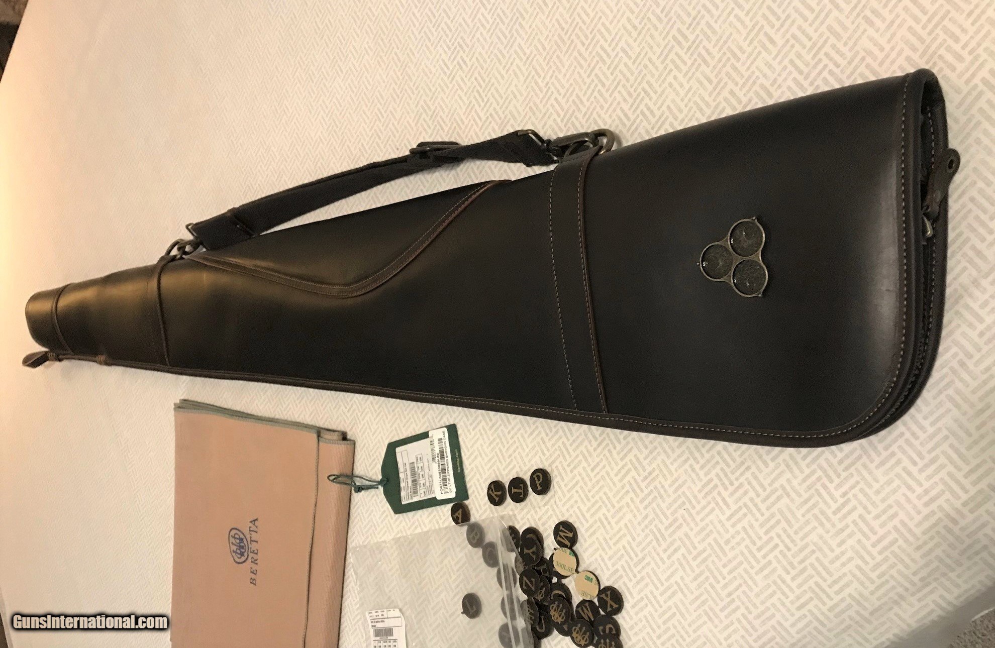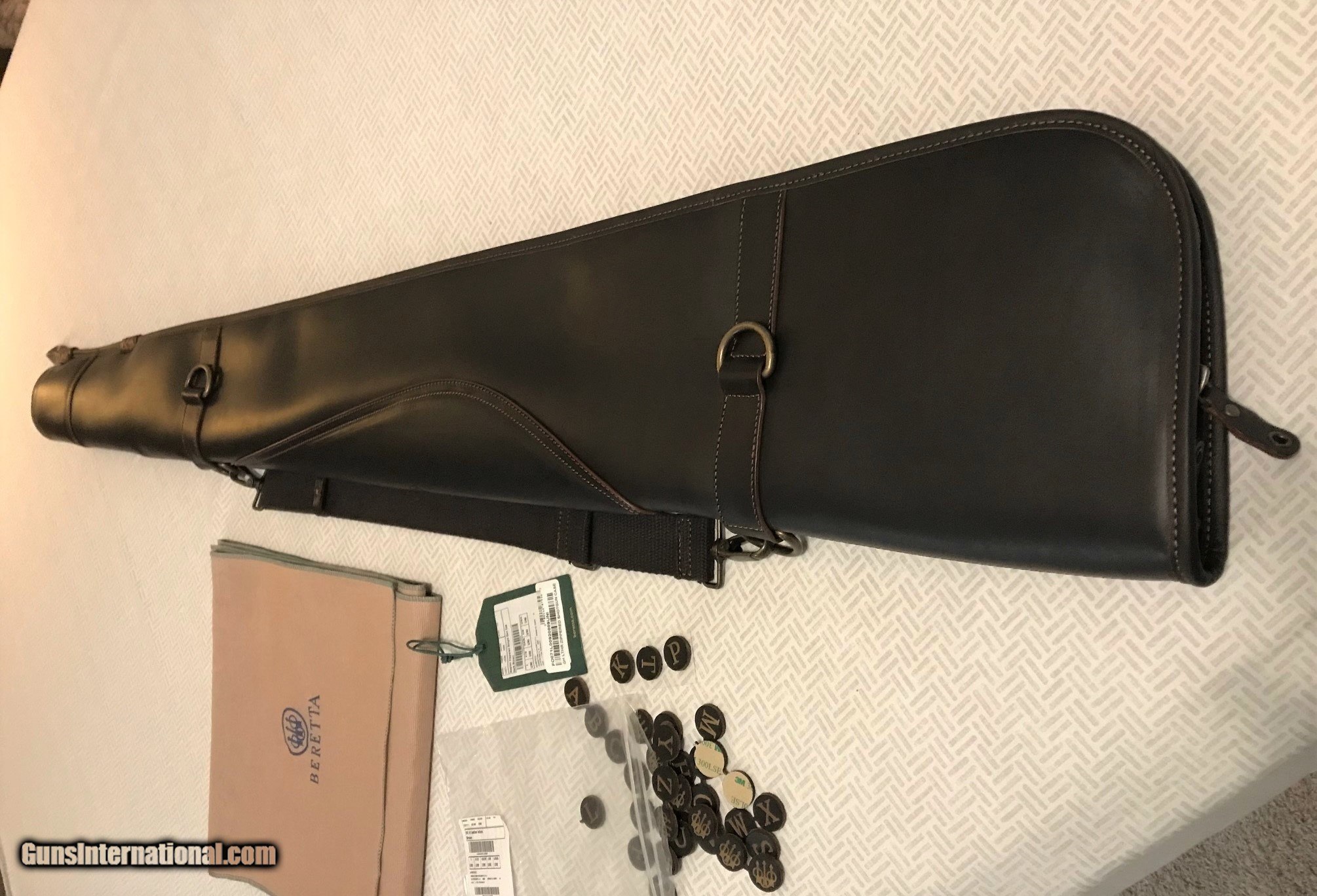 Description: Purchased this new a few months ago and has remained unused since. This case will fit O&U or SxS guns with up to 32" barrels. Lockable zipper - Multifunctional elastic shoulder strap - Eco fur lining in brown - Embossed Beretta logo - Personalization letter kit included - 7” x 50” x 3” . Will ship in the original box and within a fabric sleeve. Please add $15 for UPS shipping. SOLD |