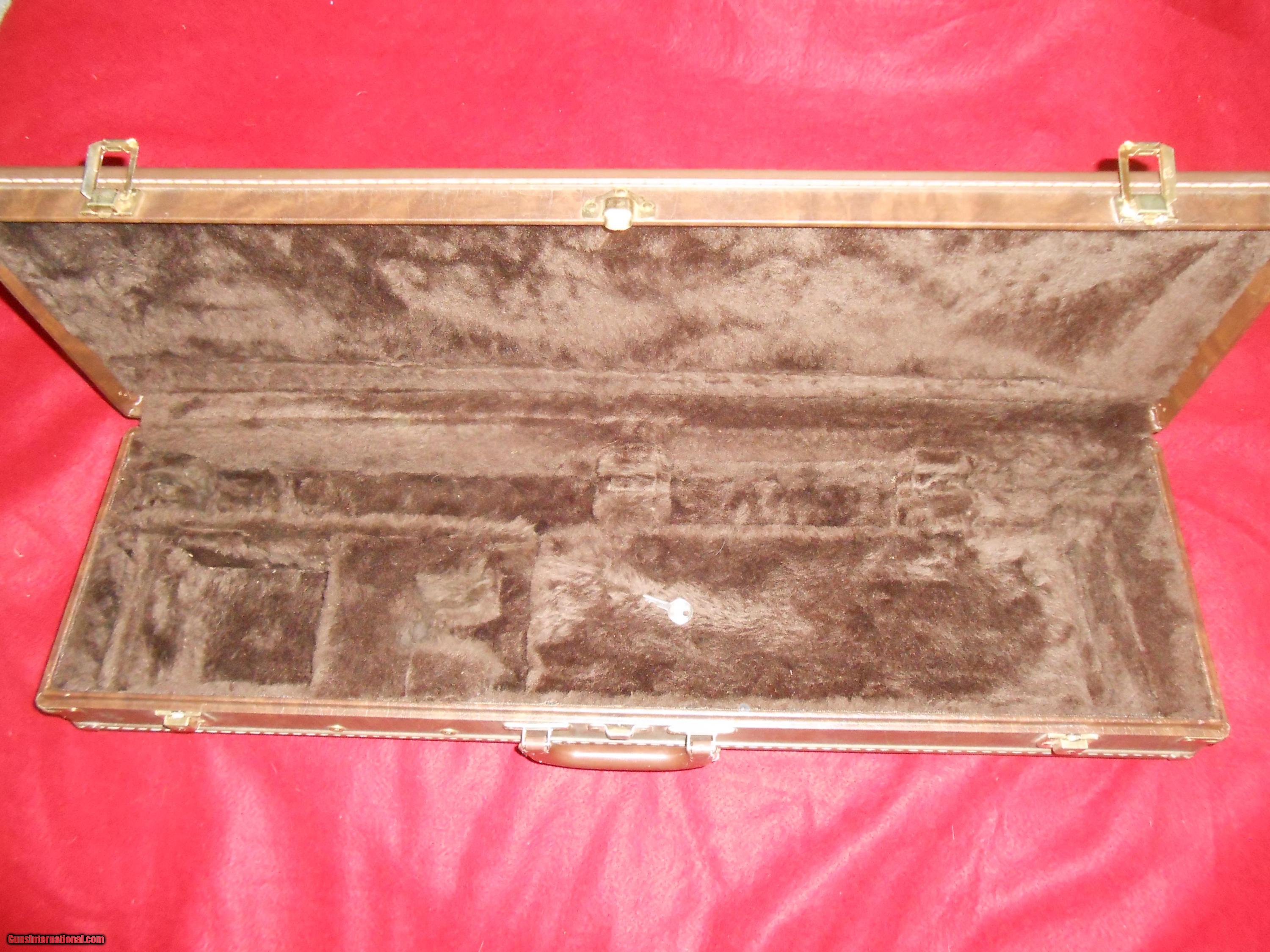 Description: Offered is a Browning Superposed luggage type case. Condition is excellent overall with the exception of one small spot on the back side of the case (see photo). Perfect for a vintage over/under shotgun. It comes with an original key for the locks. SOLD |