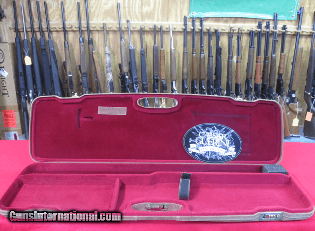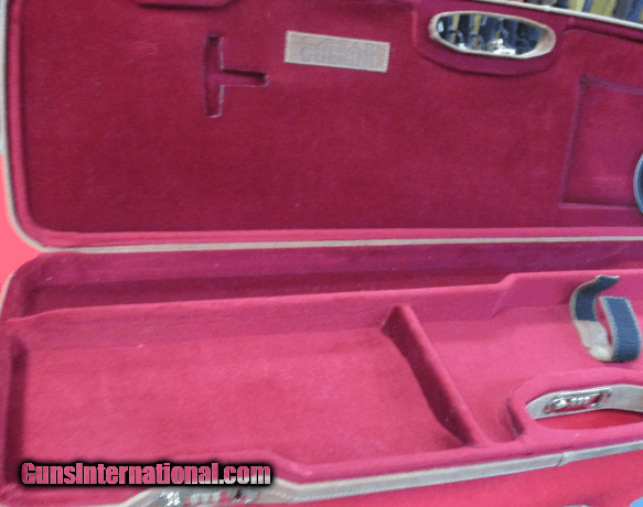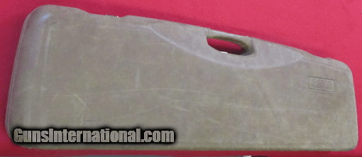 Description: Take Down Shotgun Case by Caesar Guerini which was Made In Italy. The outer Tan Shell appears to be Leather while the interior is a red felt type material. There are three interior compartments. The barrel compartment mearsures approx. 37" long and 3" wide tapering down to 23/4" wide. The stock receiver compartment measures approx. 231/2" long and 63/4" wide with a Leather strap to secure the Rec./Stock. The spare compartment measures approx. 13" by 6". The over - all outside dimensions are approx. 38" by 11". The case has 3 combination locking points that have not been set.The case has a built in carry handle. The over all condition is good having some scratches and scuff marks on the exterior. The interior felt material is excellent all intact with no rips or tears. I will ship to a private individual within the Continental US with FREE SHIPPING INCLUDED .Shipping to AK and HI will pay the exact shipping cost. I am a storefront Dealer in business for 21 years with over 1600 A+ Internet Sale Ratings. Thank you, Glenn SOLD |
