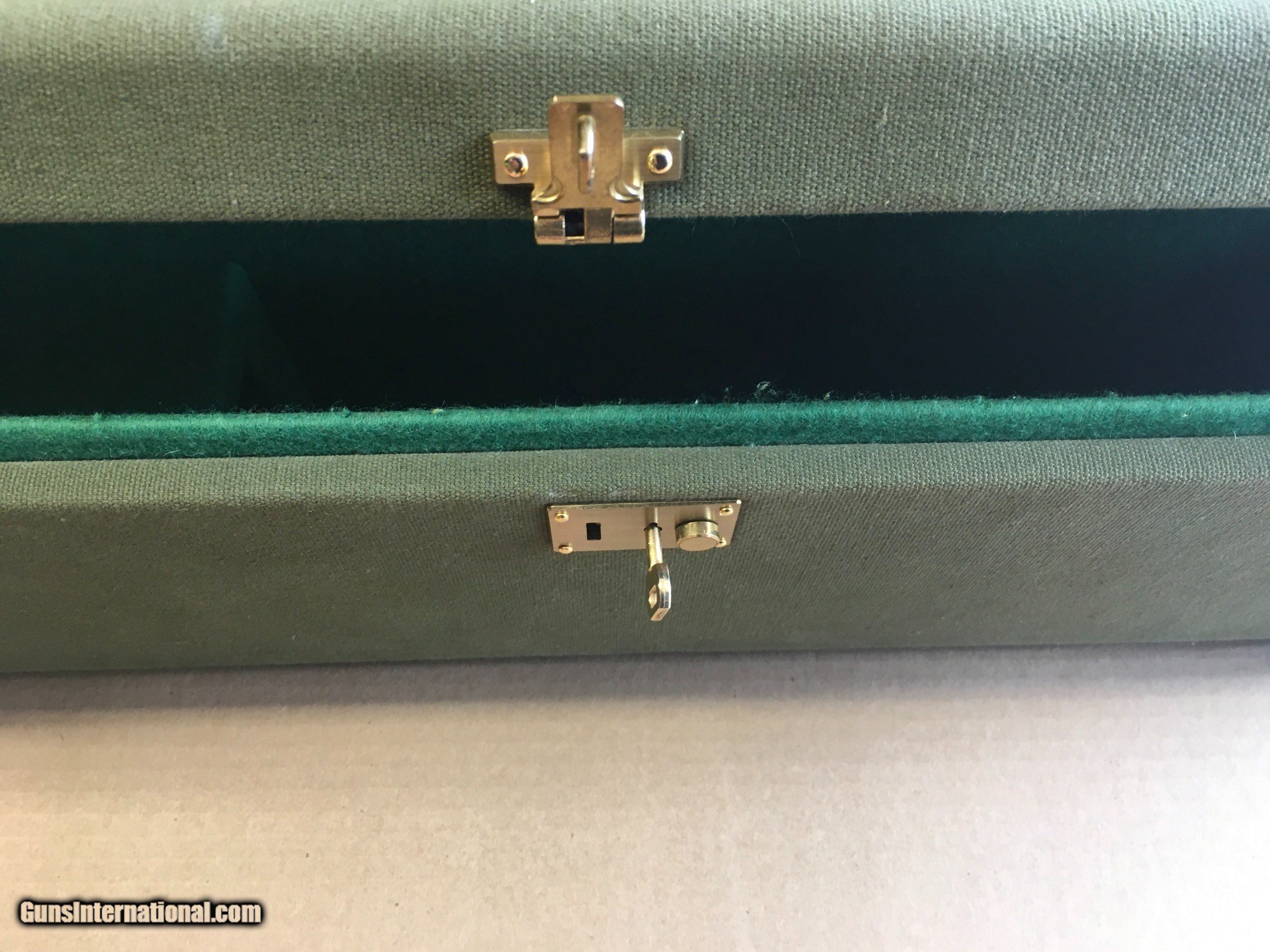 Description: **** Sale Pending **** For sale is like new Canvas Shotgun Motor Case made by Emmebi. Emmebi case are made in Italy and are known for their high quality and attention to detail. They are one of the best and are expensive. The out of pocket cost for this case would be about $1,000 if you ordered one today from Italy. SxS Shotguns up to 20ga and up to 28" barrels should fit. The barrels can be no longer than 28”. The case was probably designed for SxS with barrels of 71cm (27.95 inches) max. The Arrieta 20ga in the photos has 28 1/4 inch barrels and they do not fit. One key is included. This is a compact case with approximate dimensions: 30" x 7" x 4 ¼". The storage compartment, under the chamber end of the barrels: 6 ¼ L x 2 ¾ W x 2 ¾ Deep. There is space for a two piece cleaning rod along side the receiver (under the barrels). Shipping $50 Buyer is intitled to a 3-day inspection period. All postage and insurance will be incurred by purchaser. Must be shipped. No face-to-face transactions. Sales Tax charged only to PA residents (6% sales tax on item price plus shipping or supply resale certification). Sorry I no longer accept Credit Card (fees are too high). Money Order or Check. US Postal MO preferred. We have been in business for 40 years and have 100% positive feedback on GA. SOLD Shotgun Gauge: 20 Gauge |