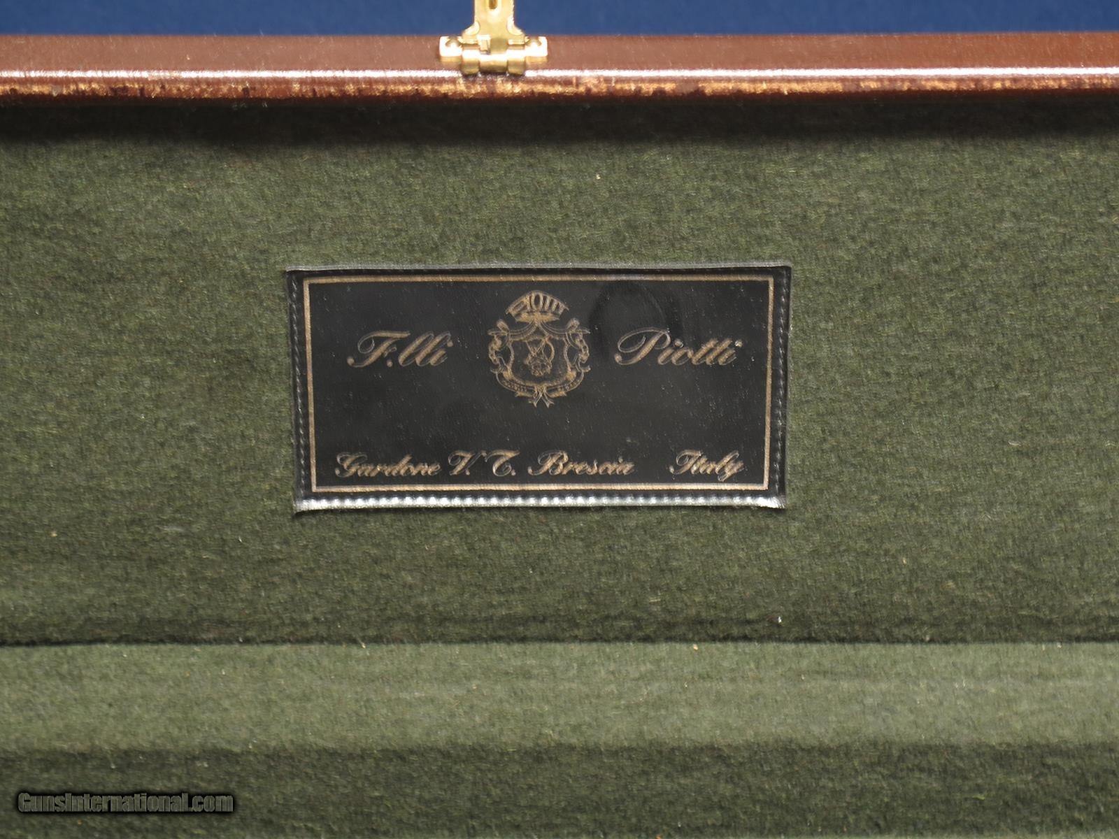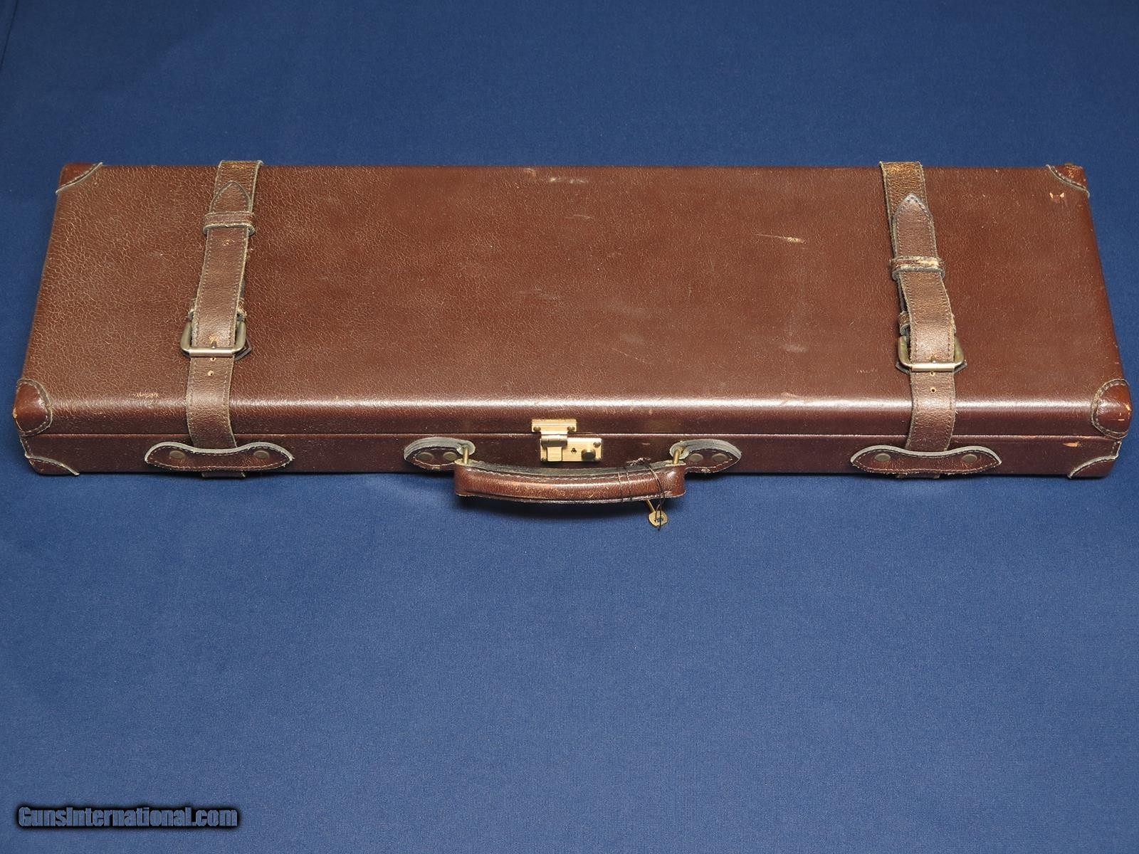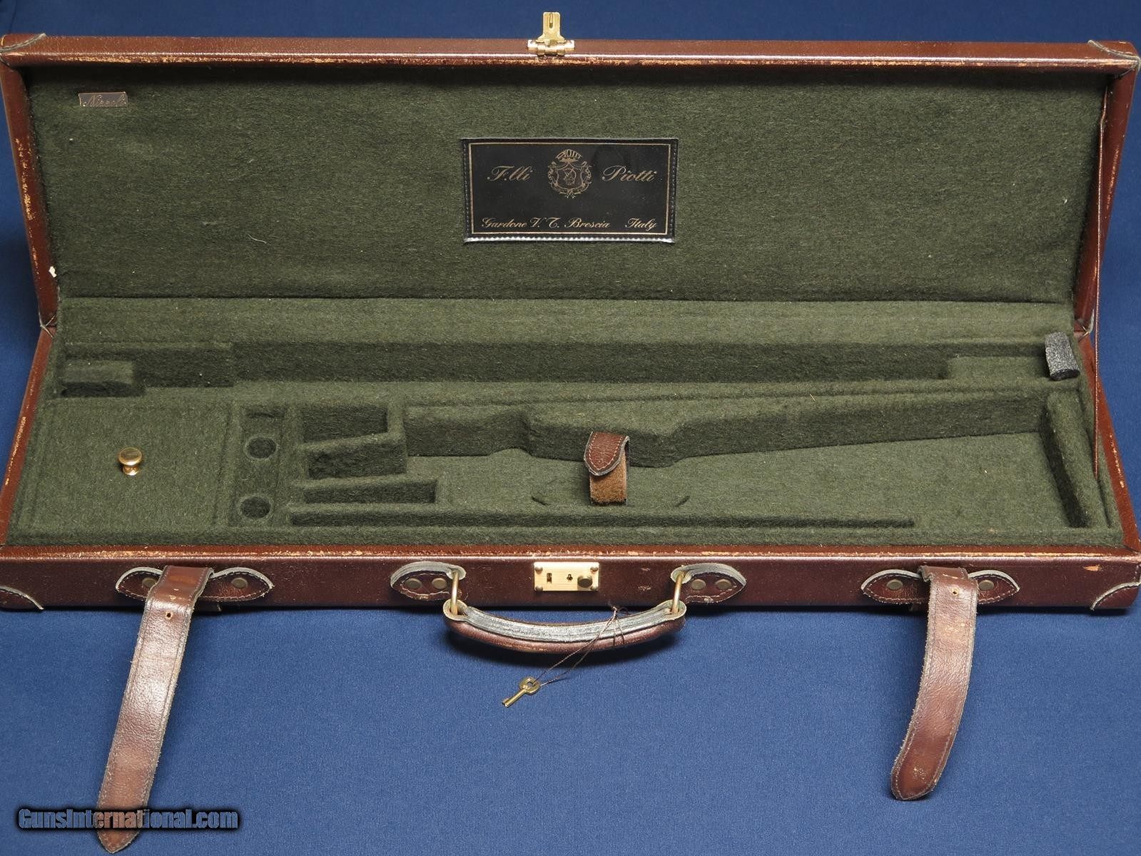 Description: F. lli Piotti SXS leather shotgun case made by Nizzoli Italy. For 26 or 28 inch barrels. With key. Shows slight use. SOLD |