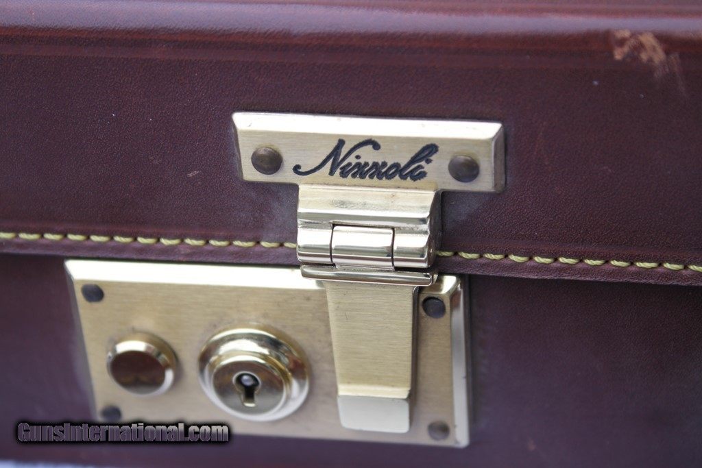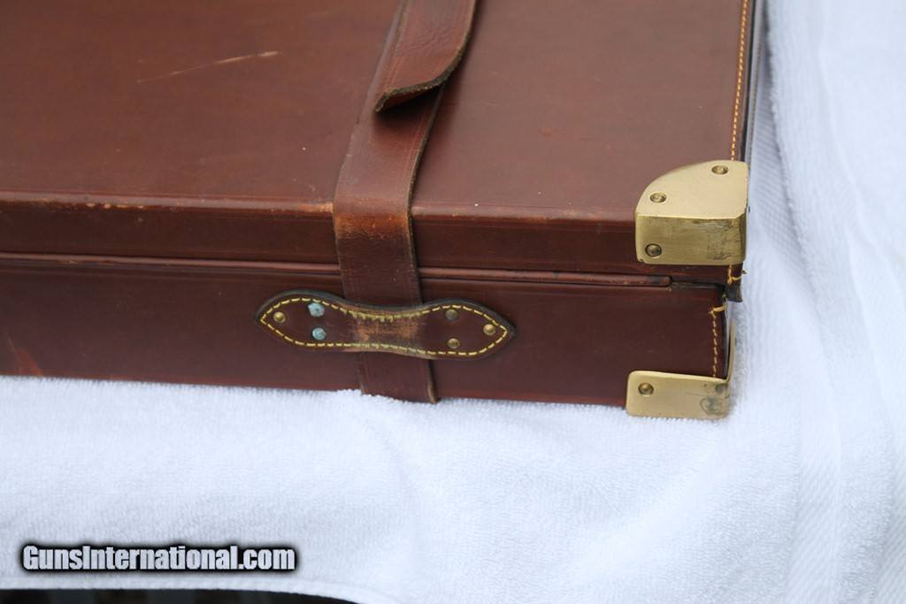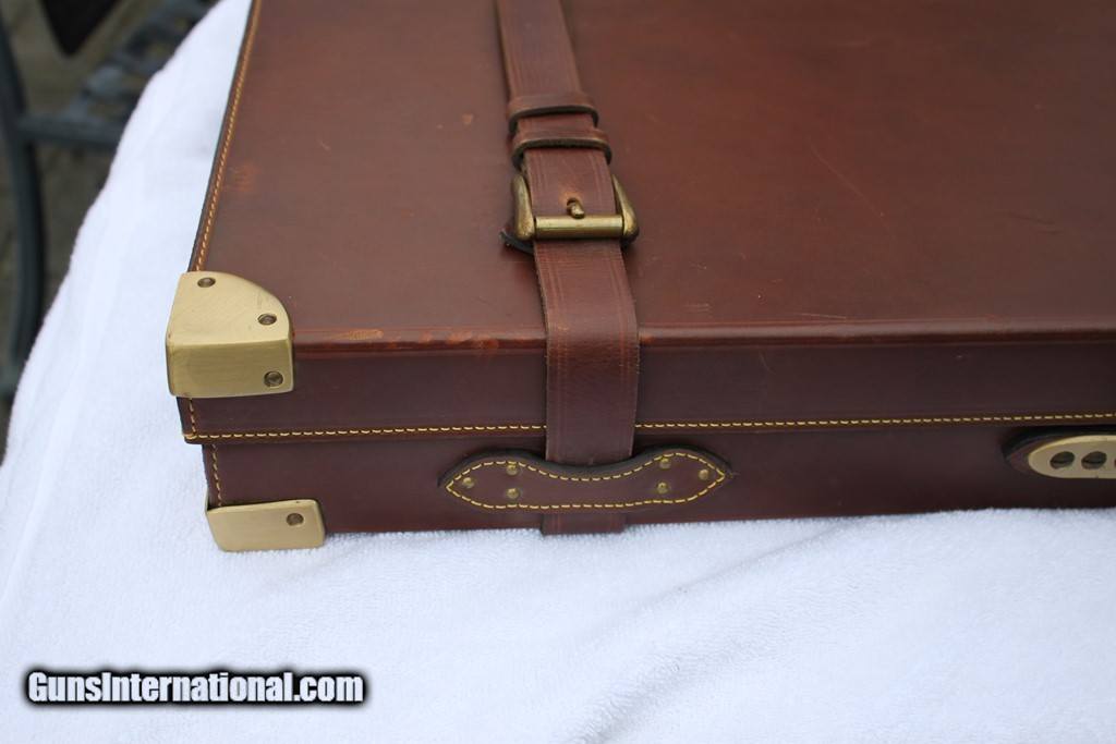 Description: SOLD! Outstanding Famars Abbiatico & Salvinelli Nizzoli Two Gun Oak and Leather Case for a pair of 12ga O/U guns. The barrel slots are currently blocked for 31.25”. Outstanding condition inside and out. This case new is over 4000 Euro's today. Wonderful case of excellent craftsmanship. I put two Superposed guns in the case to show fit in the last two pictures. The guns are NOT included. Please see pictures for accurate condition and description. SOLD |