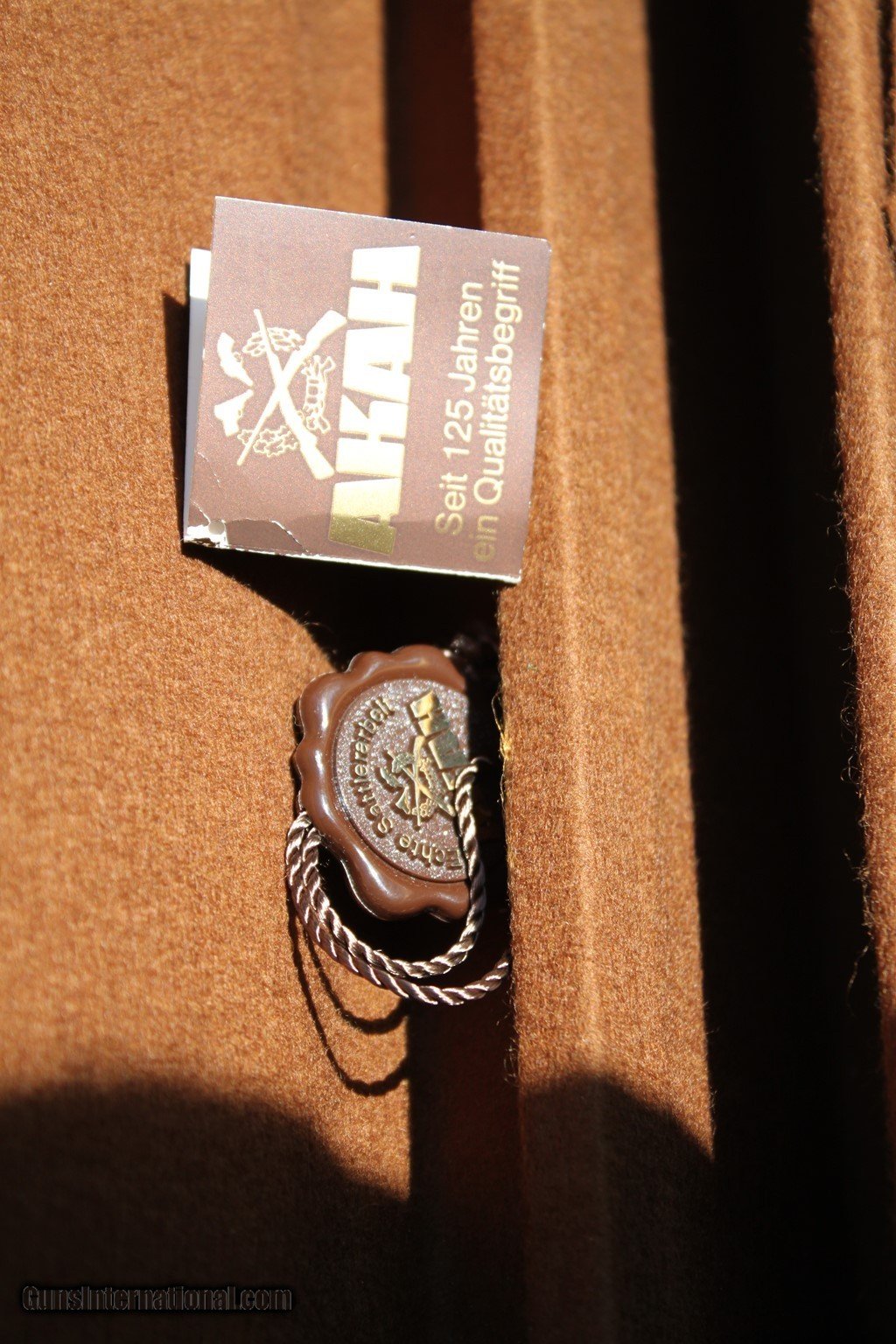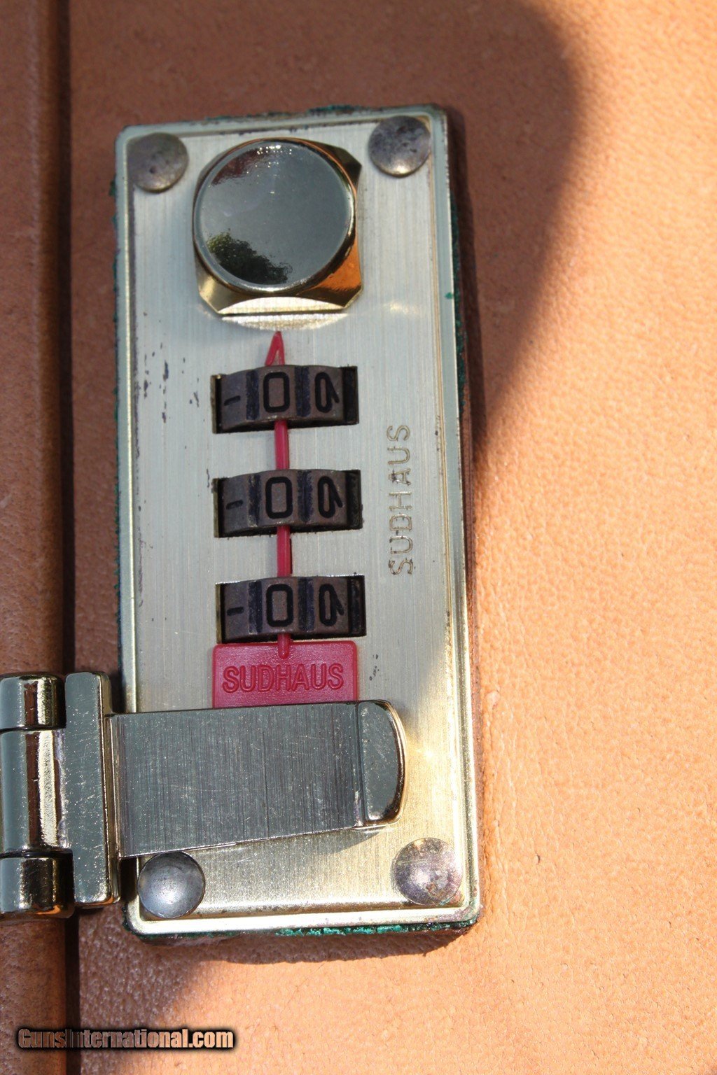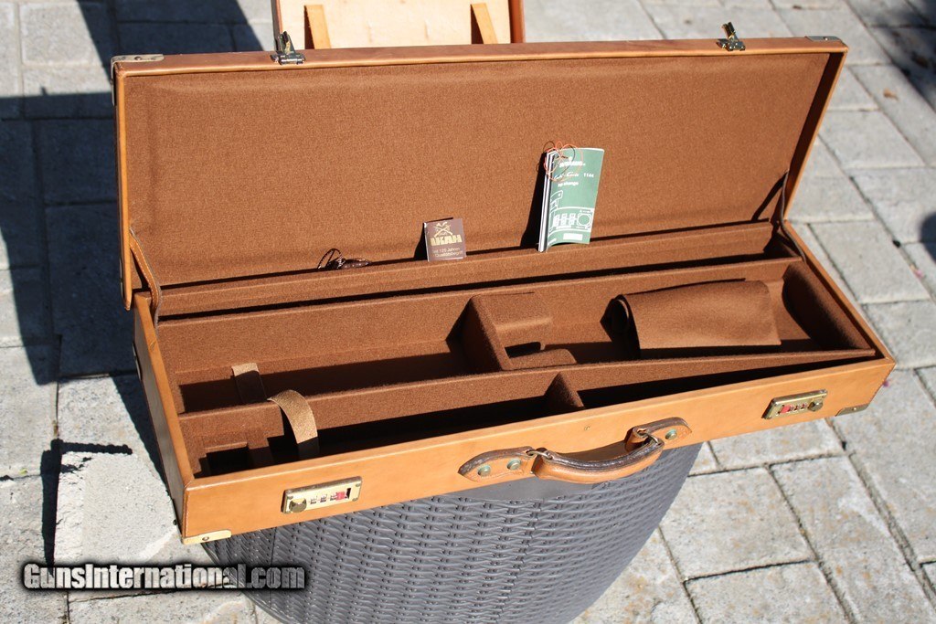Description: SOLD! AKAH German made trunk case for O/U gun with with 28.5" barrel. The breach end of the barrel slot is 1 3/4" wide. The barrel slot max length with blocks removed would be 29" max barrel length. The inside is in as new condition and the breach block can be moved to custom fit for your action. The exterior shows some marks from storage. The shell case in good used condition. The slots in the shell case are 2 5/8" wide. Both cases are in good condition. SOLD |