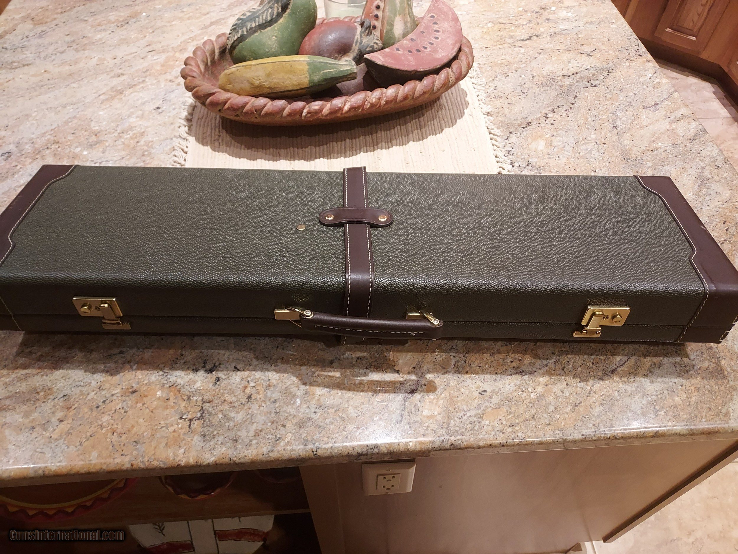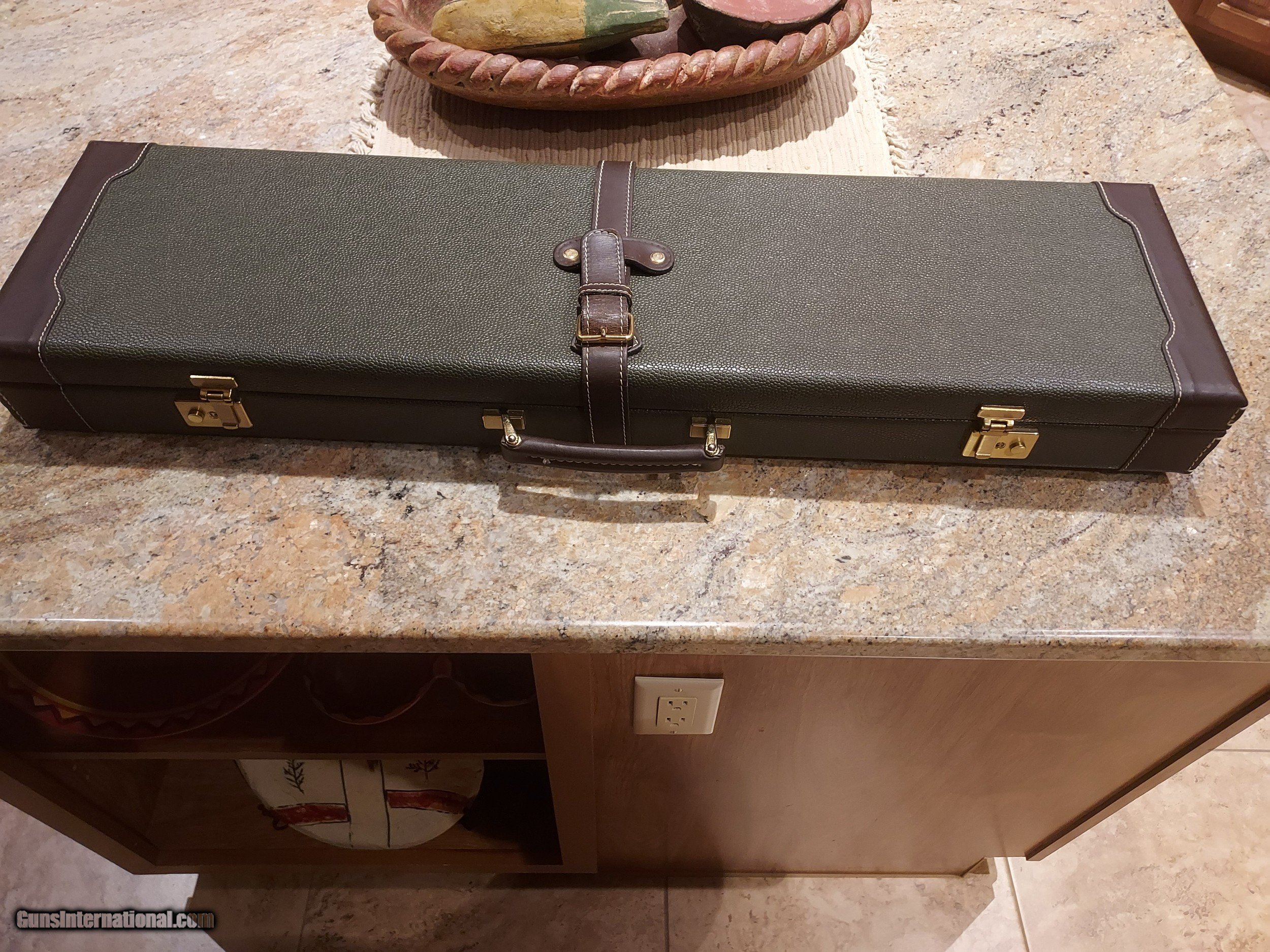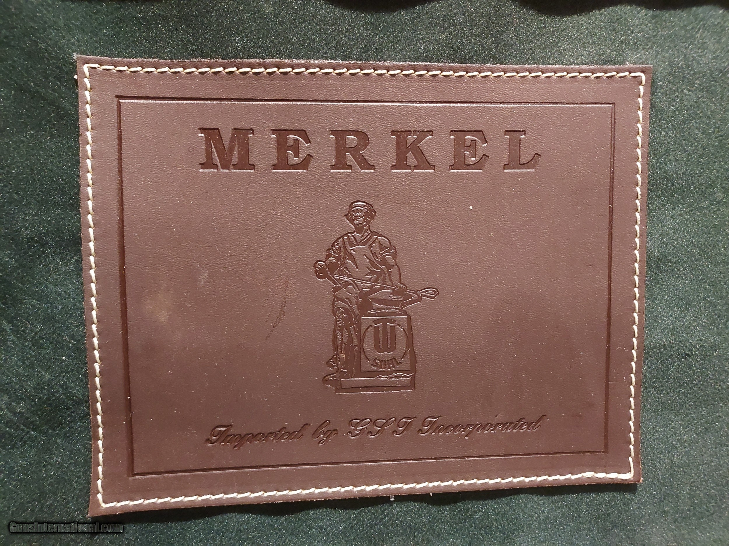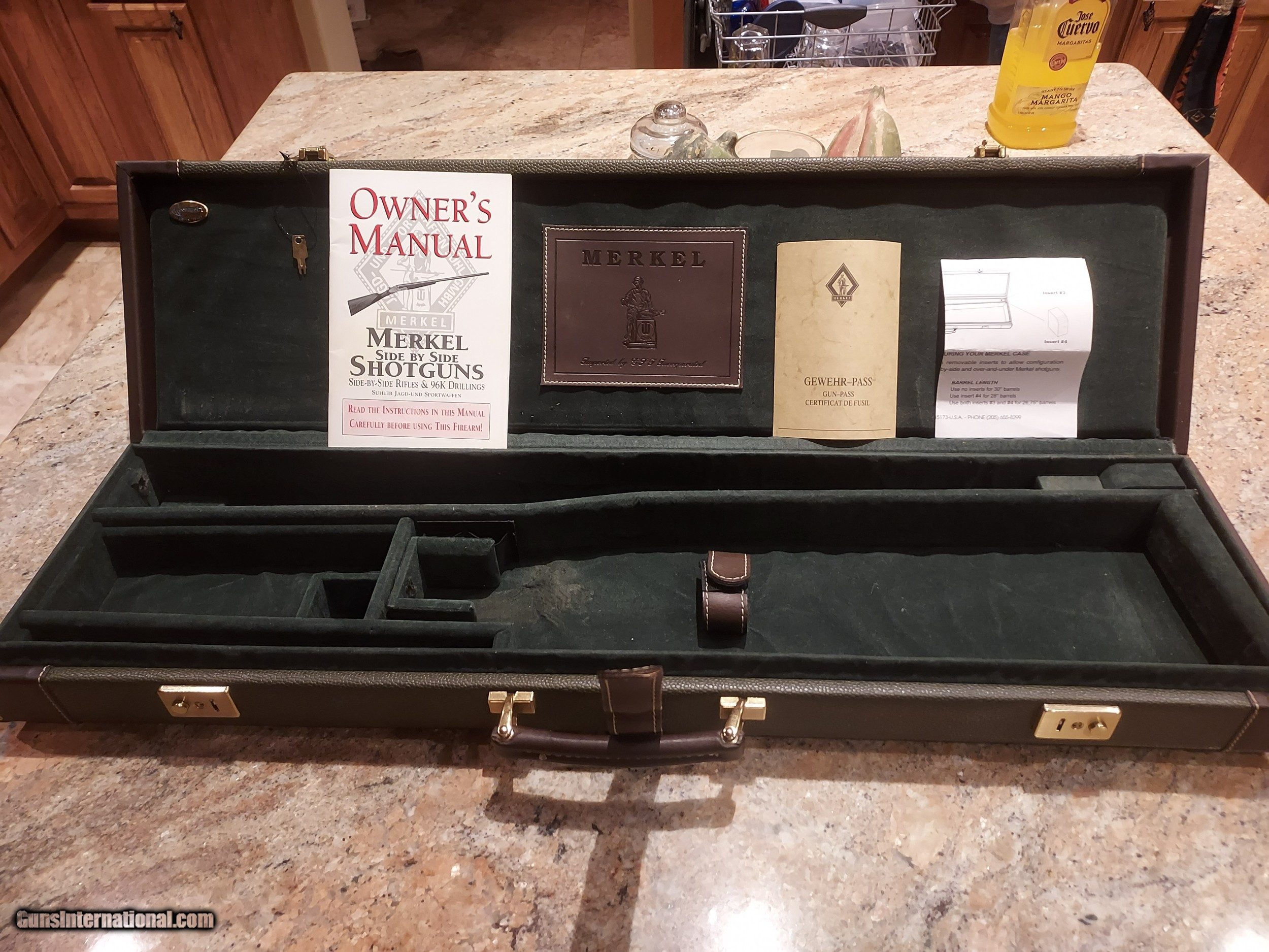 Description: This Merkel marked gun case in very condition showing some internal wear, as shown. It will accomodate up to a 30" barrel. It comes with keys and pamphlets. SOLD |