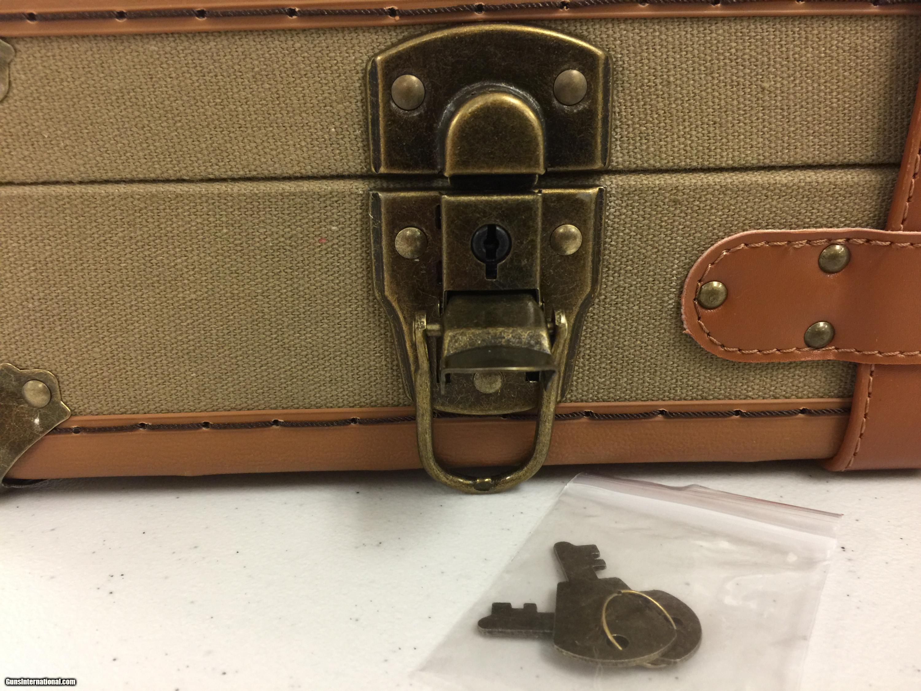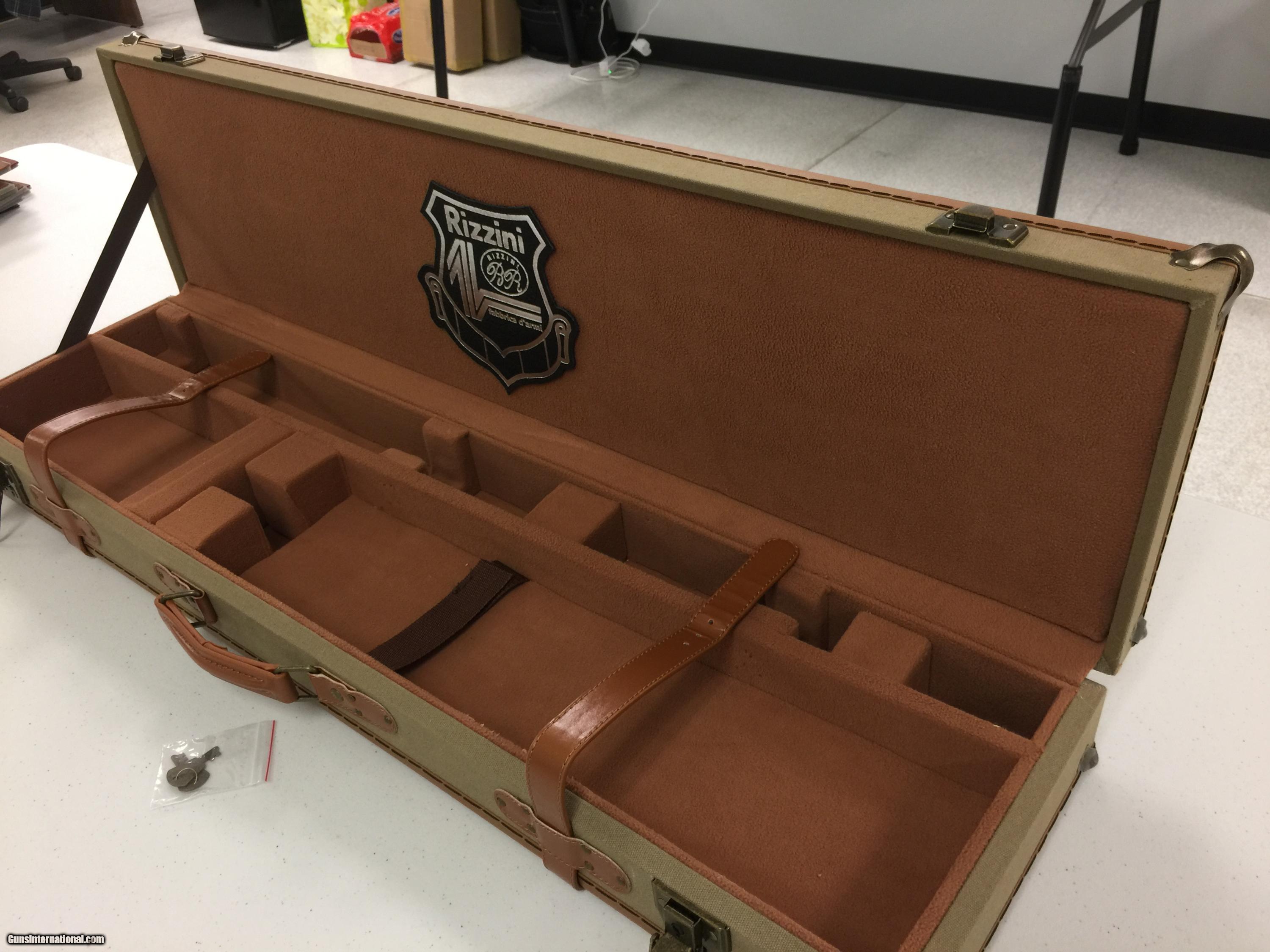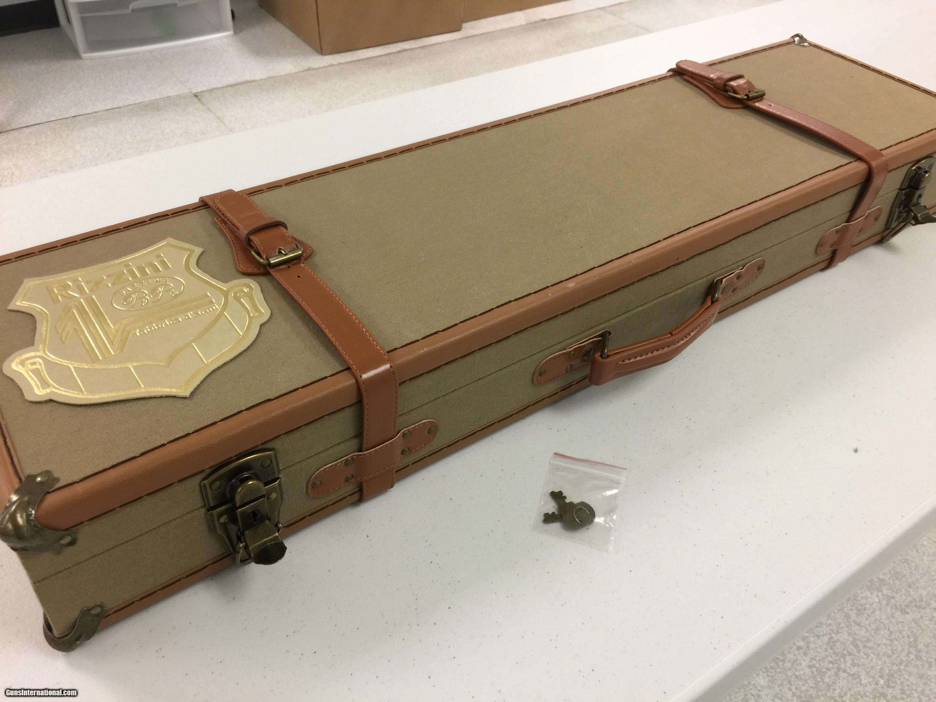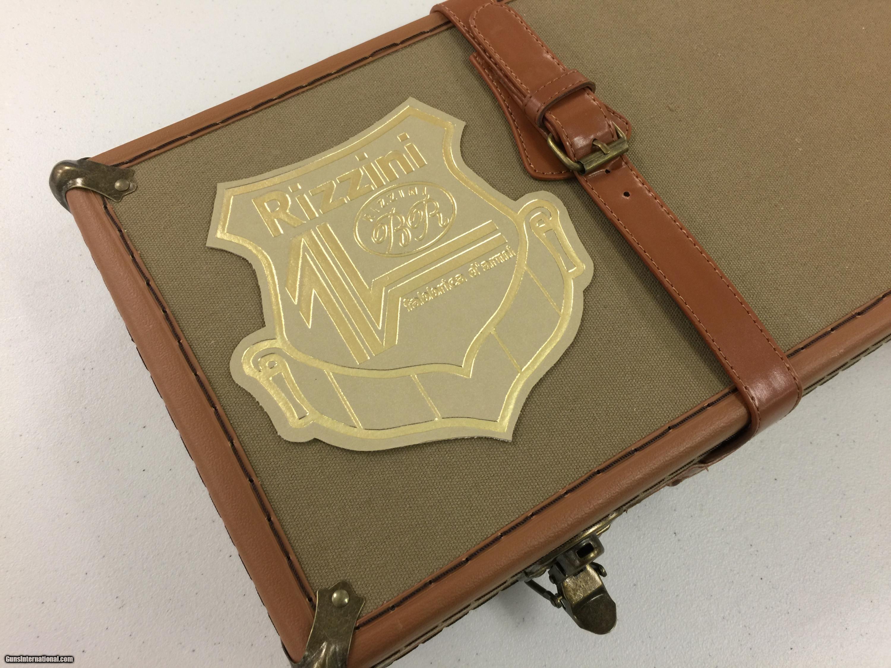 Description: Rizzini Logo 36" Deluxe Canvas & Leather Shotgun Case. This takedown case has never been used. It will hold an over/under or side x side shotgun of maximum barrel length: 34". Compartment for Accessories, Padded and Lined Interior, Brass Hardware with keys. Outer Dimensions of case: 9.5" x 36.0" x 4.4" Interior Dimensions of case: 8.0" x 34.4" x 2.0". Weight of case: 10 lbs. SOLD |