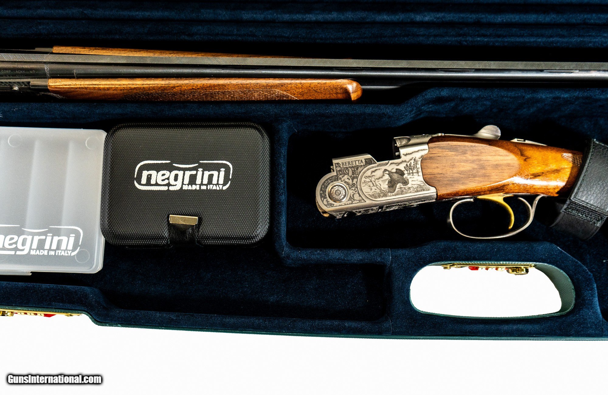 Description: Over and Under or Side by Side Luxury Shotgun Case Luggage The Negrini 1602LR/4704 hard shotgun case is perfect for any takedown Over/Under or Side-by-Side shotgun. This hard shotgun case for sale supports a max barrel length of 32. It features a padded luxury interior with separate compartments for your stock & receiver and barrel & forearm. Plus an accessory compartment for extra tools and choke boxes. Compact and Italian-designed, this hard shotgun case for sale is the perfect solution for any lightweight air travel. Its great for car, club and home! Features LR Luxury rubber trim Fully upholstered and padded interior High-density foam blocks supplied for fitting Airline approved for travel Optional HD-COVER/1602, recommended for air travel! Patented ABS Technology Shotguns to Note: Does not fit Beretta DT11 Shotguns About Negrini Gun Cases Technology Negrini gun cases are designed with an ultra-strong double wall ABS construction. Which consists of a thick thermoformed ABS outer case welded to a rigid thermoformed inner case. Negrini gun cases are fully cushioned and lined with a plush velvet or microfiber. Negrini gun cases patented double wall construction assures maximum shock absorption without breaking. Each gun cases are fitted with hardened steel combination locks and hinges. The locks are recessed to prevent gun case damage on conveyor belts. Negrini gun case interiors are designed with separate compartments for stock and receiver, barrel and forend as well as accessories. All Negrini gun case materials used are certified to not outgas or corrode firearms. Many colors are available. Limited lifetime warranty. International air travel certified Hardened steel combination Locks for security 100% Made in Italy Lightweight air travel without all the extra baggage fees Limited Lifetime Warranty Manufacturer: Negrini Model: 1602LR/4704 Condition: New Barrel Type: Over and Under, Side by Side Rib: Flat Rib Weight: 8.4 lbs Price: $429.00 Contact Seller |