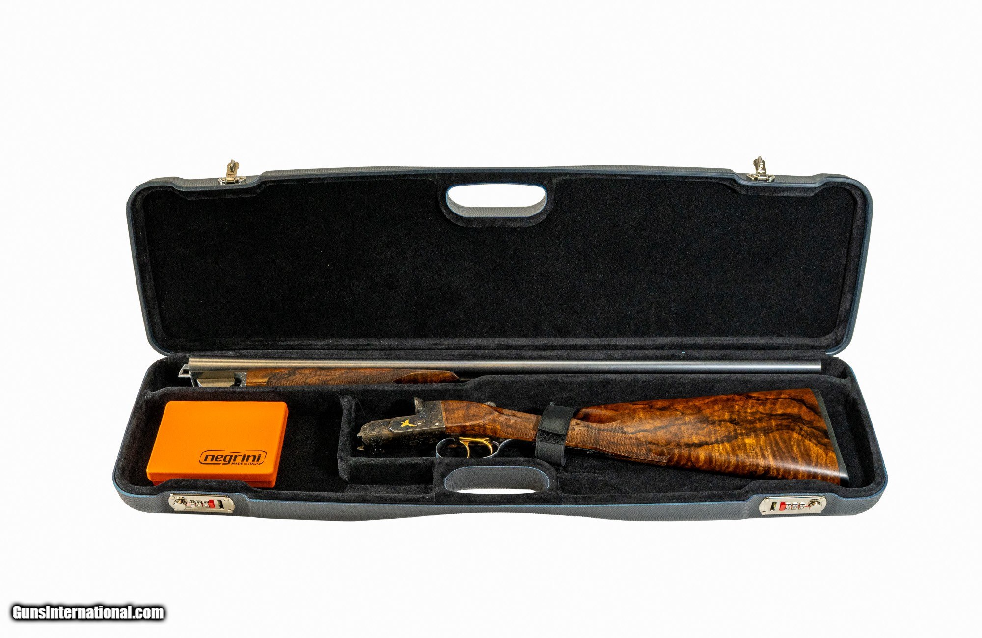 Description: Over and Under or Side by Side Luxury Shotgun Case for Airline Travel 1605LR/5139 The Negrini 1605 Series shotgun hard case is perfect for any takedown Over and Under or Side by Side Shotgun. The OU/side by side shotgun case max barrel length is 28 including extended chokes (barrel channel measures 30.5, padding is needed for transport). The hard shotgun case features a padded luxury interior with separate compartments for your stock & receiver and barrel & forearm. Plus an accessory compartment for extra tools and choke boxes. This compact, Italian-designed SxS shotgun case is the perfect solution for any lightweight air travel and is great for car, club, and home. Shotgun Type: Over Under and Side by Side Shotguns Barrel Length: Barrels up to 28 + extended chokes Color: Navy Blue ABS exterior/Black Velvet Interior Case Trim: LR Rubber trim with a full velvet interior Hand Finished and made by Negrini of Italy About Negrini Gun Cases Negrini gun cases are designed with an ultra-strong double-wall ABS construction. Which consists of a thick thermoformed ABS outer case welded to a rigid thermoformed inner case. Negrini gun cases are fully cushioned and lined with plush velvet or microfiber. Negrini gun cases' patented double-wall construction assures maximum shock absorption without breaking. Each gun case is fitted with hardened steel combination locks and hinges. The locks are recessed to prevent gun case damage on conveyor belts. Negrini gun case interiors are designed with separate compartments for stock and receiver, barrel and forend as well as accessories. All Negrini gun case materials used are certified to not outgas or corrode firearms. Many colors are available. Limited lifetime warranty. International air travel certified Hardened steel combination Locks for security 100% Made in Italy Lightweight air travel without all the extra baggage fees Limited Lifetime Warranty Manufacturer: Negrini Model: 1605LR/5139 Condition: New Barrel Type: Over and Under, Side Rib: Flat Rib Weight: 7.75 lbs Price: $385.00 Contact Seller |