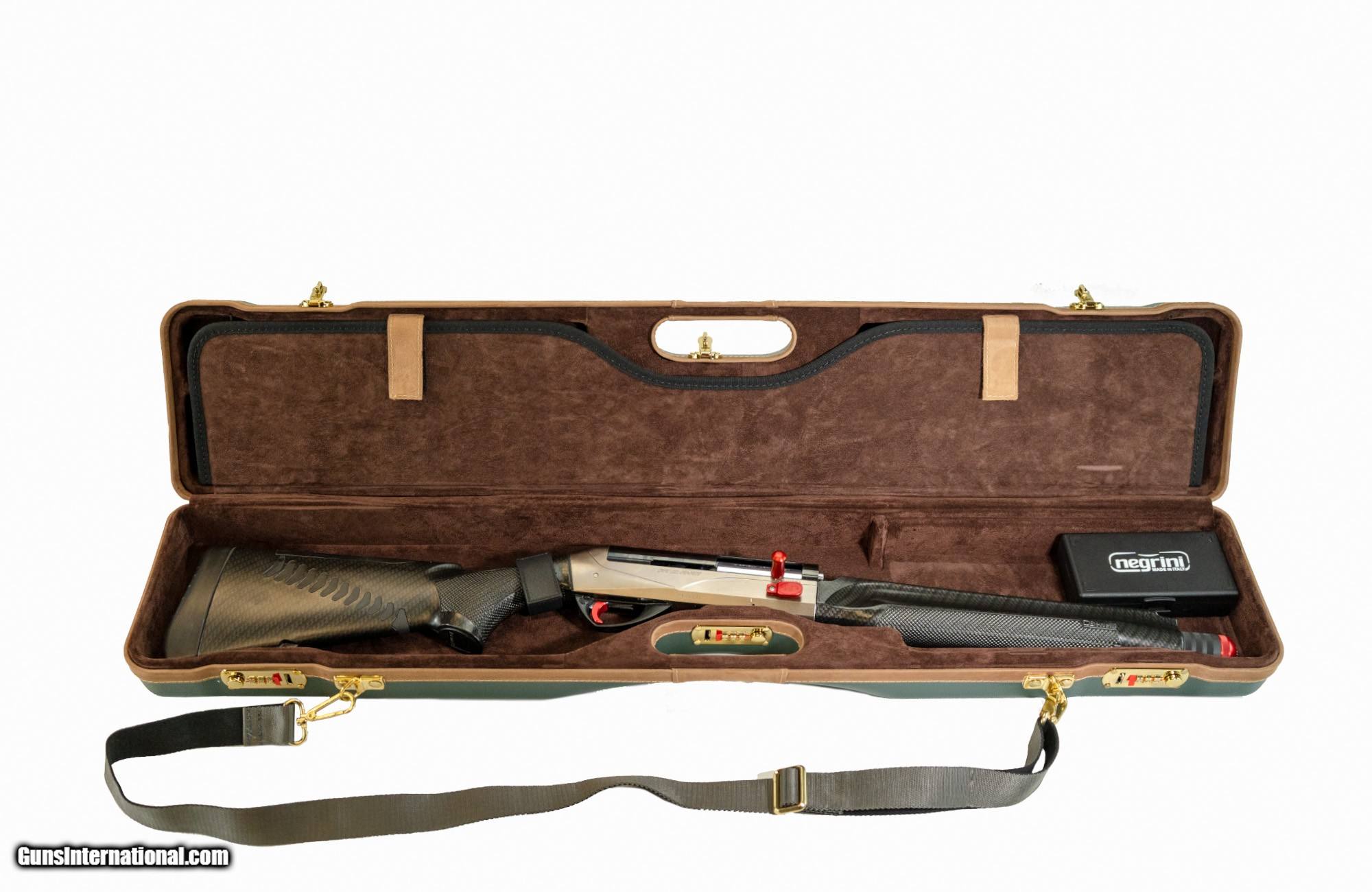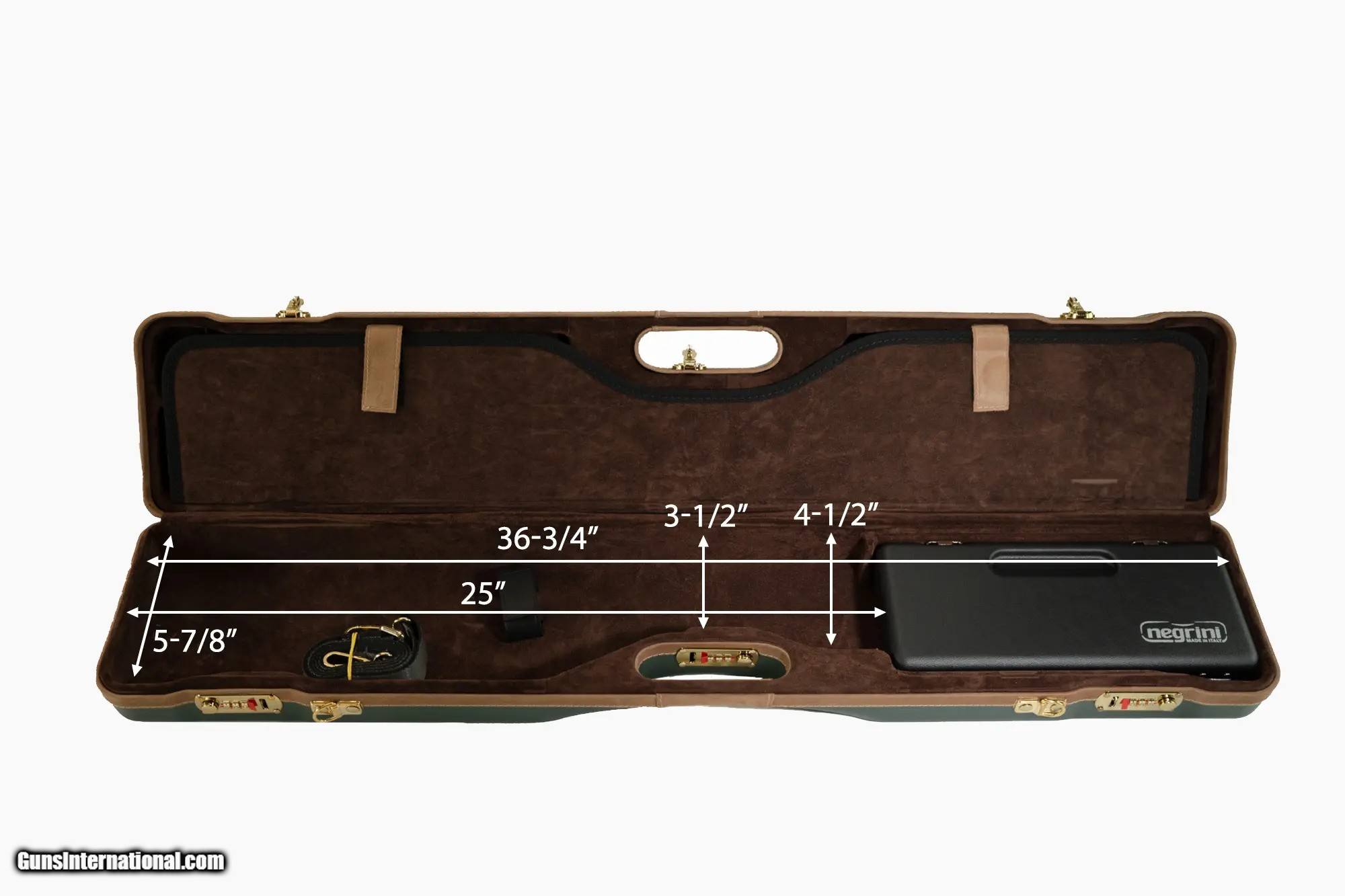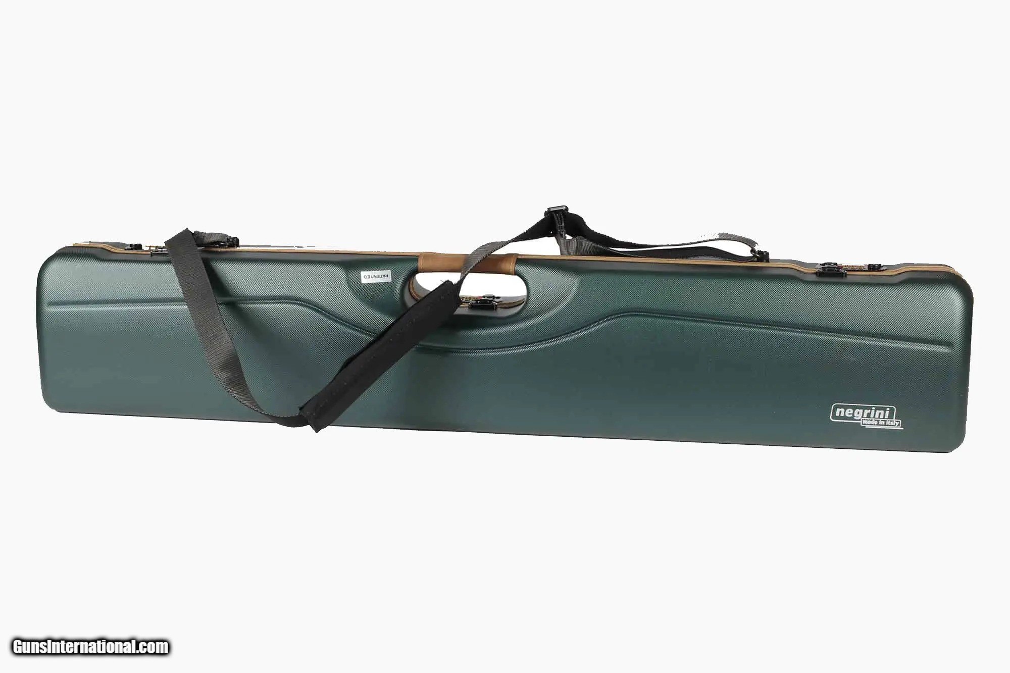 Description: Negrini Deluxe OU/SXS/Auto/Pump UNICASE Takedown Travel Shotgun Case 34' - 16406LX-UNI/5591 Based on the popular 16405 Uplander Shotgun case by Negrini of Italy. The all-new 16406LX UNICASE is the next generation of the one-size-fits-all travel shotgun case. The sleek design of the new UNICASE Travel shotgun case will appeal to many shotgun shooters. Tipping the scales at 7.80 lbs, this new travel shotgun case is lighter and more compact. The new UNICASE features the Patented Quick Detach Sling for easy hands-free use with a new interior layout. The new interior stores the stock on the left side of the case which enables Autoloader bolts to face up. The new case fits all shotgun types from O/U, SxS, Autoloader, and Pump shotguns. Install the ABS choke box and the case will fit over-under and side-by-side shotguns. The top side of the case fits barrels up to 34' with smaller compartments for accessories and sling storage. The UNICASE with the LX trim is finished with a hand-upholstered luxury interior and Italian leather trim and handle. Manufactured with rigid double-wall ABS technology, this travel shotgun case opens 180° for easy access and is secured with three TSA-accepted steel combination locks for security. The NEW compact and ultralight UNICASE shotgun case is suitable for lightweight air travel or car, club, and home storage. Features Fits Over/Under, SXS, Autoloader or Pump shotguns LX - Deluxe Leather Trim & Handle Patented Quick Detach Padded Sling 3 TSA-accepted combination locks Weight: 8.00 lbs. w/ strap About Negrini Gun Cases Negrini gun cases are designed with an ultra-strong double-wall ABS construction. Which consists of a thick thermoformed ABS outer case welded to a rigid thermoformed inner case. Negrini gun cases are fully cushioned and lined with plush velvet or microfiber. Negrini gun cases' patented double wall construction assures maximum shock absorption without breaking. Each gun cases are fitted with hardened steel combination locks and hinges. The locks are recessed to prevent gun case damage on conveyor belts. Negrini gun case interiors are designed with separate compartments for stock and receiver, barrel and forend as well as accessories. All Negrini gun case materials used are certified to not outgas or corrode firearms. Many colors are available. Limited lifetime warranty. International air travel certified Hardened steel combination Locks for security 100% Made in Italy Lightweight air travel without all the extra baggage fees Limited Lifetime Warranty Manufacturer: Negrini Model: 16406LX-UNI/5591 Condition: New Barrel Type: Over and Under, Semi-Auto or Pump, Side by Side Rib: Flat Rib, Mid-Rib, Adjustable High Rib Weight: 7.55 lbs Price: $605.00 Contact Seller |