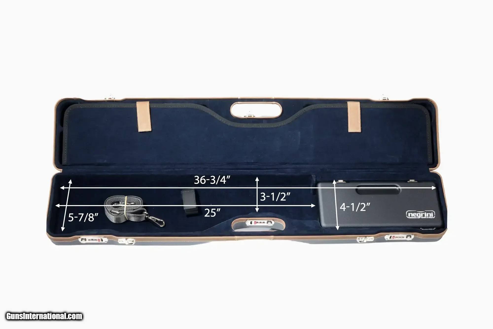 Description: Negrini Deluxe OU/SXS/Auto/Pump UNICASE Takedown Travel Shotgun Case 34' - 16406LX-UNI/7060 Based on the popular 16405 Uplander Shotgun case by Negrini of Italy. The all-new 16406LX UNICASE is the next generation of the one-size-fits-all travel shotgun case. The sleek design of the new UNICASE Travel shotgun case will appeal to many shotgun shooters. Tipping the scales at 7.80 lbs, this new travel shotgun case is lighter and more compact. The new UNICASE features the Patented Quick Detach Sling for easy hands-free use with a new interior layout. The new interior stores the stock on the left side of the case which enables Autoloader bolts to face up. The new case fits all shotgun types from O/U, SxS, Autoloader, and Pump shotguns. Install the ABS choke box and the case will fit over-under and side-by-side shotguns. The top side of the case fits barrels up to 34' with smaller compartments for accessories and sling storage. The UNICASE with the LX trim is finished with a hand-upholstered luxury interior and Italian leather trim and handle. Manufactured with rigid double-wall ABS technology, this travel shotgun case opens 180° for easy access and is secured with three TSA-accepted steel combination locks for security. The NEW compact and ultralight UNICASE shotgun case is suitable for lightweight air travel or car, club, and home storage. Features Fits Over/Under, SXS, Autoloader or Pump shotguns LX - Deluxe Leather Trim & Handle Patented Quick Detach Padded Sling 3 TSA-accepted combination locks Weight: 8.00 lbs. w/ strap About Negrini Gun Cases Negrini gun cases are designed with an ultra-strong double-wall ABS construction. Which consists of a thick thermoformed ABS outer case welded to a rigid thermoformed inner case. Negrini gun cases are fully cushioned and lined with plush velvet or microfiber. Negrini gun cases' patented double wall construction assures maximum shock absorption without breaking. Each gun cases are fitted with hardened steel combination locks and hinges. The locks are recessed to prevent gun case damage on conveyor belts. Negrini gun case interiors are designed with separate compartments for stock and receiver, barrel and forend as well as accessories. All Negrini gun case materials used are certified to not outgas or corrode firearms. Many colors are available. Limited lifetime warranty. International air travel certified Hardened steel combination Locks for security 100% Made in Italy Lightweight air travel without all the extra baggage fees Limited Lifetime Warranty Manufacturer: Negrini Model: 16406LX-UNI/7060 Condition: New Barrel Type: Over and Under, Semi Rib: Flat Rib, Mid-Rib, A Weight: 7.55 lbs Price: $605.00 Contact Seller |