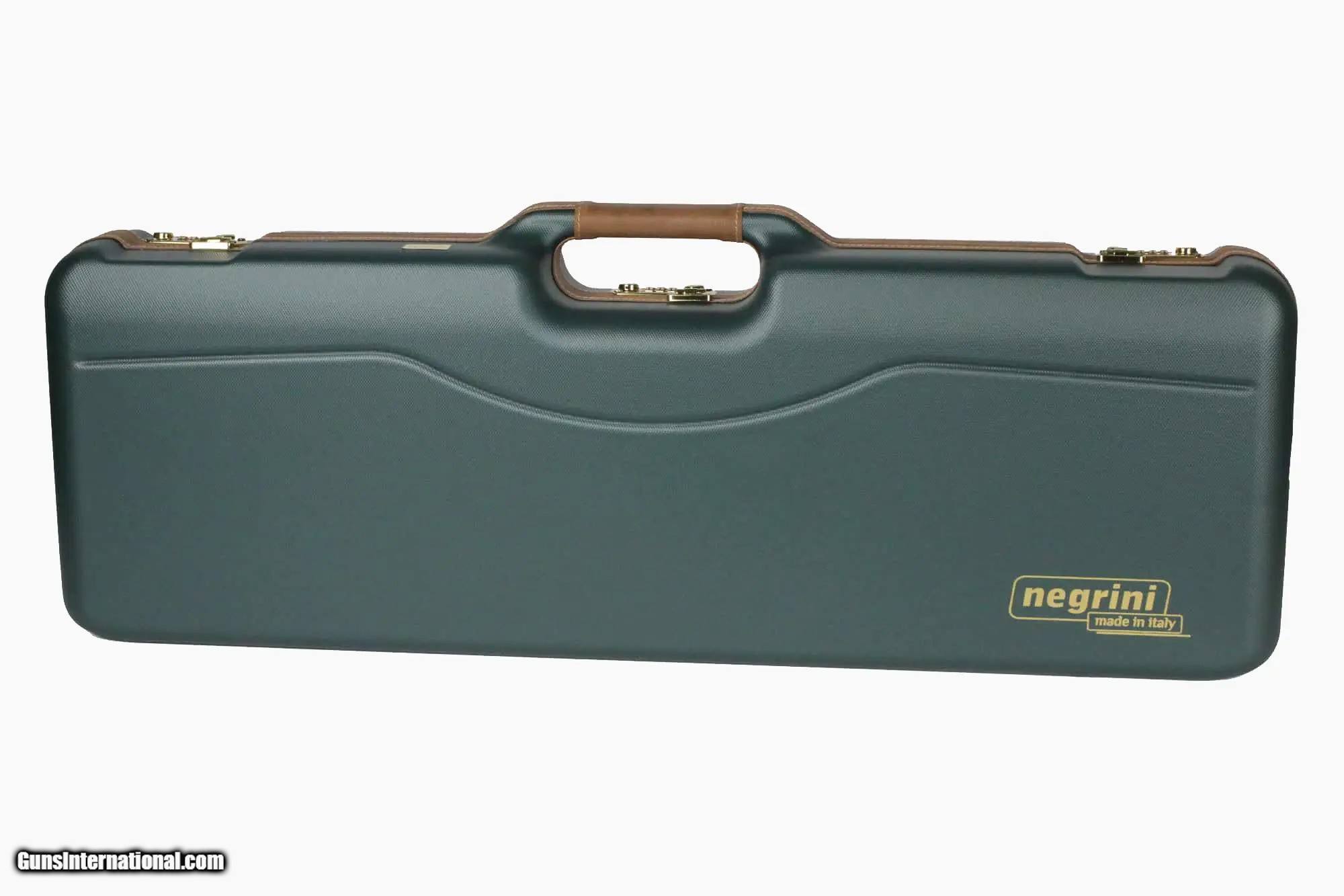 Description: Negrini Two OU/SxS Deluxe Shotgun Hunting Skeet Travel Case - 1670LX/4772 The Negrini 1670 Series two shotgun hard case is perfect for any O/U or SxS shotgun with barrels up to 28' + ext chokes. The 1670 Series gun case features a padded luxury interior with separate compartments for your stock & receiver, barrel & forend and accessories. A padded divider separates the two shotgun compartments. This gun case is perfect for air travel, car, club and home. LX - Leather handle and leather trim 100% Italian leather About Negrini Gun Cases Negrini gun cases are designed with an ultra-strong double wall ABS construction. Which consists of a thick thermoformed ABS outer case welded to a rigid thermoformed inner case. Negrini gun cases are fully cushioned and lined with a plush velvet or microfiber. Negrini gun cases patented double-wall construction assures maximum shock absorption without breaking. Each gun cases are fitted with hardened steel combination locks and hinges. The locks are recessed to prevent gun case damage on conveyor belts. Negrini gun case interiors are designed with separate compartments for stock and receiver, barrel and forearm as well as accessories. All Negrini gun case materials used are certified to not outgas or corrode firearms. Many colors are available. Limited lifetime warranty. International air travel certified Hardened steel combination Locks for security 100% Made in Italy Lightweight air travel without all the extra baggage fees Limited Lifetime Warranty Manufacturer: Negrini Model: 1670LX/4772 Condition: New Barrel Type: Over and Under, Side Rib: Flat Rib Weight: 10.40 lbs Price: $625.00 Contact Seller |