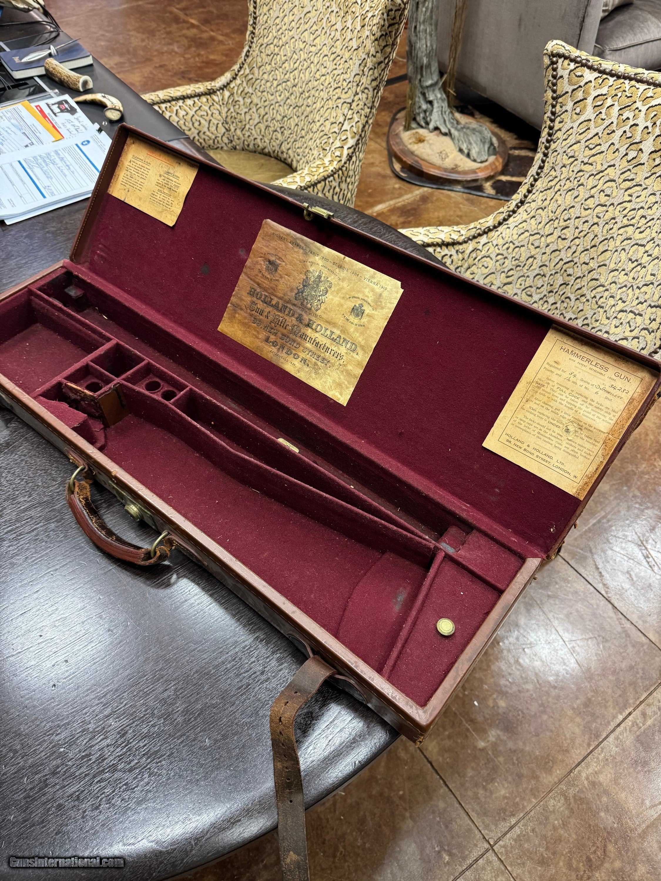 Description: Vintage, 12 Gauge, Original Holland & Holland Side x Side Gun Case, will fit 28 inch barrels and/or 30 inch with removal of blocking. Leave it original or refurbish. Solid working condition for its age Shotgun Gauge: 12 Gauge Price: $450.00 Contact Seller |
