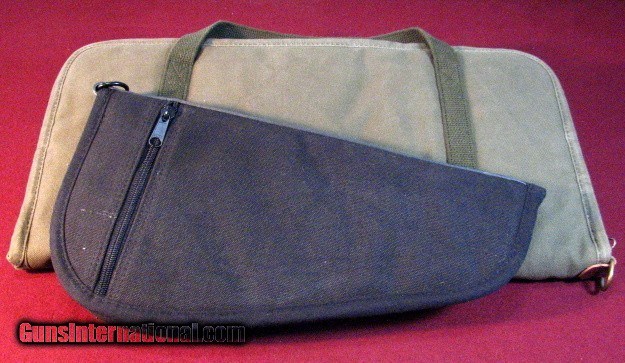 Description: Two Boyt pistol cases. Smaller case is 14" with zippered magazine pouch on both sides. Larger case is 21"x10" Both with quilted cloth interiors. Excellent condition. SOLD |