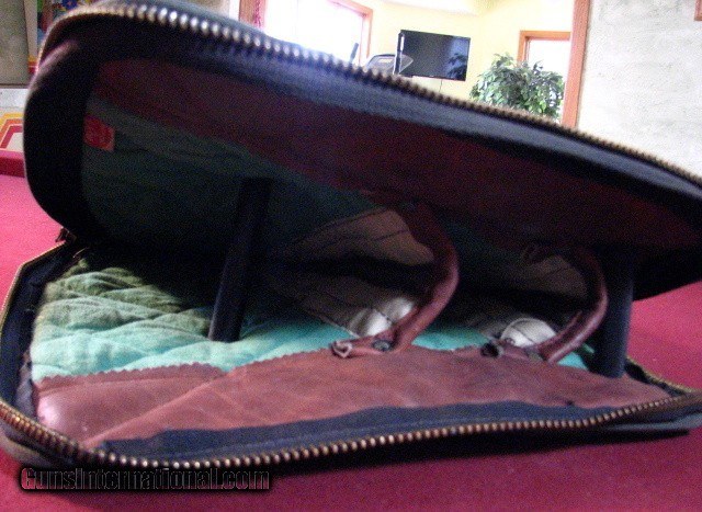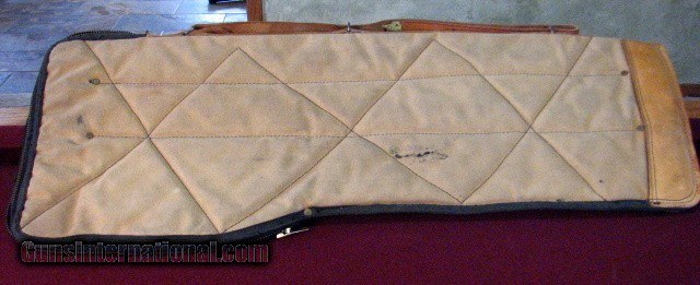 Description: Boyt two barrel takedown LOM style canvas case. Measures 35"x 14" overall. Will accomadate barrels to 32" Quilted cloth interior. some scuffs and staining but very sevicable. SOLD |