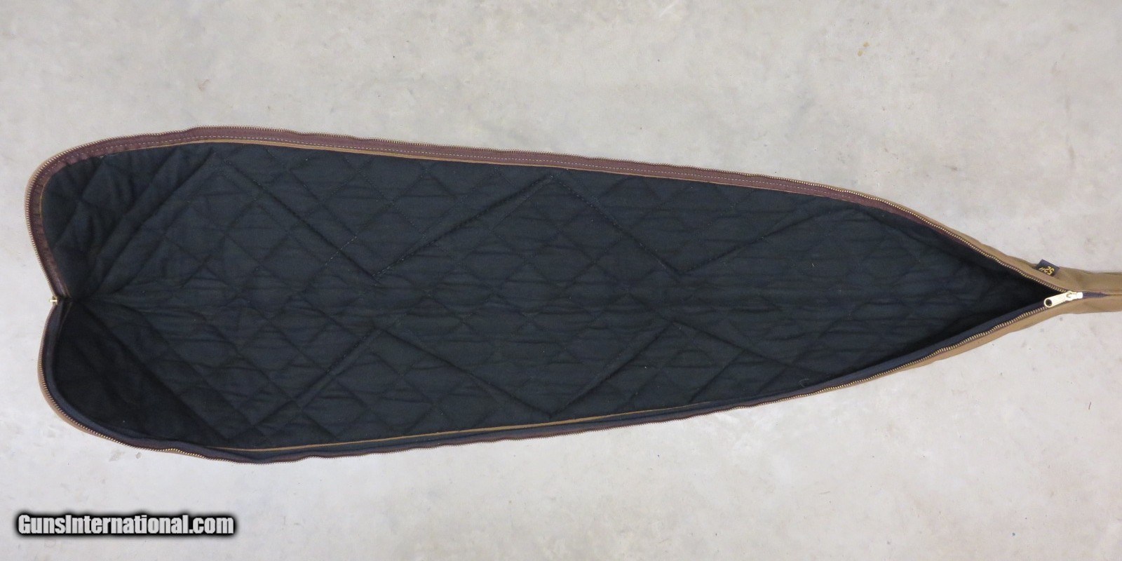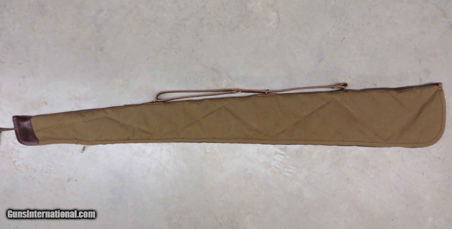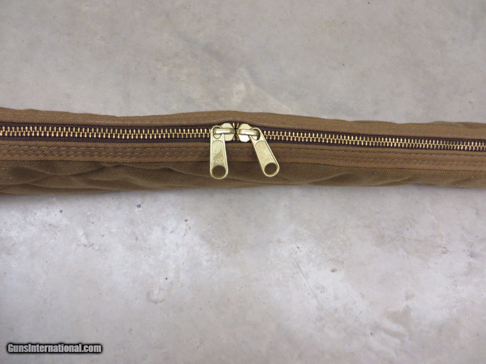 Description: Heavy canvas case with leather binding and sling, heavy duty two way brass zipper, and quilted flannel lining. Holds shotgun up to 52 inches long. Excellent used condition. SOLD |