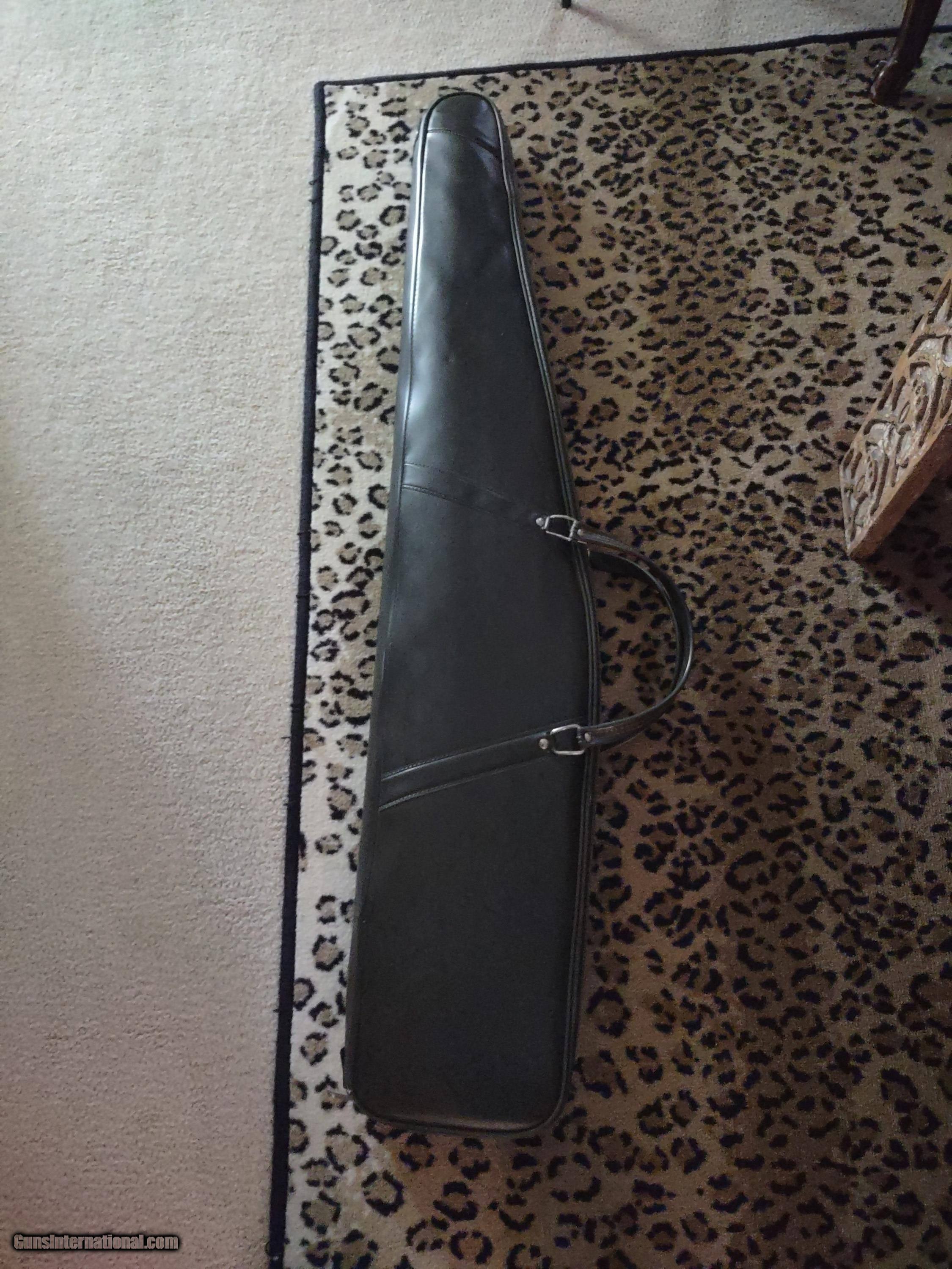 Description: FEATHERLIGHT MODEL 646 M, extra nice leather rifle carry case in dark green, outside length of 47", padded thickness of 3 11/16", circumference at handle of 22 1/2" and width at handle of 9 3/4" for rifle with or without scope. The case is all original with egg-crate , soft foam rubber lining, heavy-duty PULLMATIC zipper and strong , well built carry handles. The overall condition is excellent. I do not know what year it was made...made to protect your valuable rifle. The price is $175 including shipping to your home or workplace. Call or text me at 318-780-4242 if you are interested. SOLD |