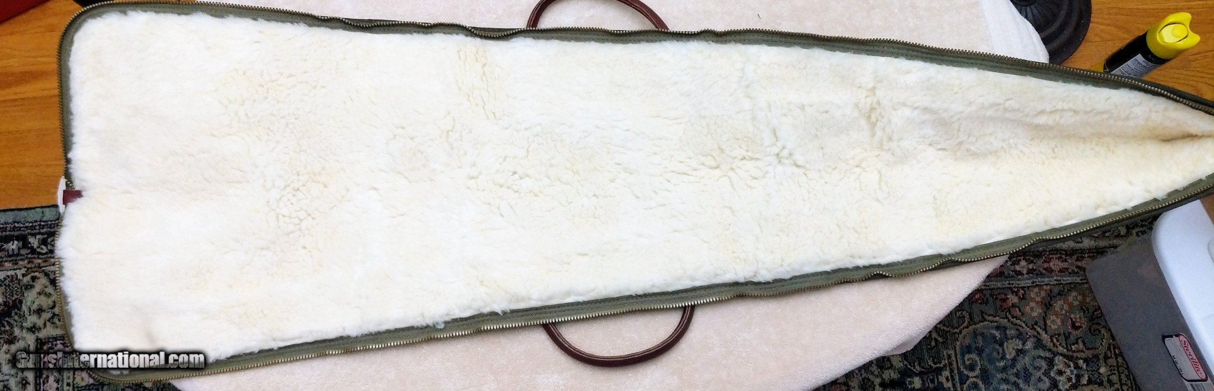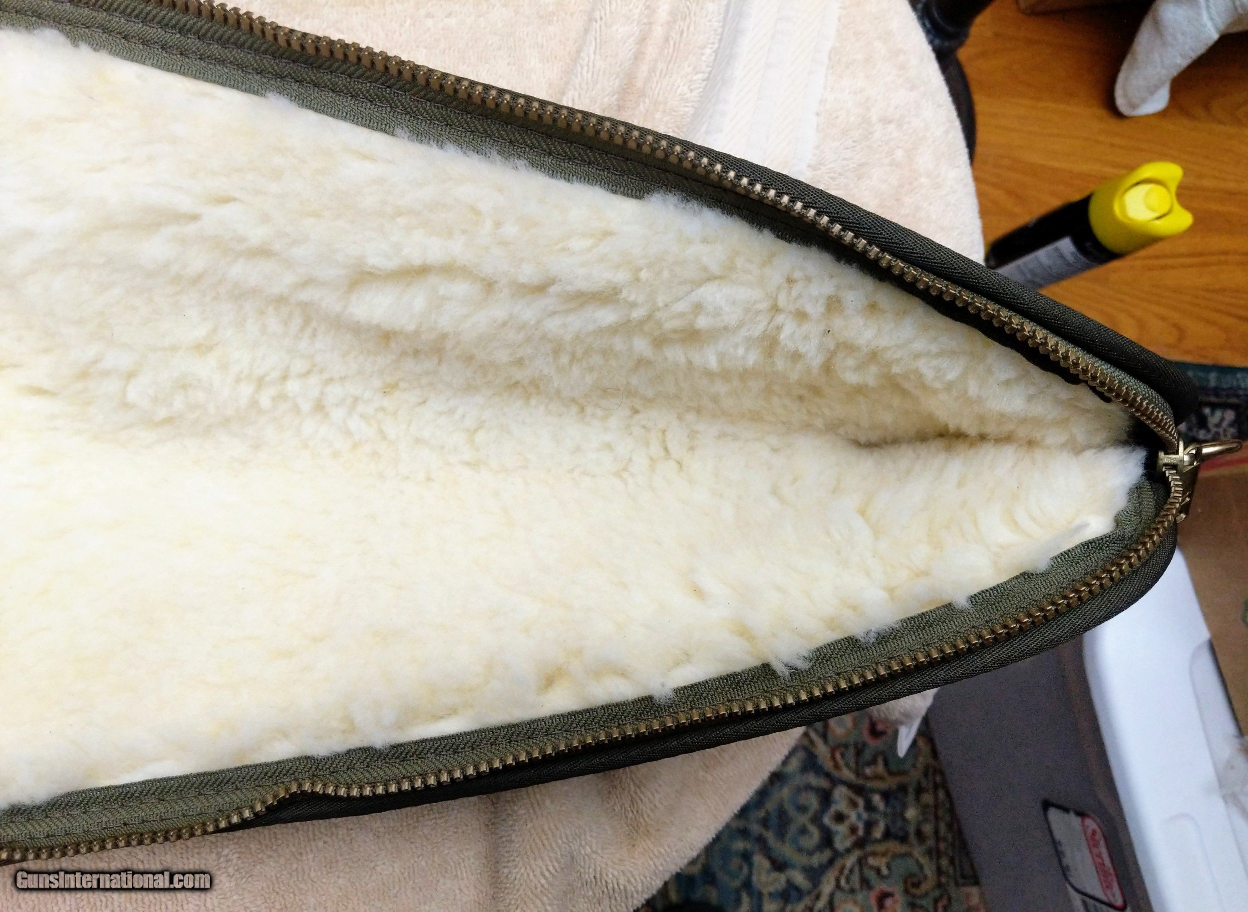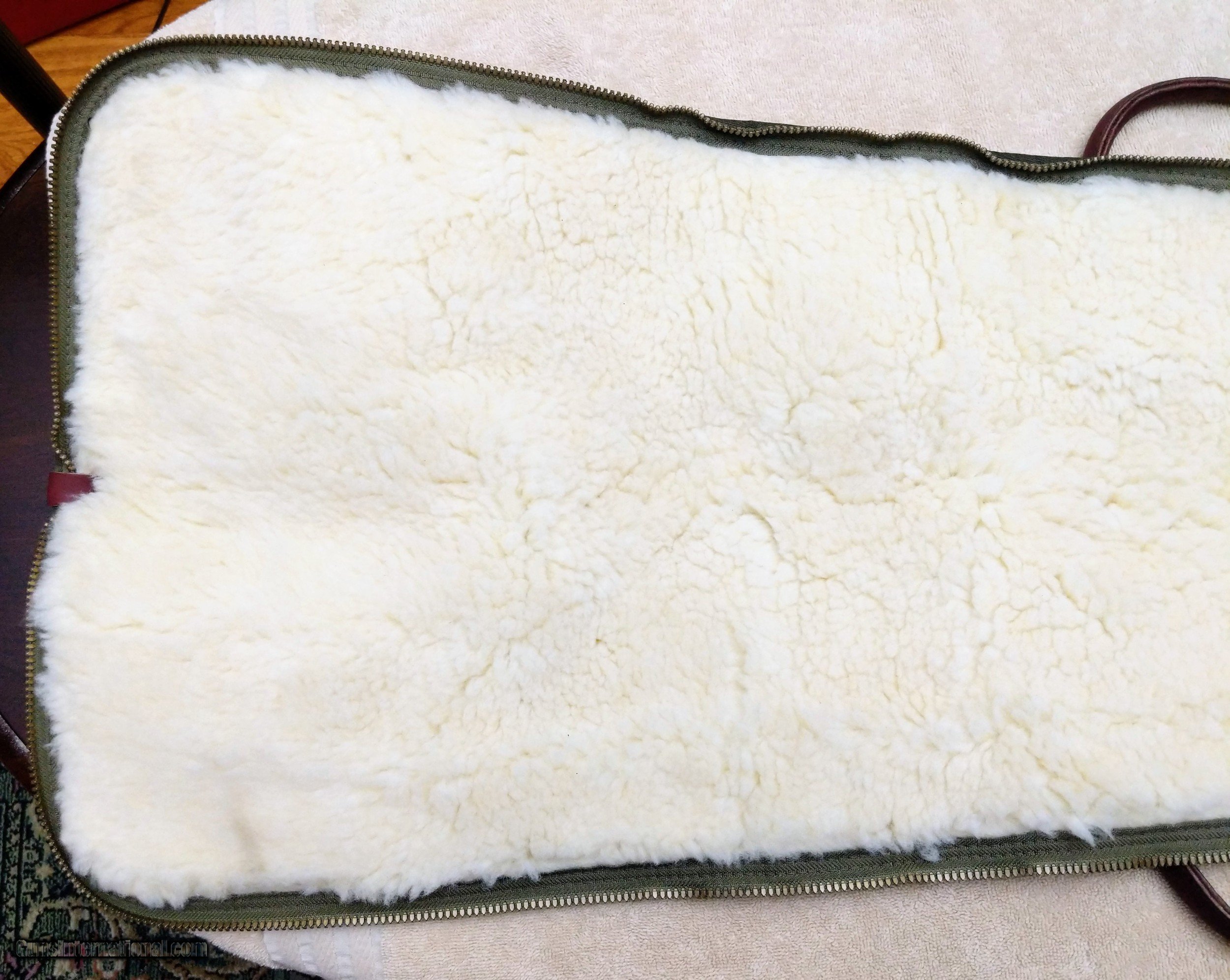 Description: Vintage Tidewater Specialties high quality sheepskin lined gun case. There are some small areas of tarnish/light pitting on metal but does not affect mechanics. 52" and accomodates 32" w/extended chokes O/U perfectly. Used condition with light handling marks. Sheepskin lining is very plush and like new. Very sturdy and well made. Nylon zippers. Accessories pouch. Free shipping No CC fees SOLD |