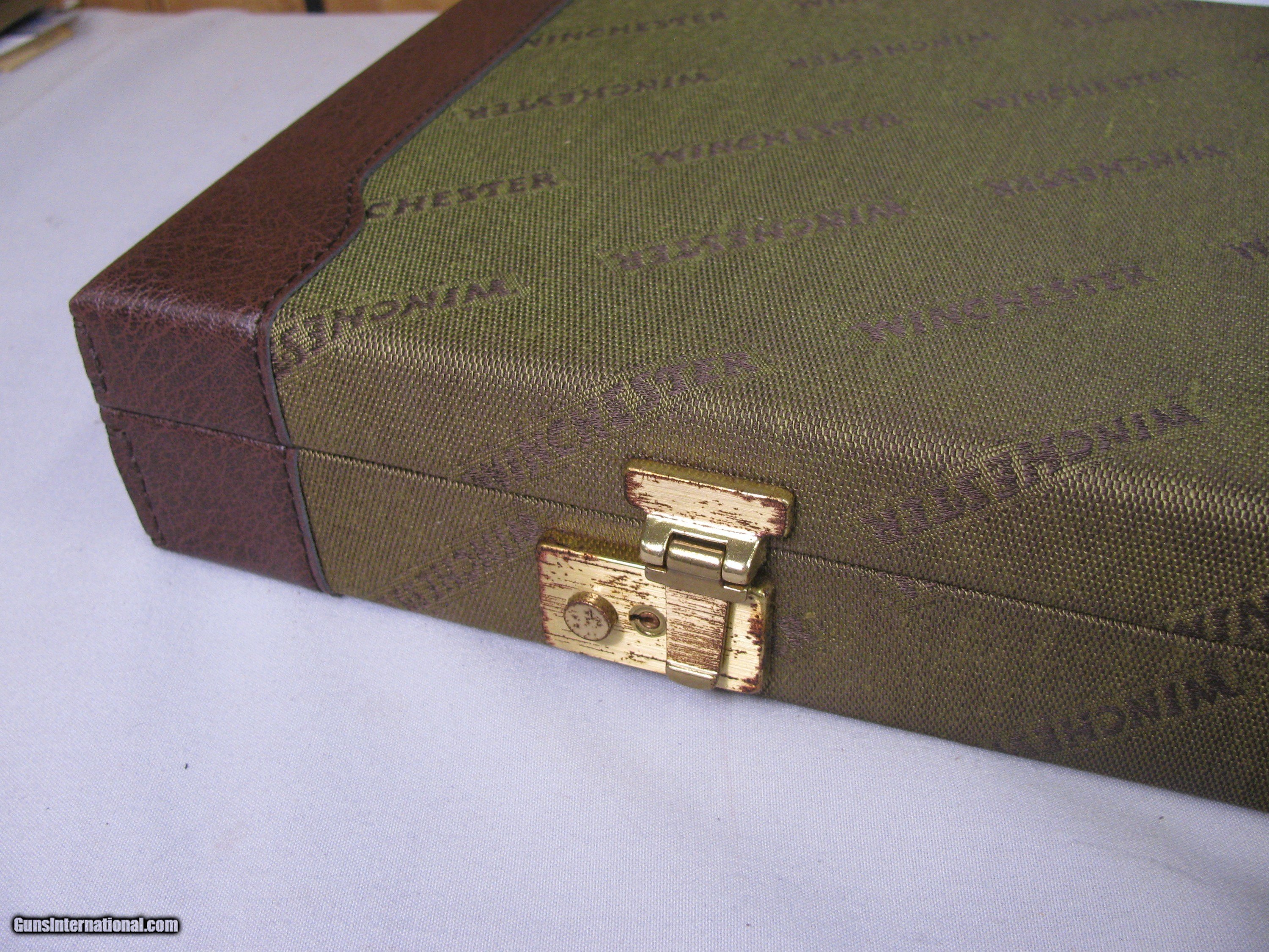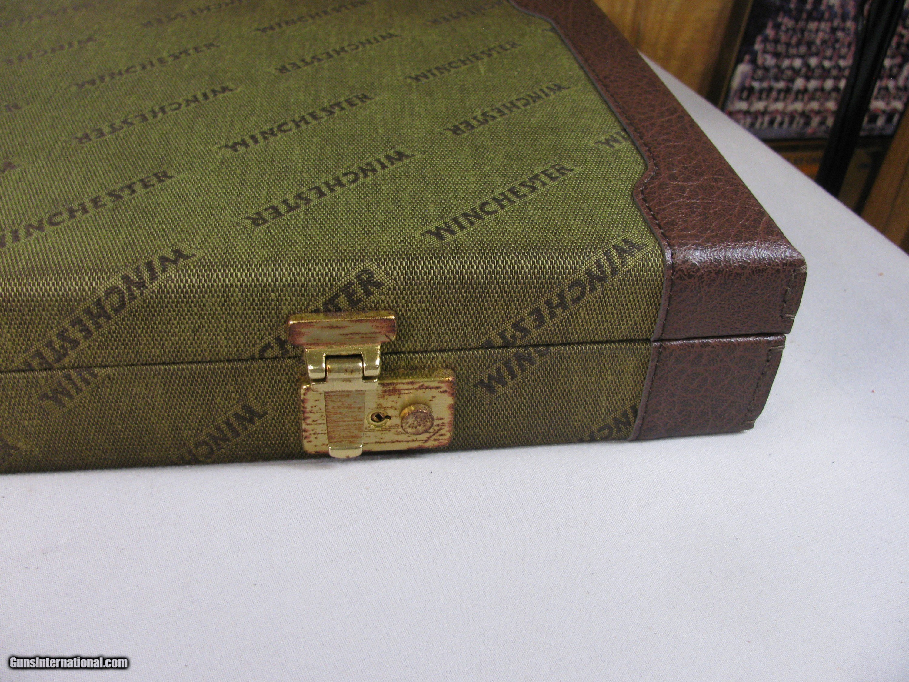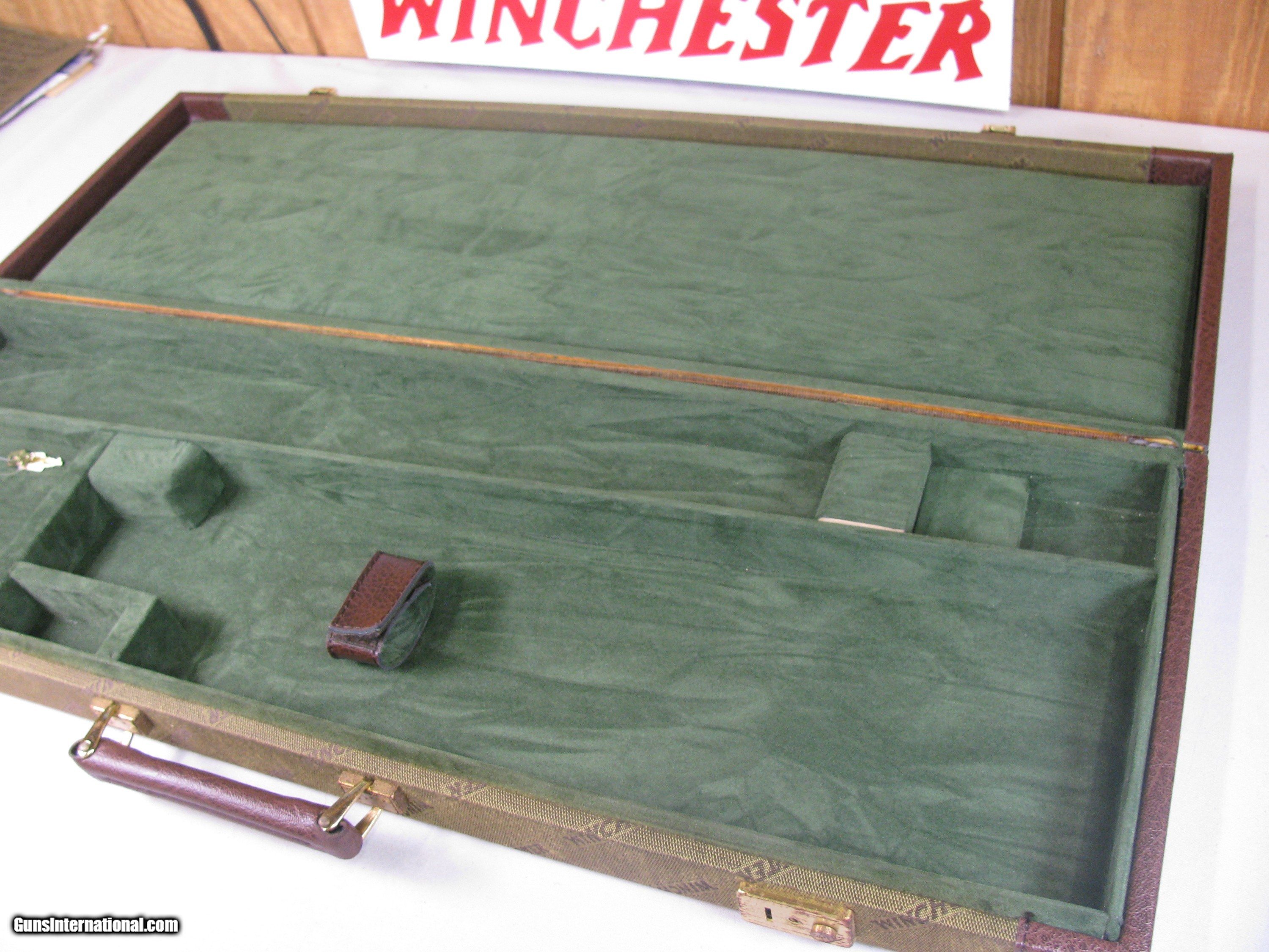 Description: 8830 Winchester Green Hard trunk style shotgun case. NOS, Green Interior, Has Blocks and Keys, Will take up to 29” Barrels SOLD |