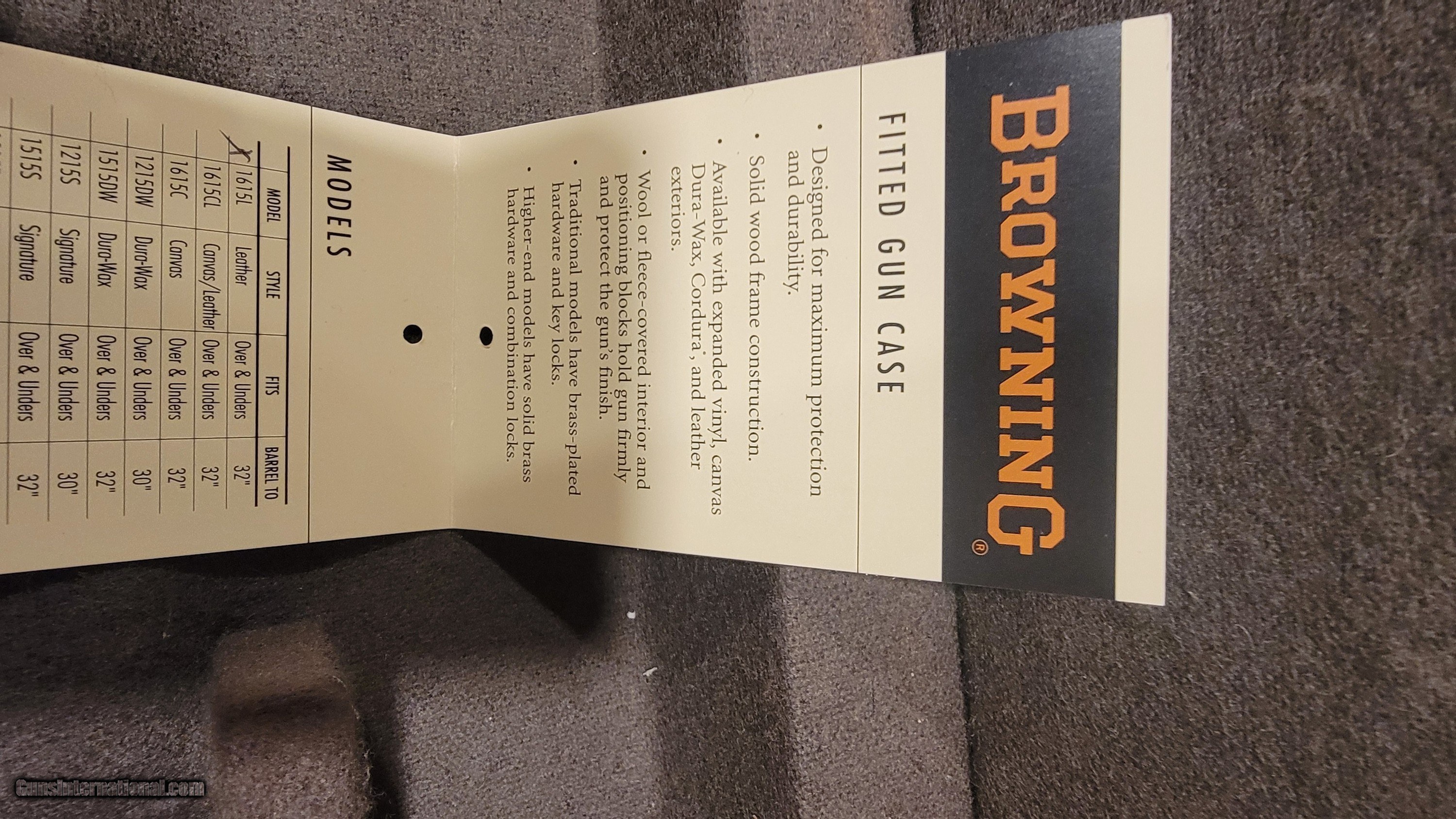 Description: Browning Custom Shop Leather Wrap Superposed Shotgun Hardcase. Solid Wood frame. Wool lined. Solid brass hardware. Holds up to 32" barrels 2 available $40 shipping ea SOLD |