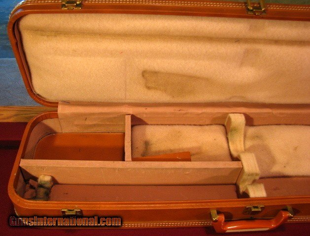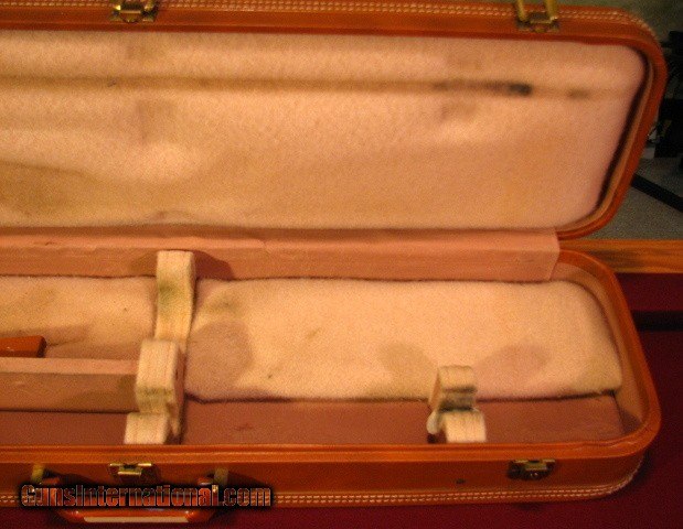 Description: Browning Hartmann Superposed Case for barrels up to 30". Overall good condition but missing small sliver from underside handle insert as pictured. No keys. SOLD |
