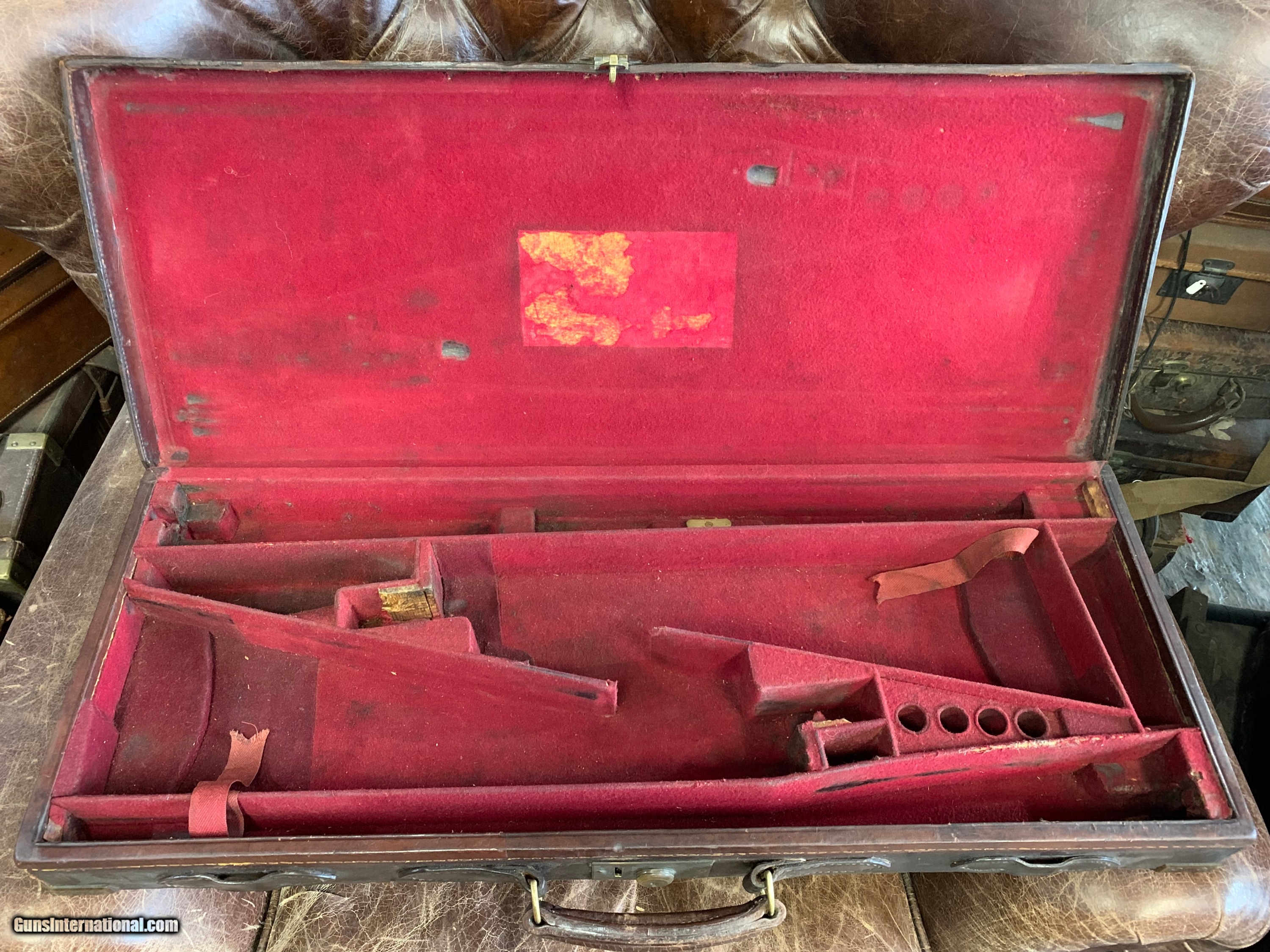 Description: Vintage Cases - This case is a very good vintage one with all leather exterior and brass fixtures. It\'s currently set up for 28" barrels and 28" barrels would be the maximum, though you could arrange it for shorter ones. The case is set up for 15 3/4" length of pull and could be made shorter. We can also provide the maker\'s label of your choice for an additional $50.00. *All cases are sold as is, no returns (unless we miss something significant), because our time is limited, and prices are fair. Flat rate shipping is $50.00 anywhere in the lower 48 states. *** Note: To see this gun with high resolution photos and a zoom-in feature, go to the vintagedoubles main site and search for the gun ID: 5875 or browse the main site to see our full gun collection. SOLD Manufacturer: English Pair Case, rare 16 gauge Model: None Ejectors: No Barrel Type: Damascus Gauge Info: Other |