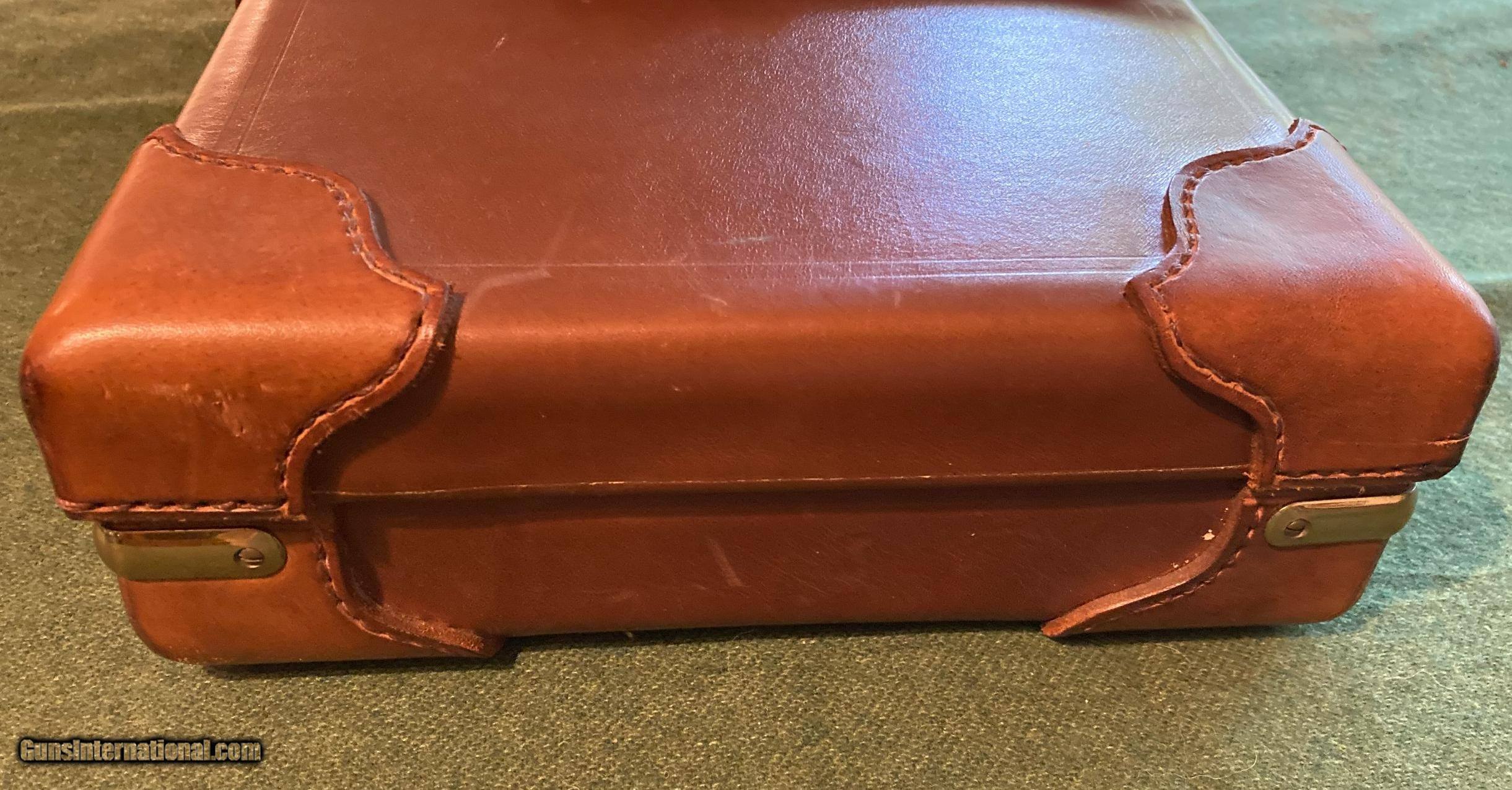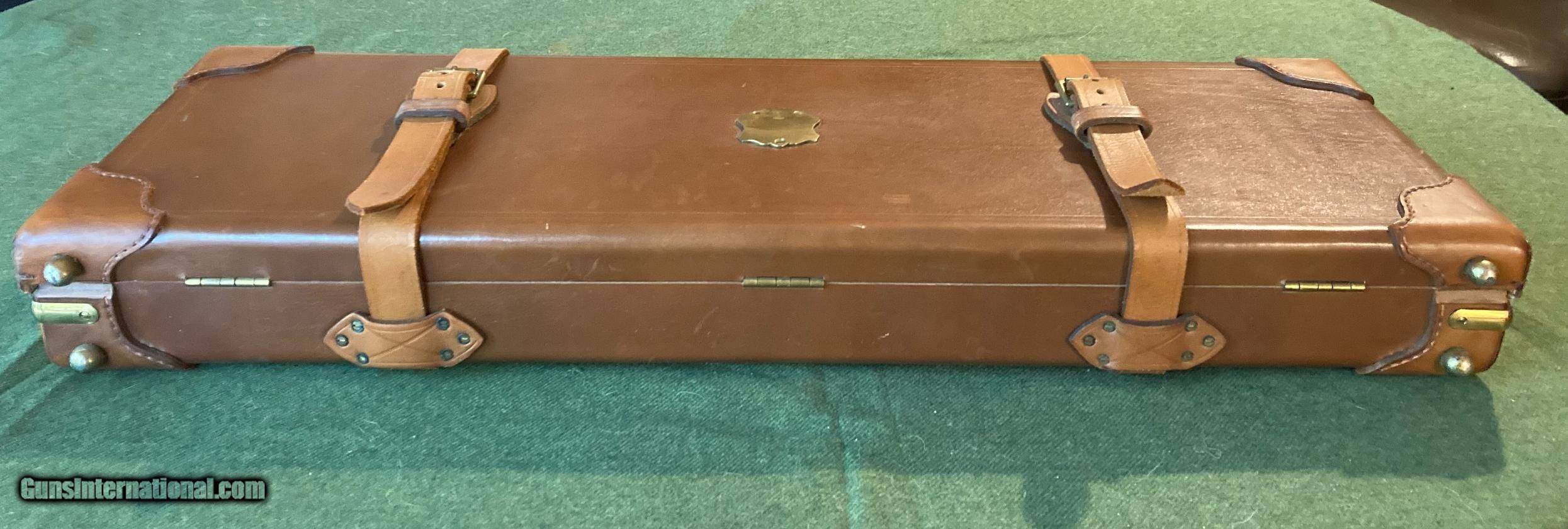 Description: This is likely a first year production case when Marvin opened shop in Springfield MO. It was built for a short barreled small gauge double gun. The interior is in new condition and has a James Dixon & Sons oil bottle. The max barrel length is 24" but does have blocks that can be removed allowing a least another 3/4". If you need more specific measurements please give me a call. A premium case from one of the best makers in the industry. SOLD |