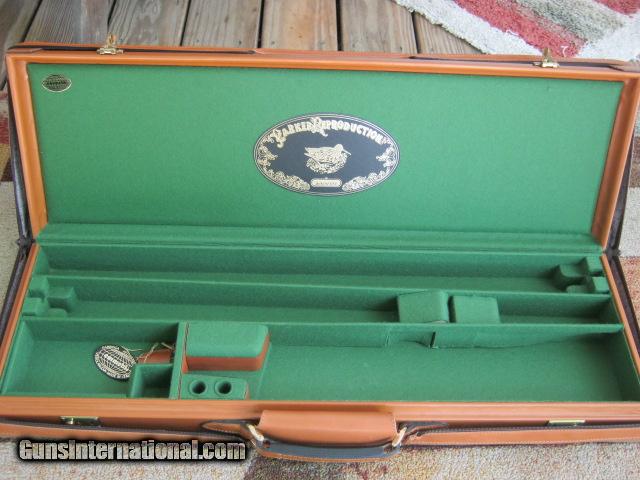Description: THIS IS A RARE ORIGINAL PARKER REPRODUCTION TAKE DOWN CASE MADE IN ITALY. IT IS UNUSED AND IS MOST LIKELY A REMAINDER FROM THE ORIGINAL PRODUCTION RUN...IT WAS MADE FOR A 28 GAUGE TWO BARREL SET, BUT WILL ACCEPT GUNS UP TO 12 GAUGE WITH BARRELS UP TO 28" LONG. LIKE NEW CONDITION. SOLD |