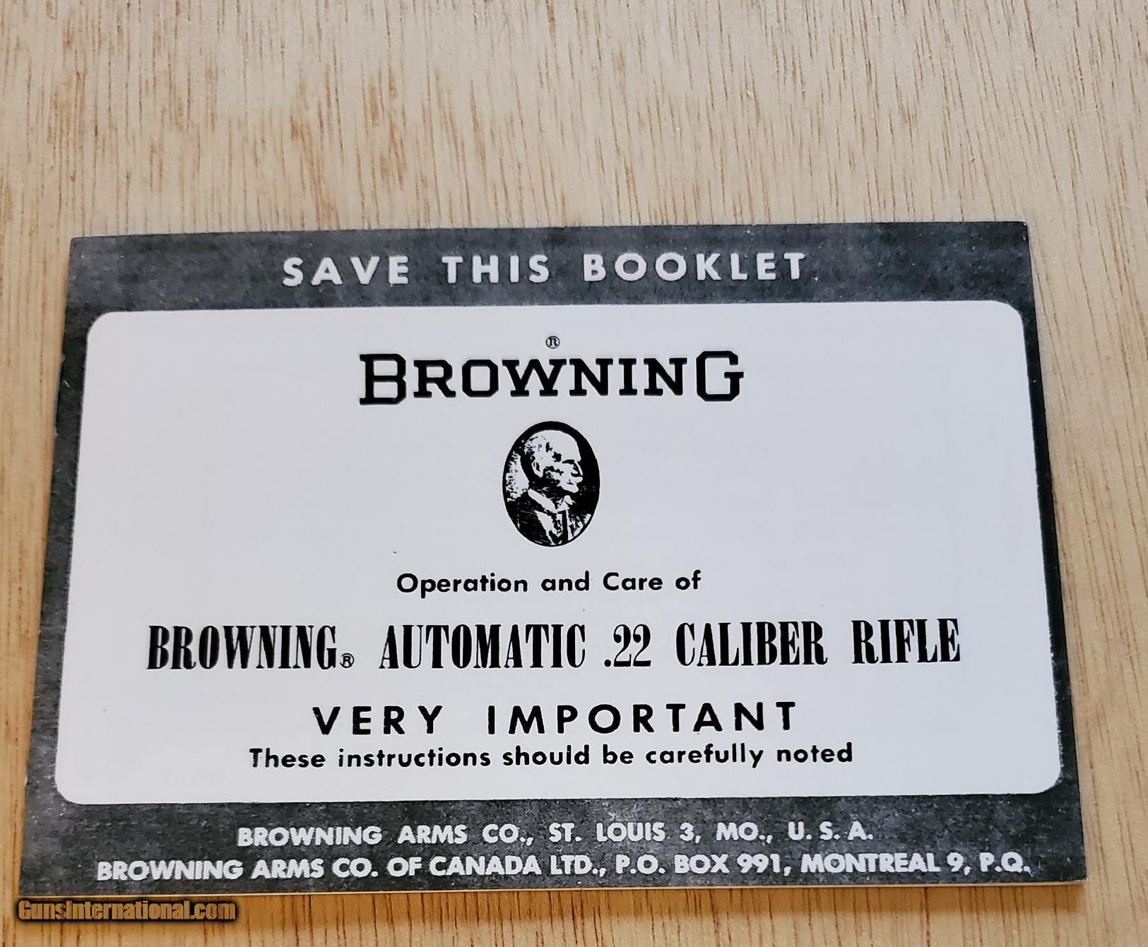 Description: BROWNING AUTOMATIC .22 RIFLE BOOKLET BRAD (636)232-4616 SOLD |