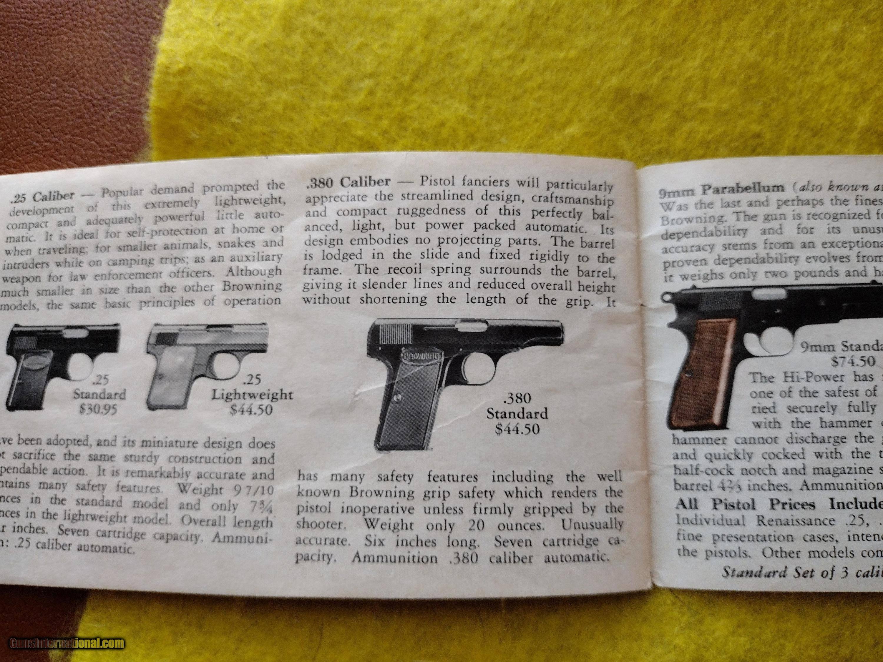 Description: I ONLY HAVE THE 1963), AVAILABLE - BROWNING COLLECTORS HERE'S A GOOD CHANCE TO GET A HARD TO FIND BROWNING 1963 POCKET CATALOG , THIS 1963 POCKET CATALOG GIVES YOU A LOT OF IMFORMATION ABOUT THE GUNS FOR THAT YEAR AND IS A VERY GOOD REFERENCE SOURCE, FACTORY ORIGINAL, NEED MORE INFO CALL STEVE AT 573 820 5346 THANKS NO TEXTING PLEASE SOLD |