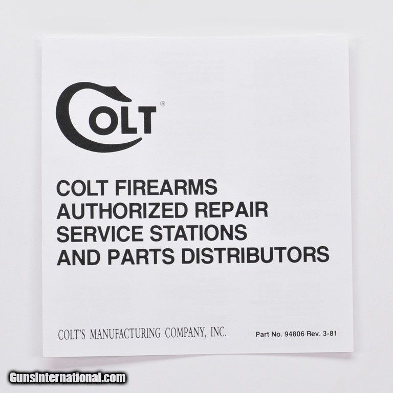 Description: Colt Combat Commander, Commander (Lightweight) Manual, Repair Station List And Letter. 1981 Manual MPN# 94859 Rev. B Jul 81 Colt Service And Repair Stations MPN# 94806 Rev. 3-81