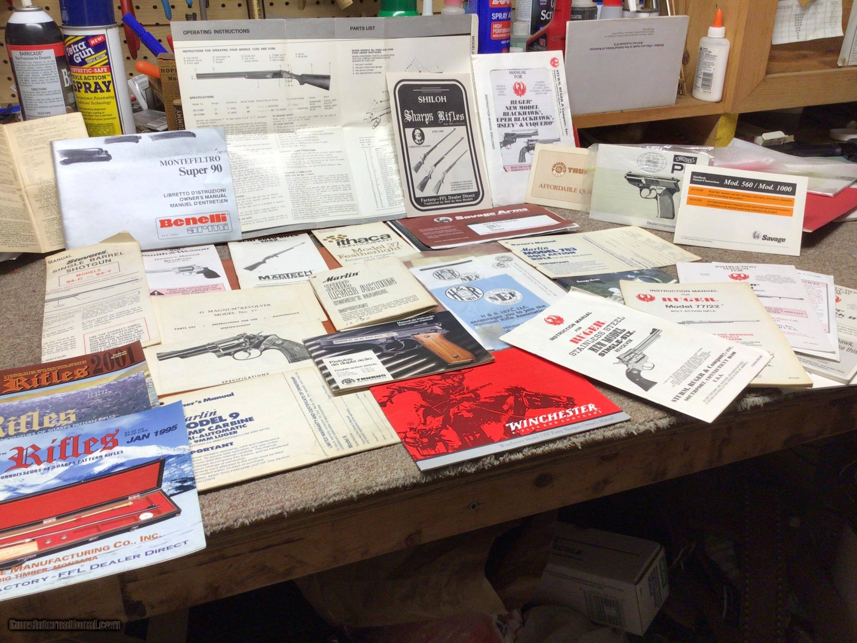 Description: over 30 assorted gun manuals price is for all SOLD |