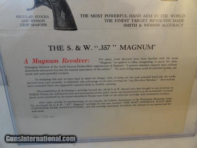 Excellent all original instruction sheet that would have come with new Registered Pre War Magnum. Back page has an order sheet for options on your new registered 357 mag. If you have a mint boxed gun and are missing this manual, this would really add to its value.