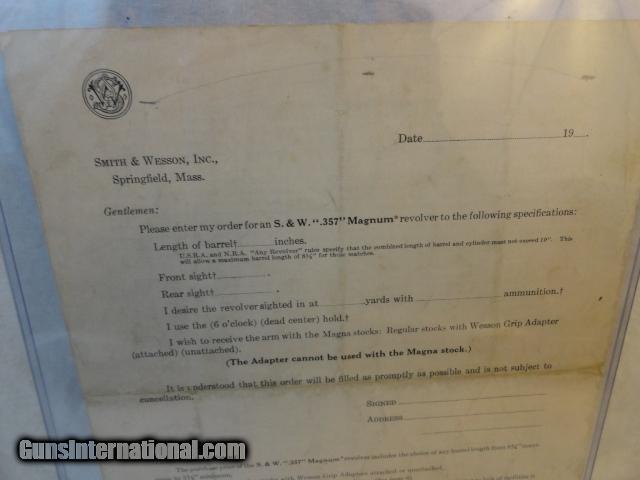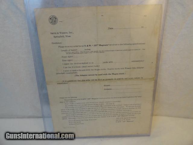 Original Smith Wesson Pre War Registered Magnum Order Sheet Instructions