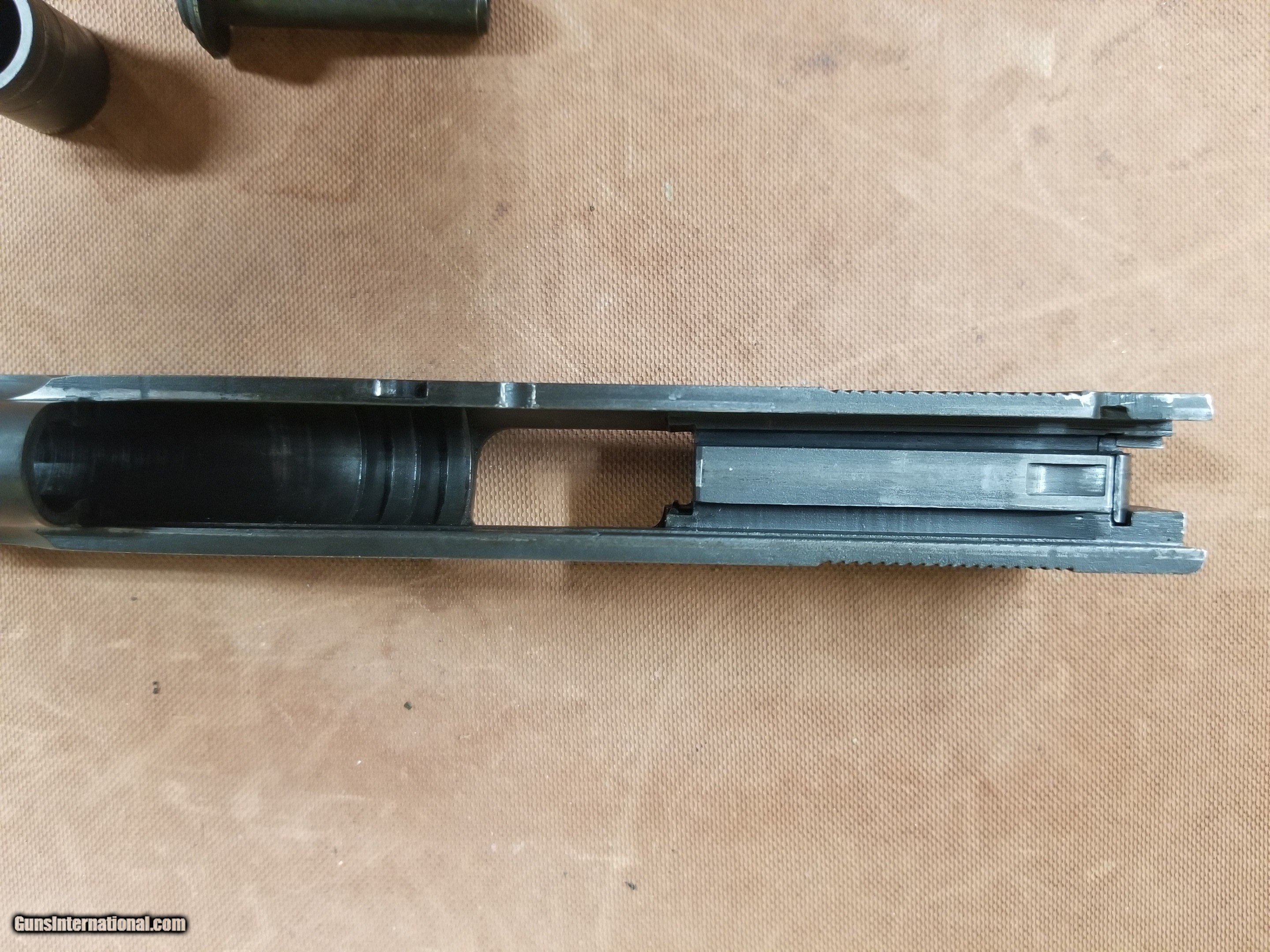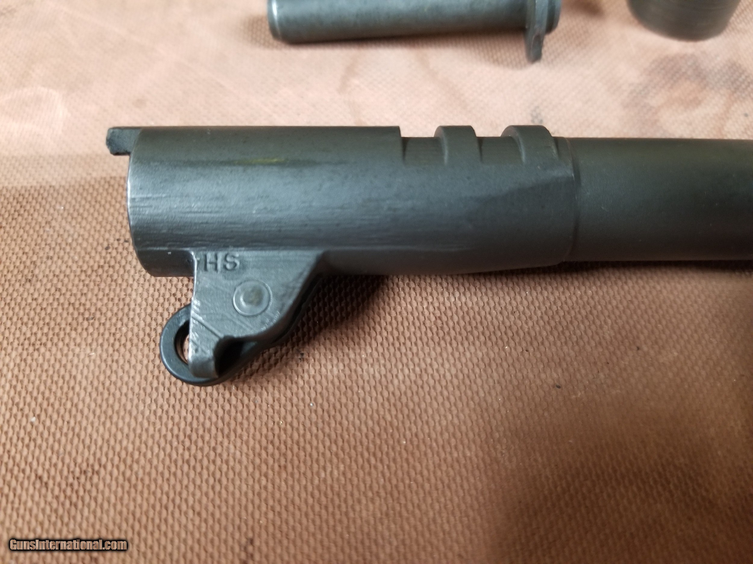 Description: ---Sale Pending----Very nice 1911a1 Remington Rand slide with correct High Standard barrel with mint bore, also barrel bushing and main spring guide SOLD |